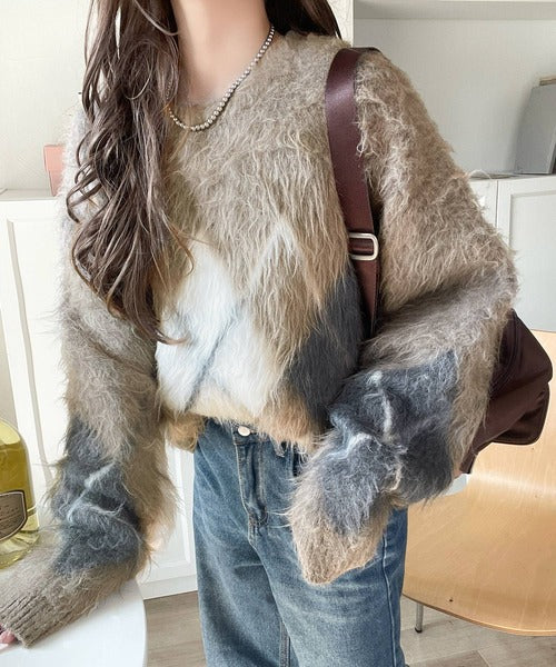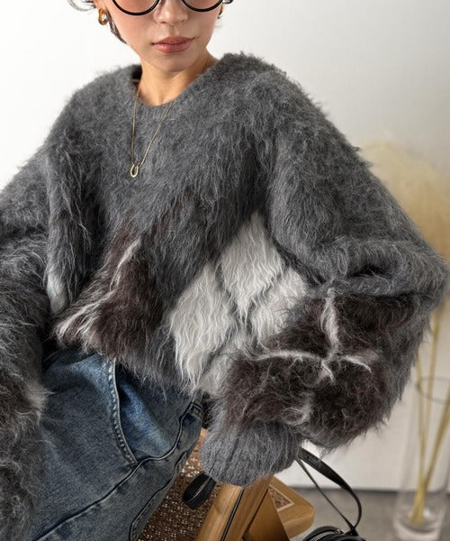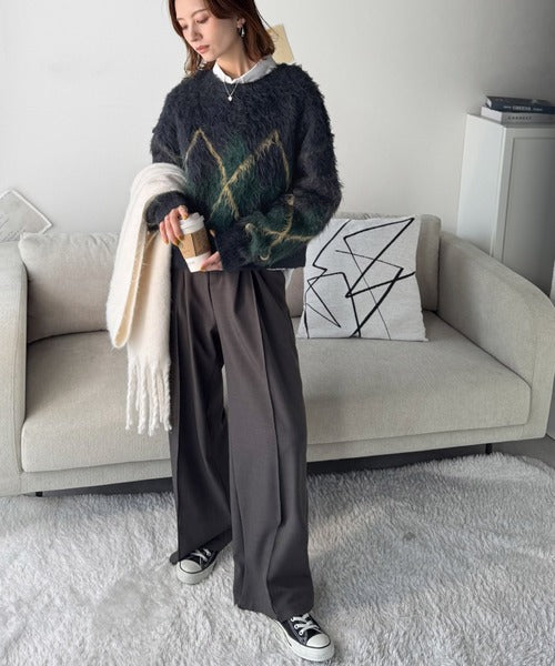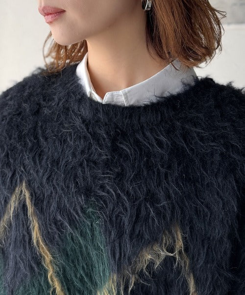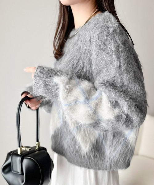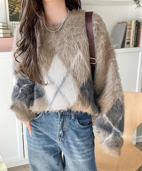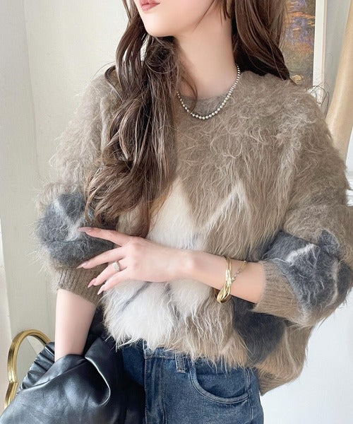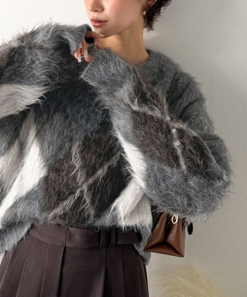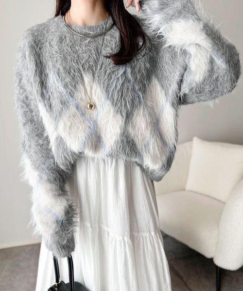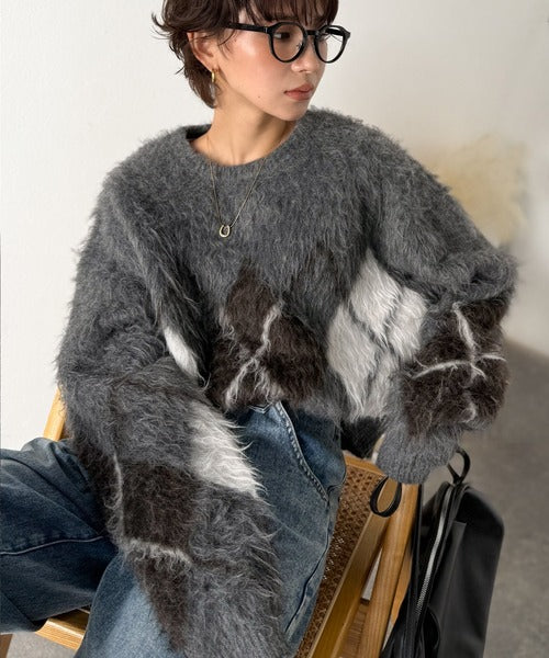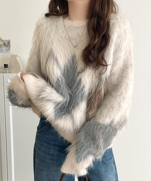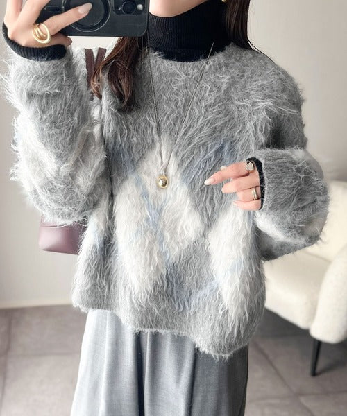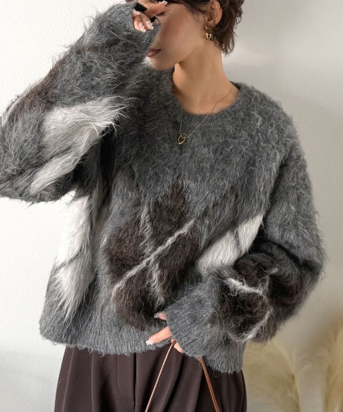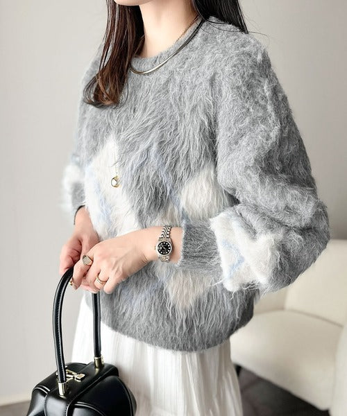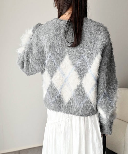 シンプルコーデに差をつける一着。長起毛アーガイル柄ニットプルオーバー ce1020328