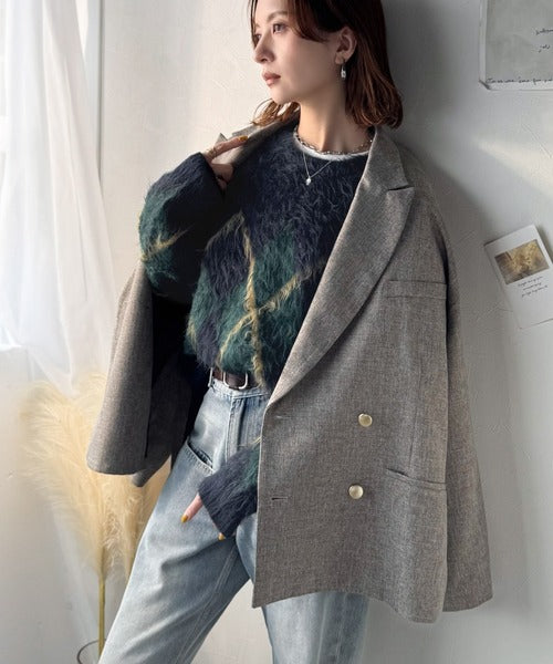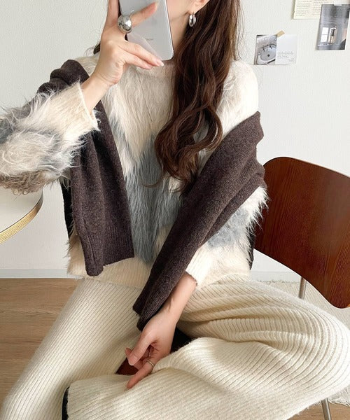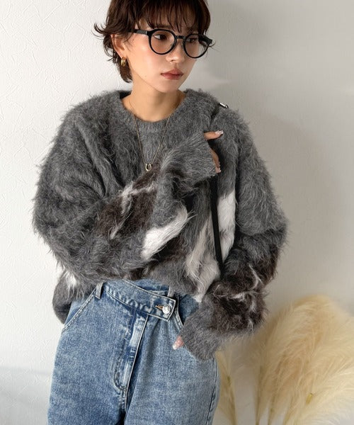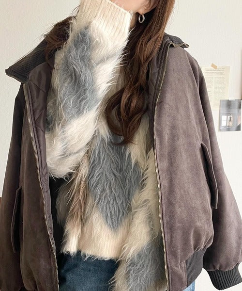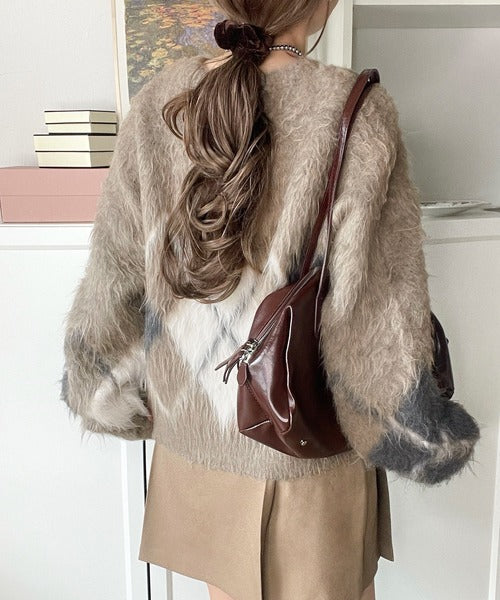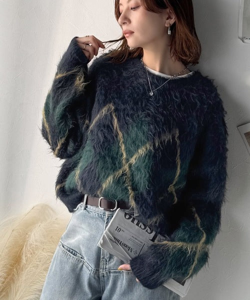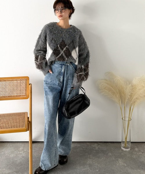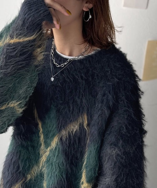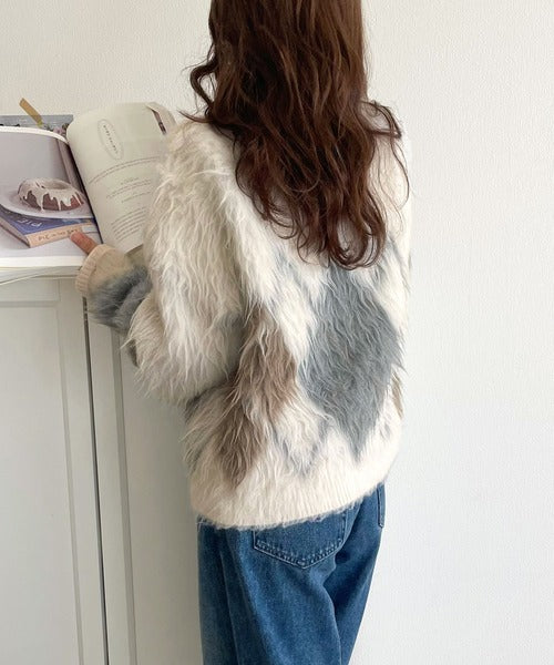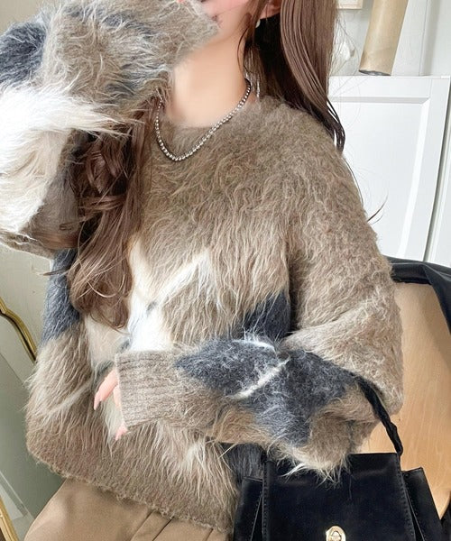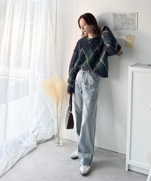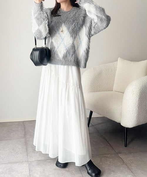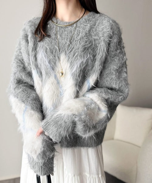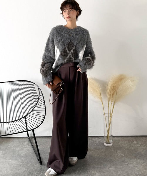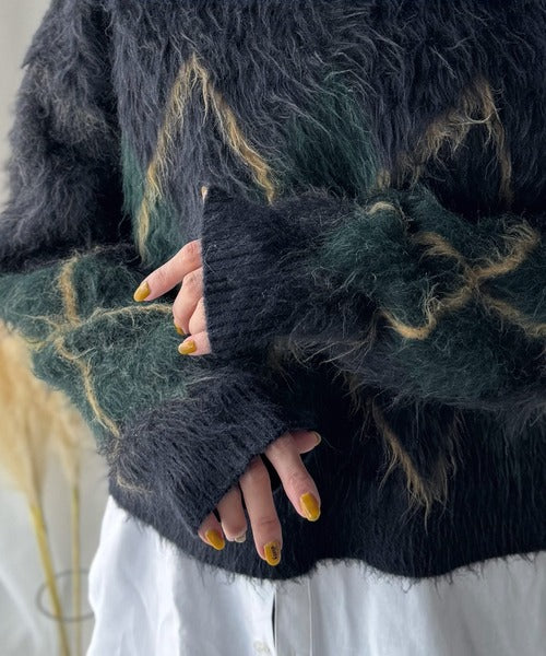 シンプルコーデに差をつける一着。長起毛アーガイル柄ニットプルオーバー ce1020328