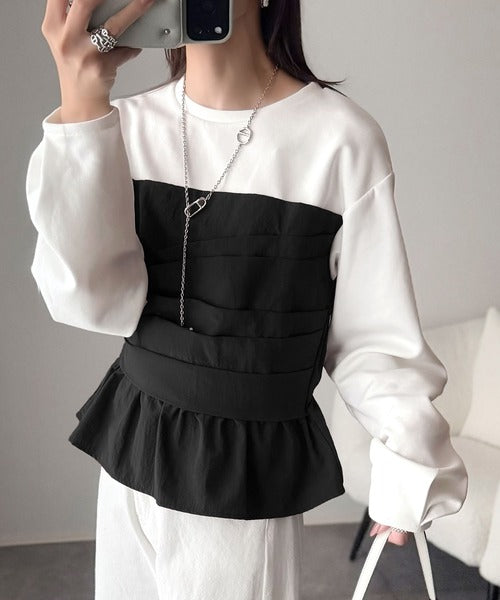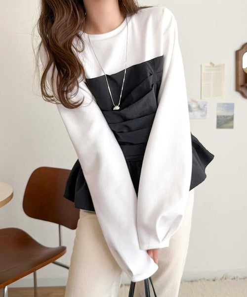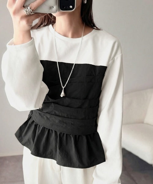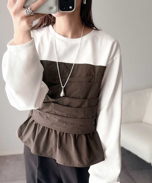 レイヤード風のデザインながら、一枚仕立てだから