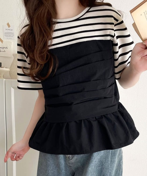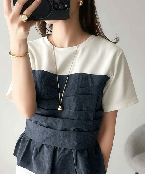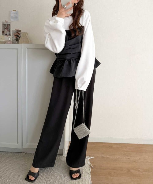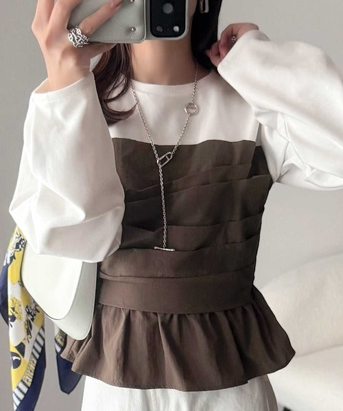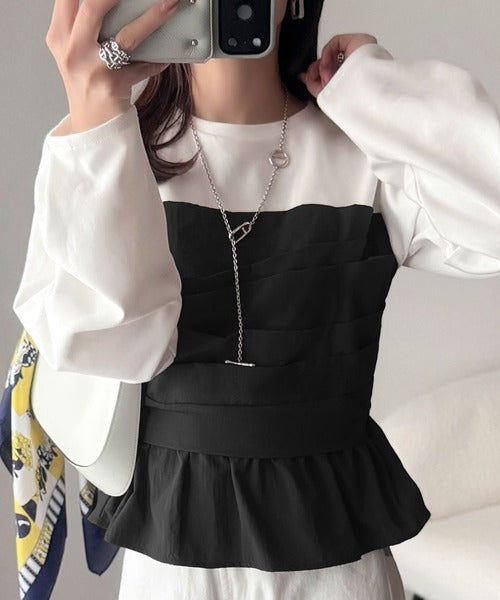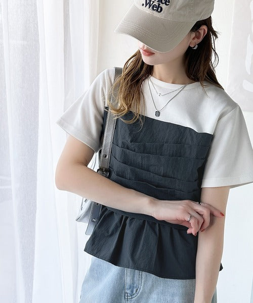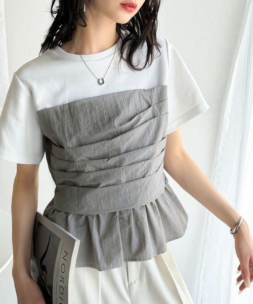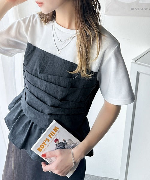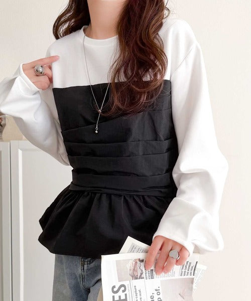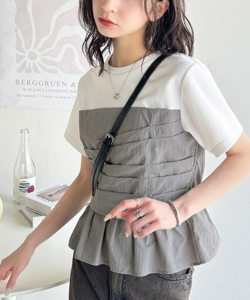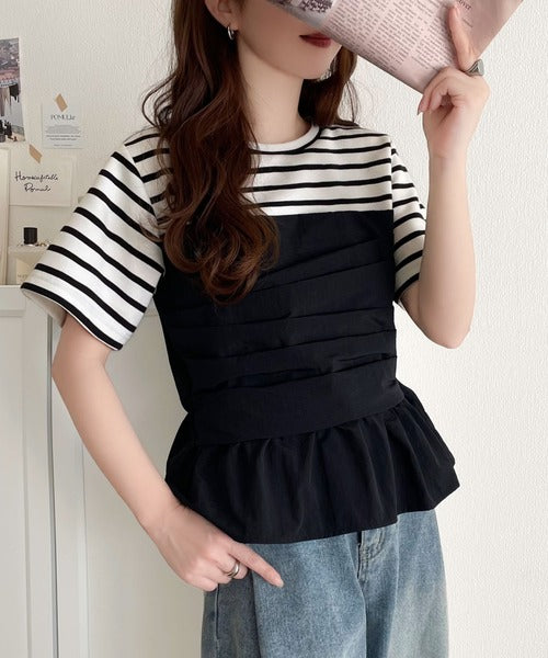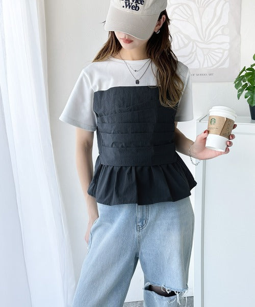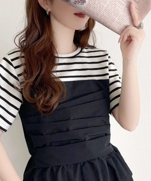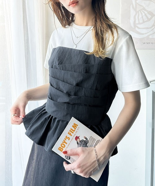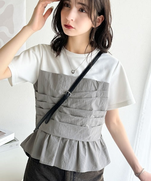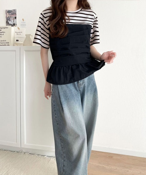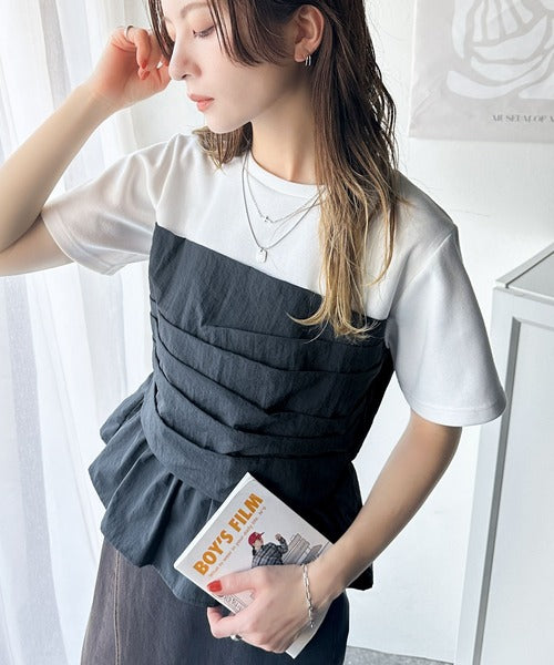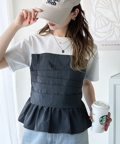 簡単おしゃれが叶う。Tシャツ×ビスチェドッキング半袖トップス ce1260345