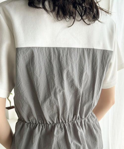カジュアルなTシャツ素材に、程よくハリ感のあるナイロンを