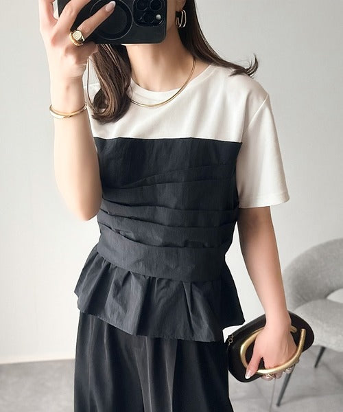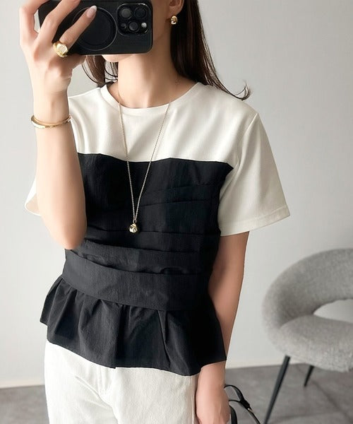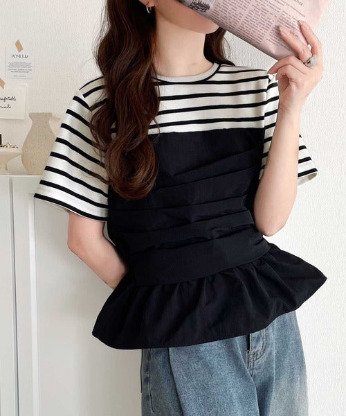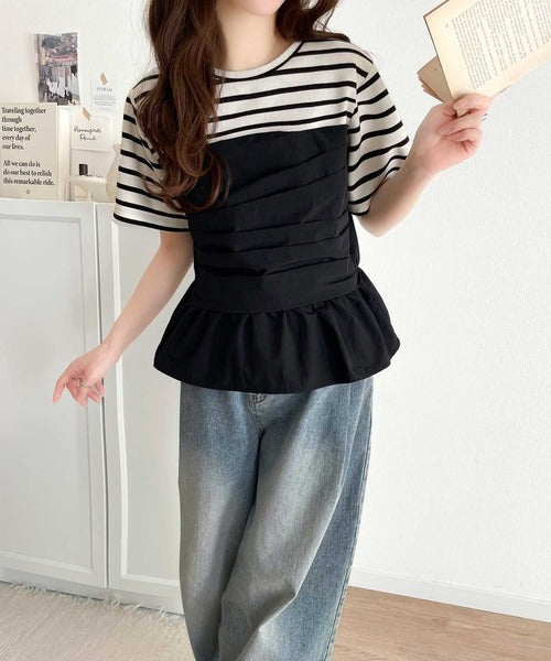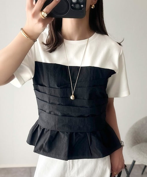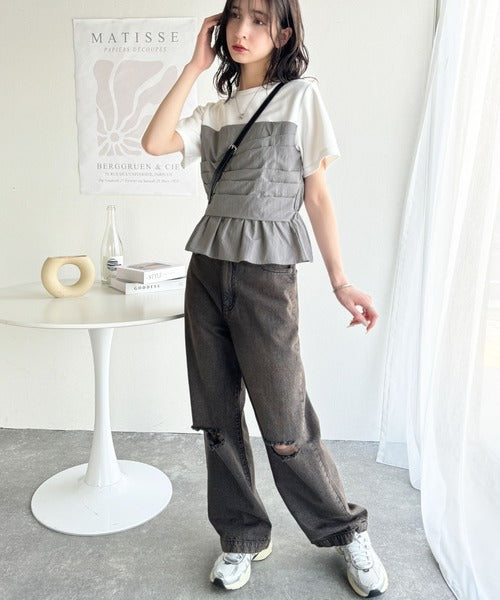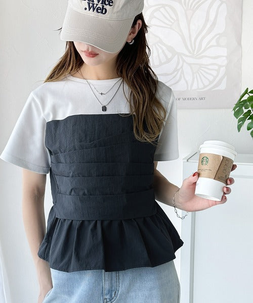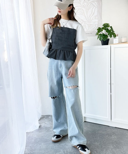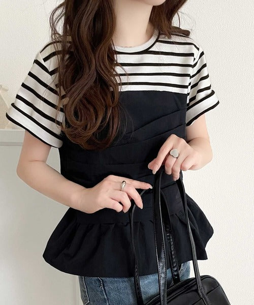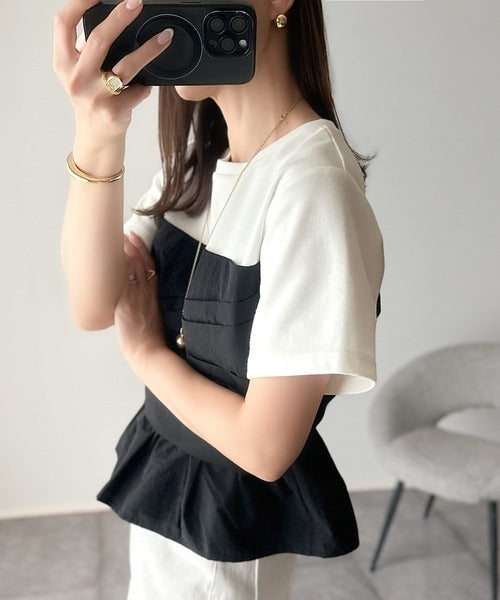簡単おしゃれが叶う。Tシャツ×ビスチェドッキング半袖トップス ce1260345