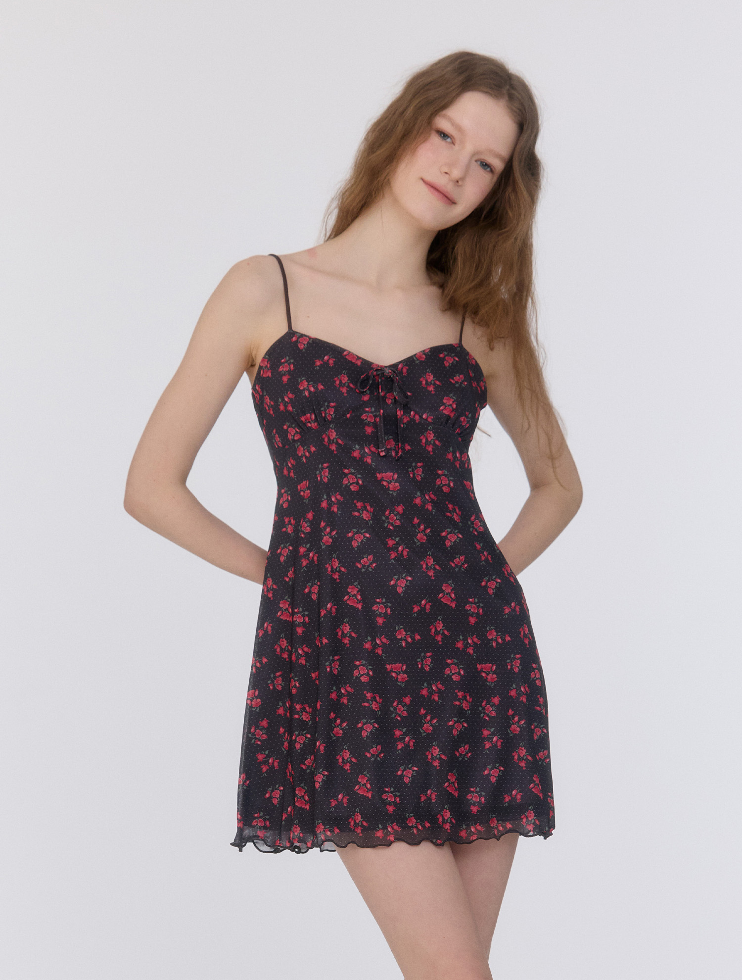 Mesh Beach Dress [Rosy Dots Dark grey]
