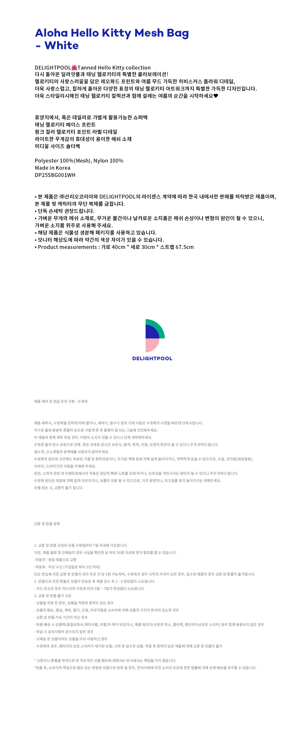 • Product measurements : 가로 40cm * 세로 30cm * 스트랩 67.5cm