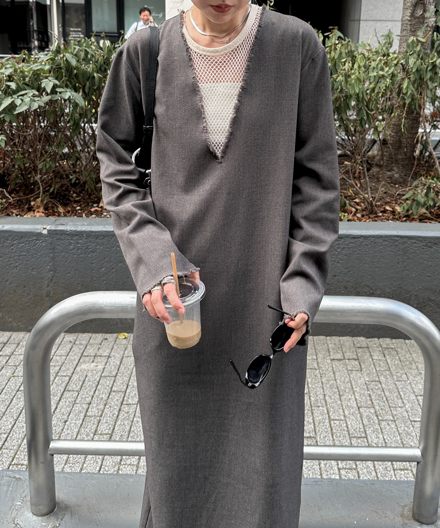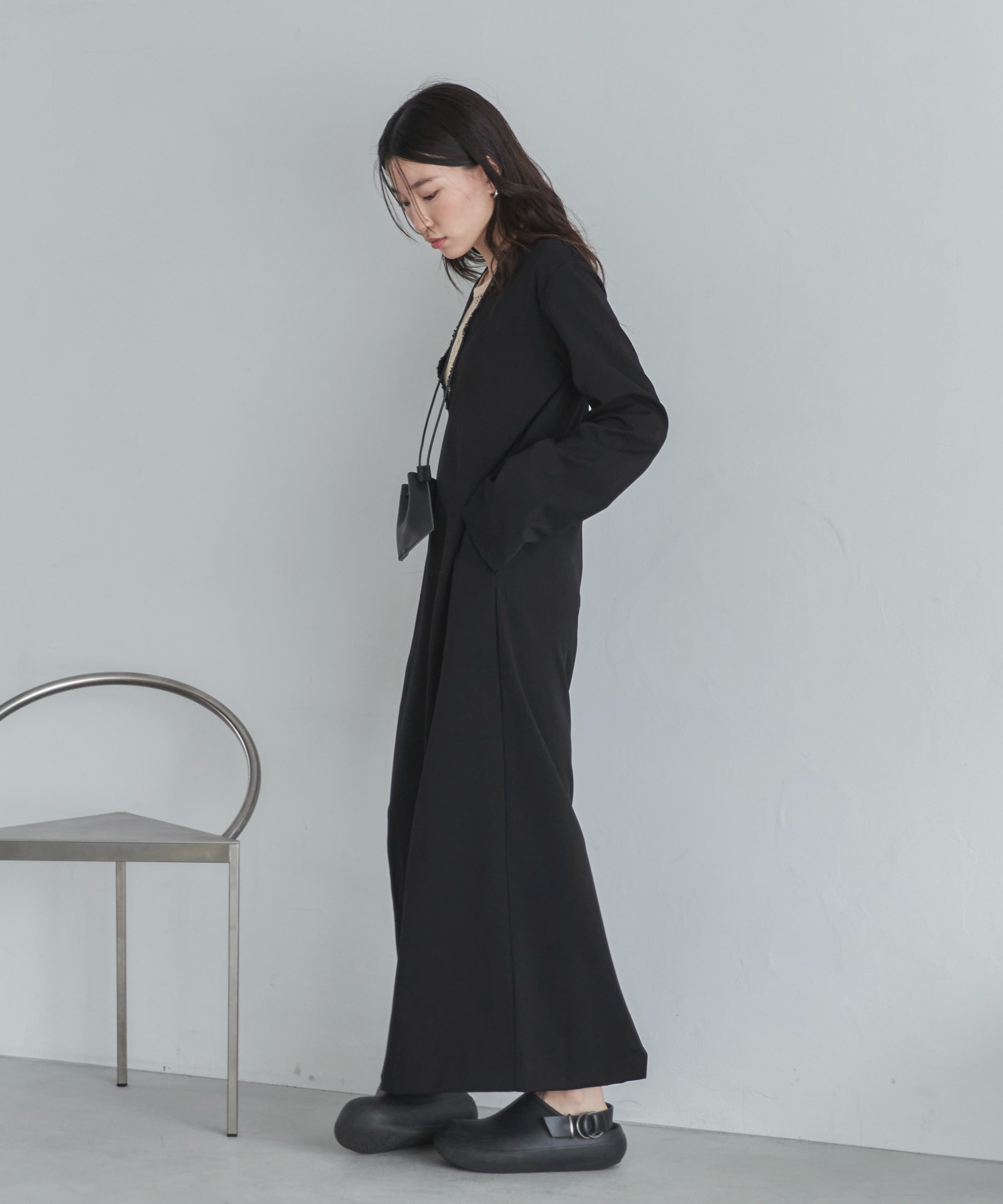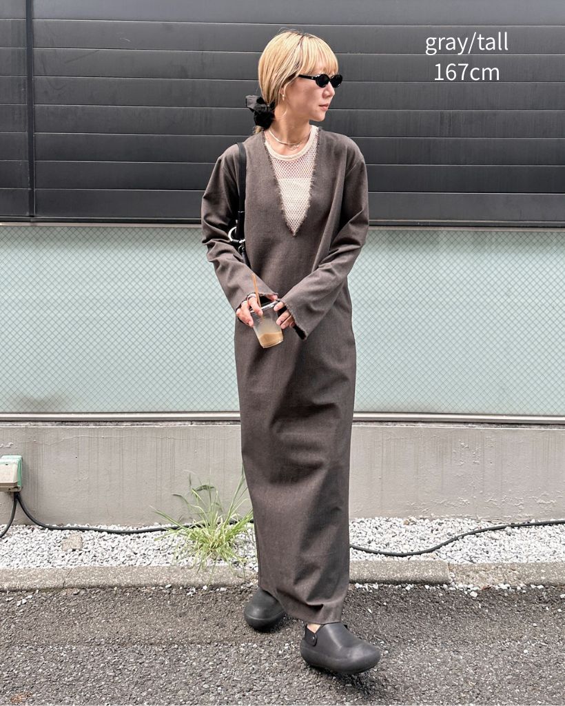 【TALLサイズあり】ディープVネックペンシルロングワンピース