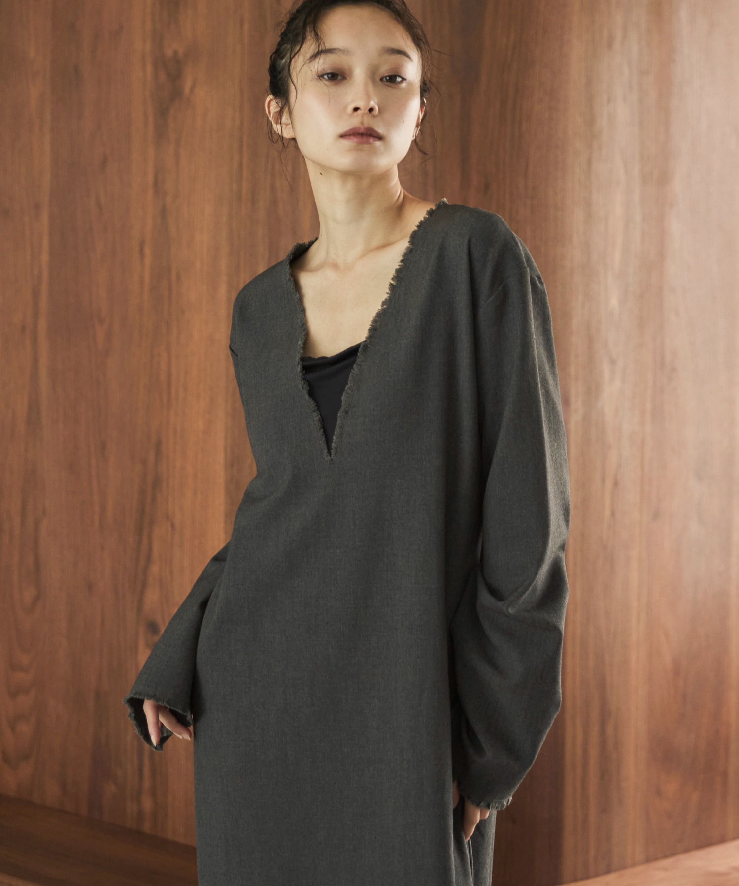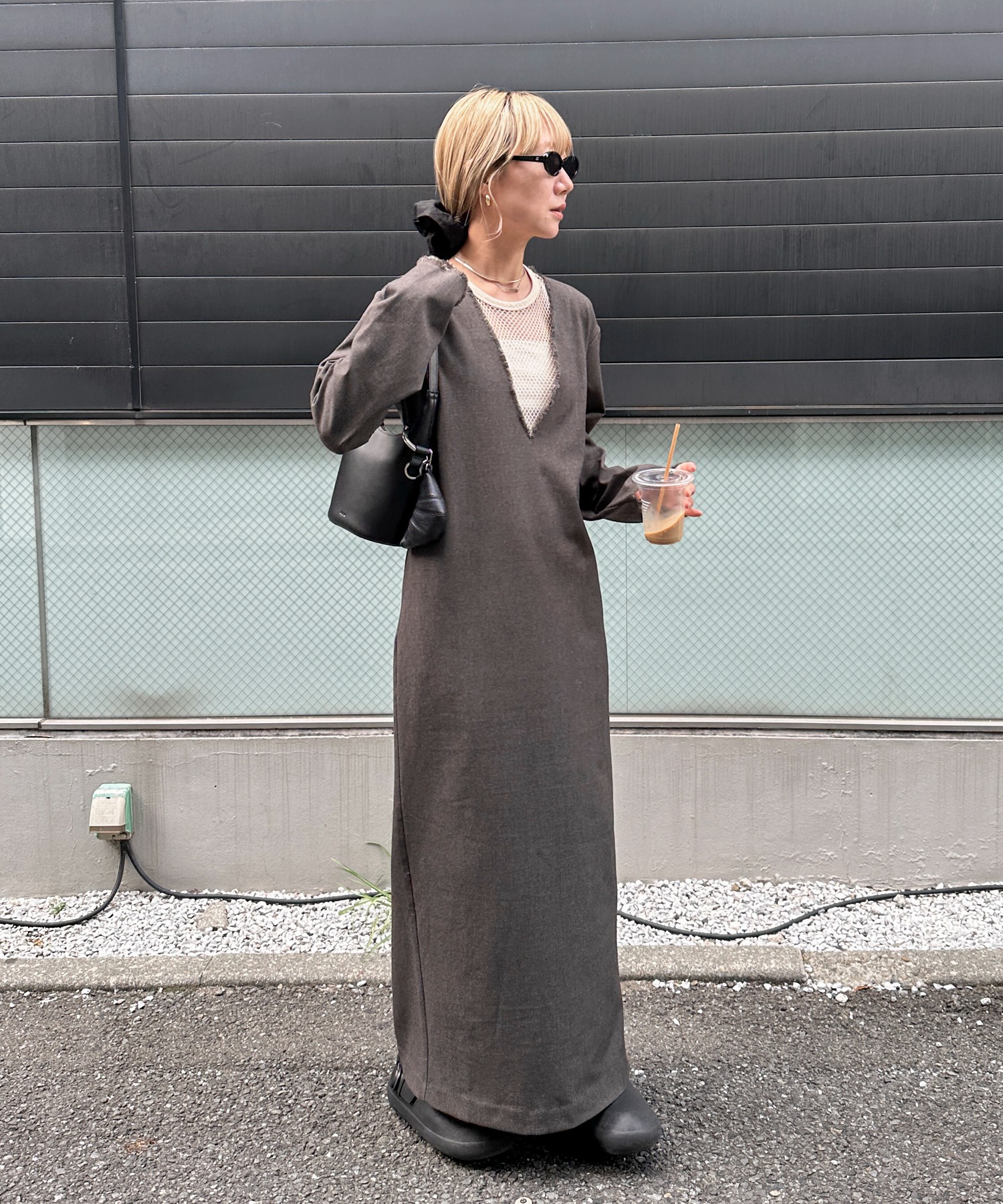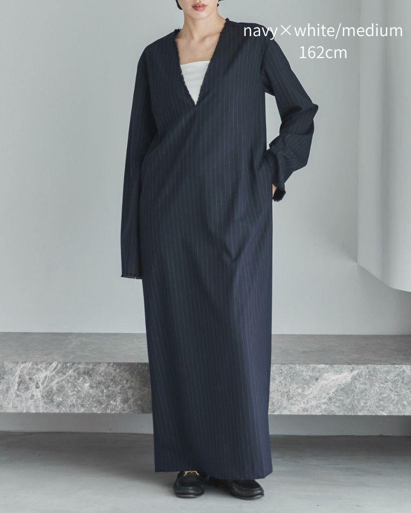 【TALLサイズあり】ディープVネックペンシルロングワンピース