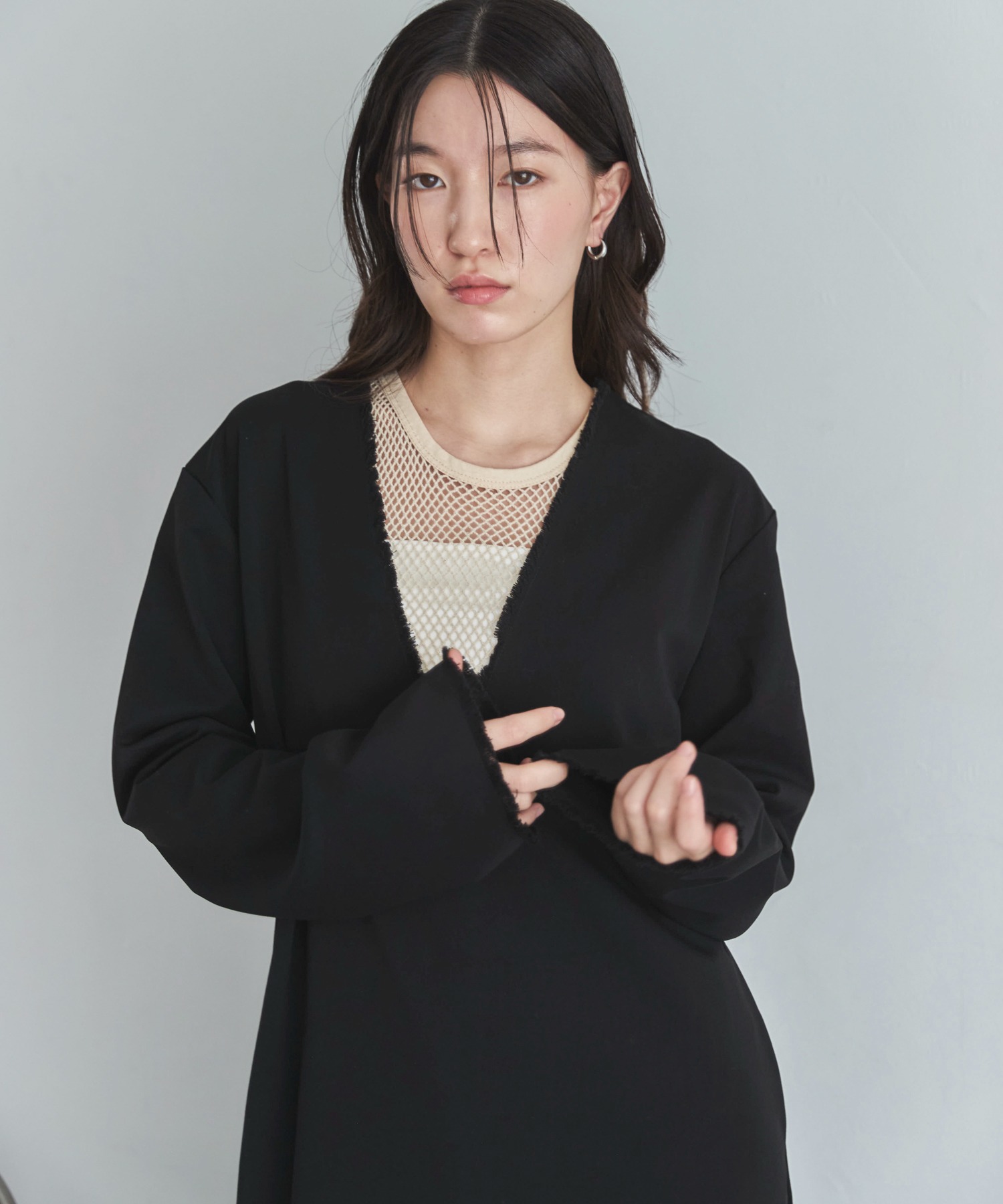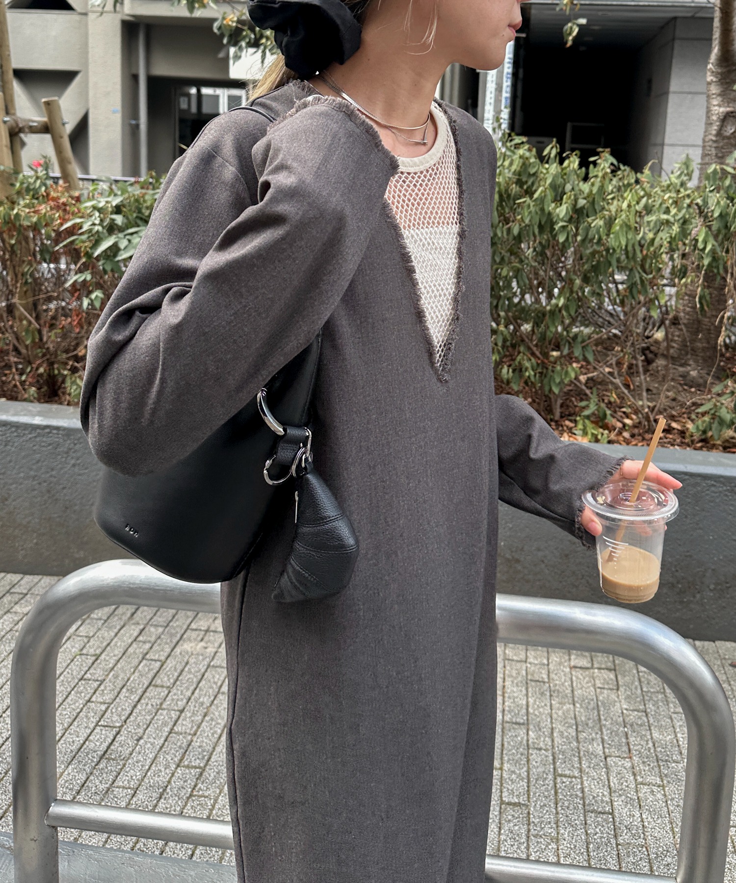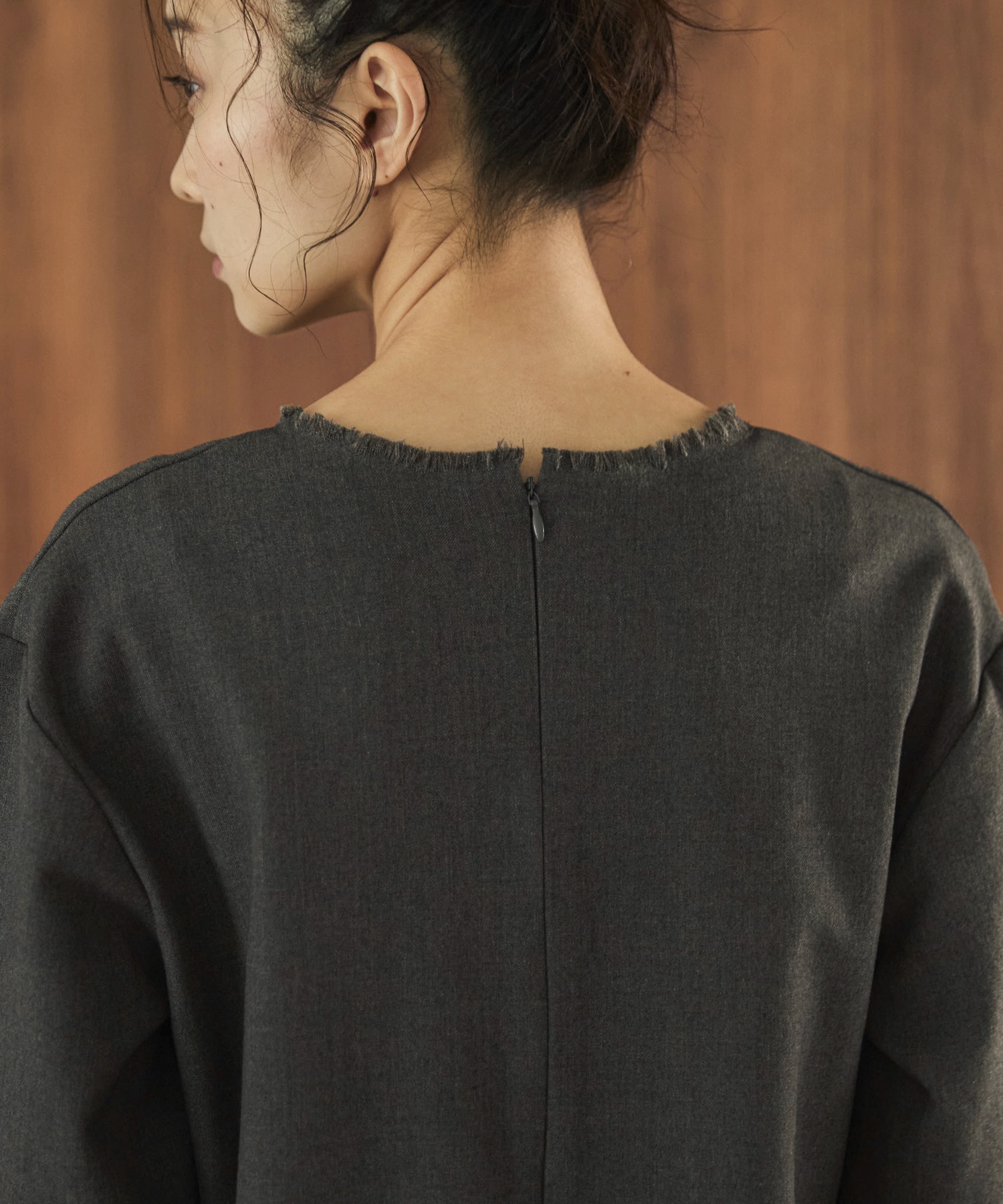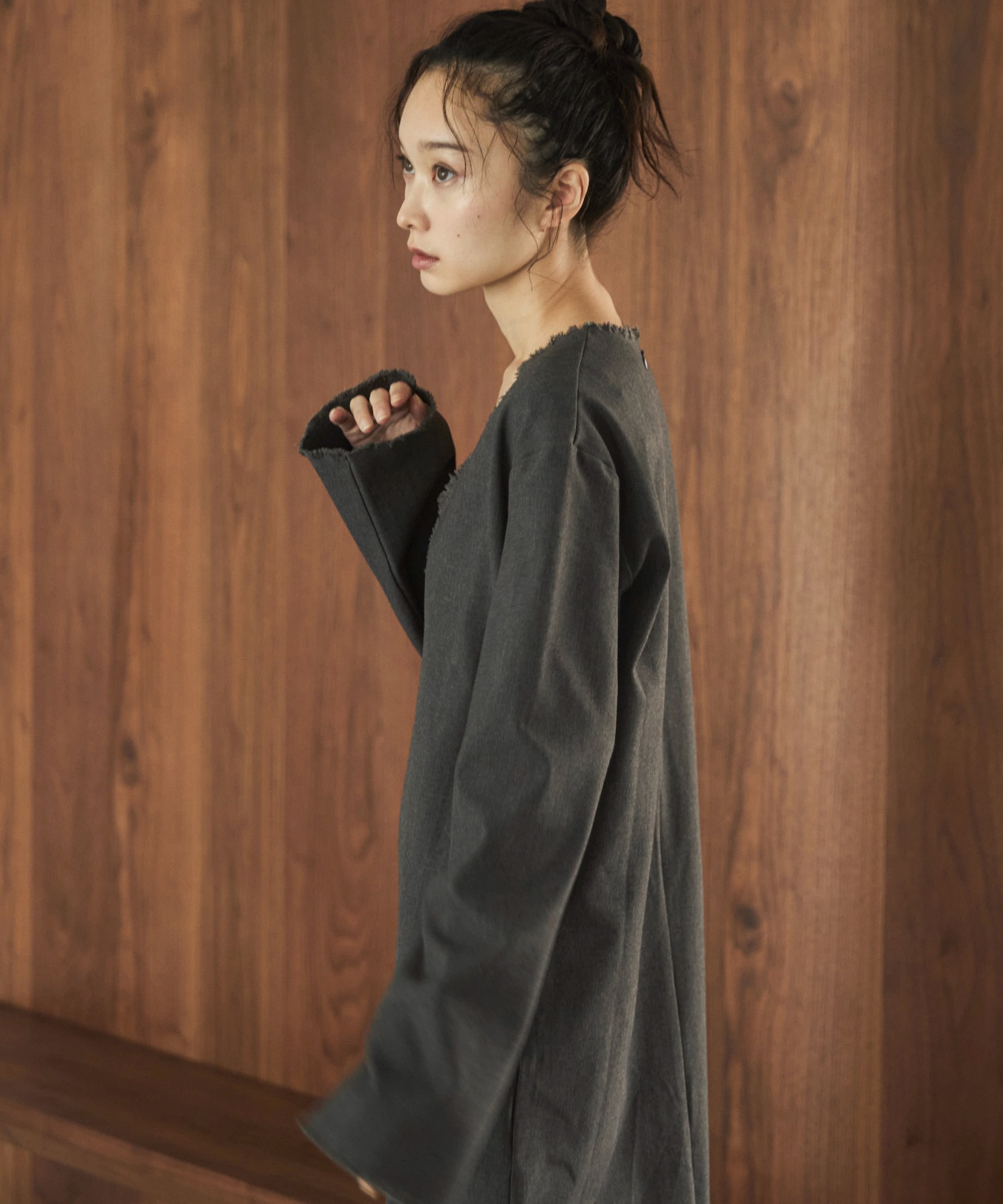 マニッシュでモードな雰囲気が漂う一着ですが、ネック部分や袖口にさりげなくフリンジ加工を施しているため抜け感が出てややカジュアルな印象にもスタイリングを楽しめます◎