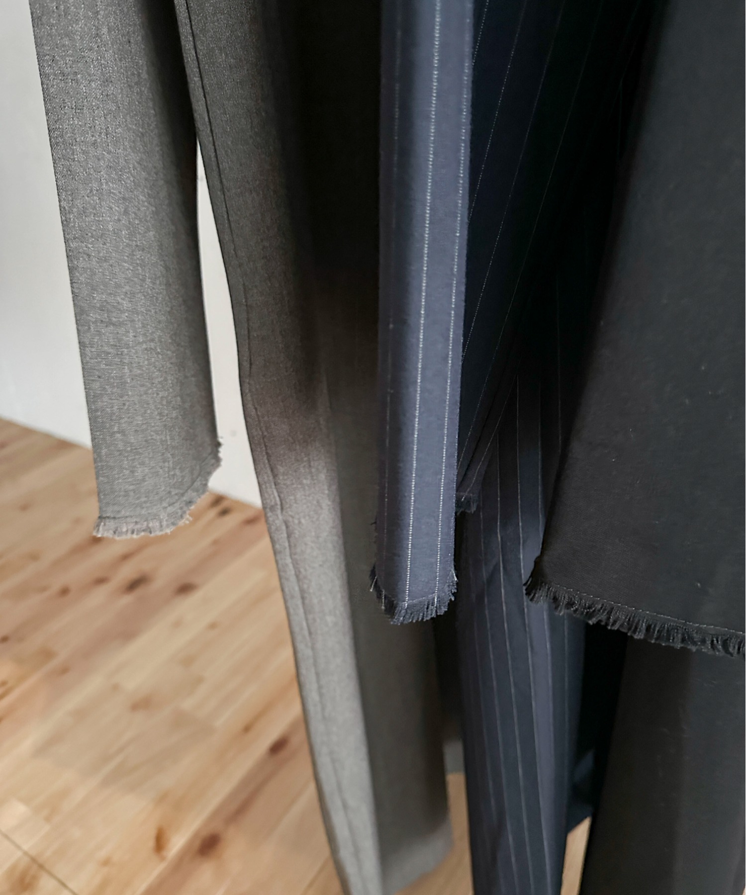 程よく地厚でやや伸縮性のある生地を使用しているため、インナー次第で秋から冬にかけて長くご着用いただけます。
