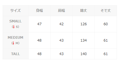 ※MサイズとTALLサイズは着丈のみの違いとなっております。