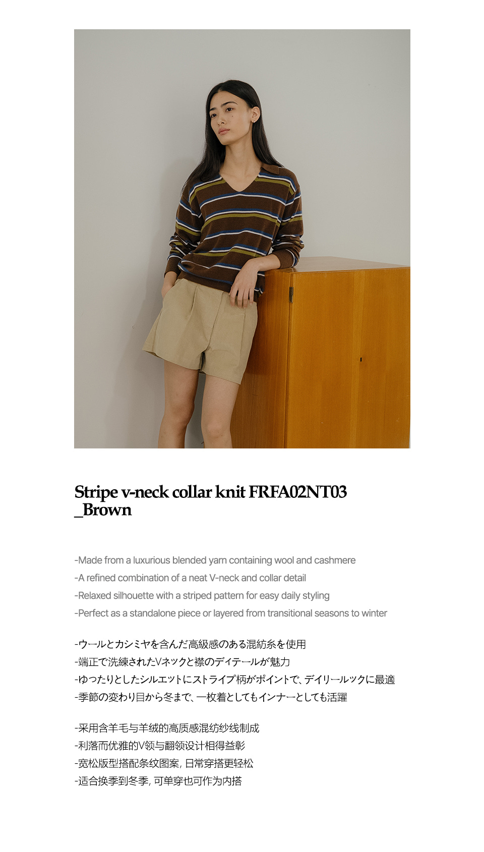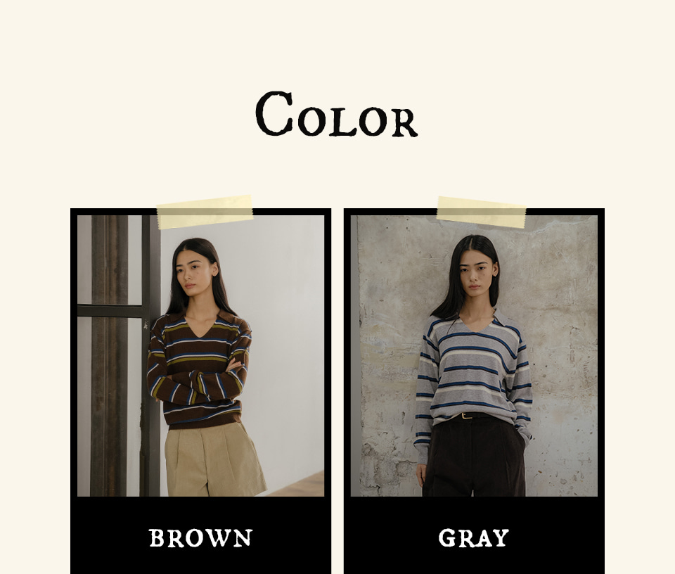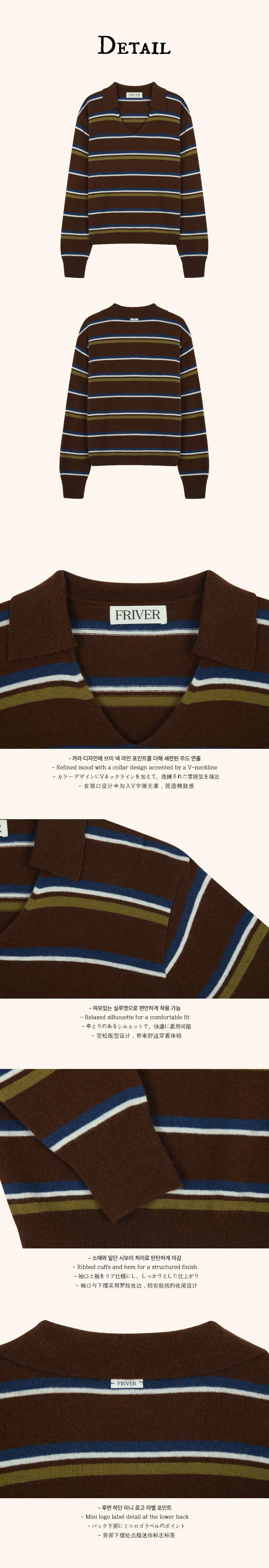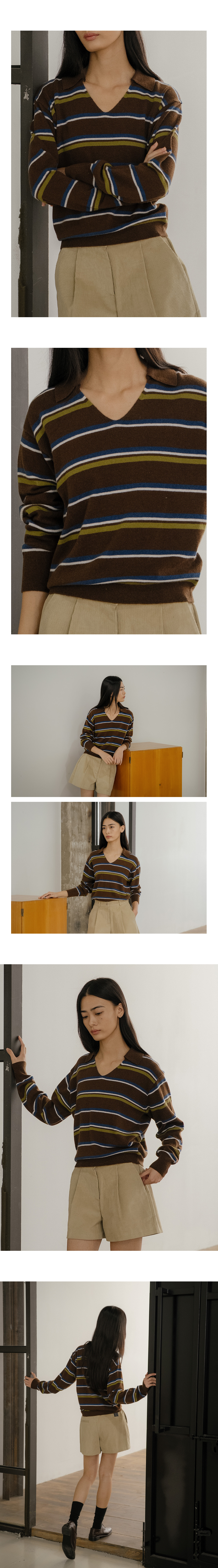 Stripe v-neck collar knit FRFA02NT03_Brown