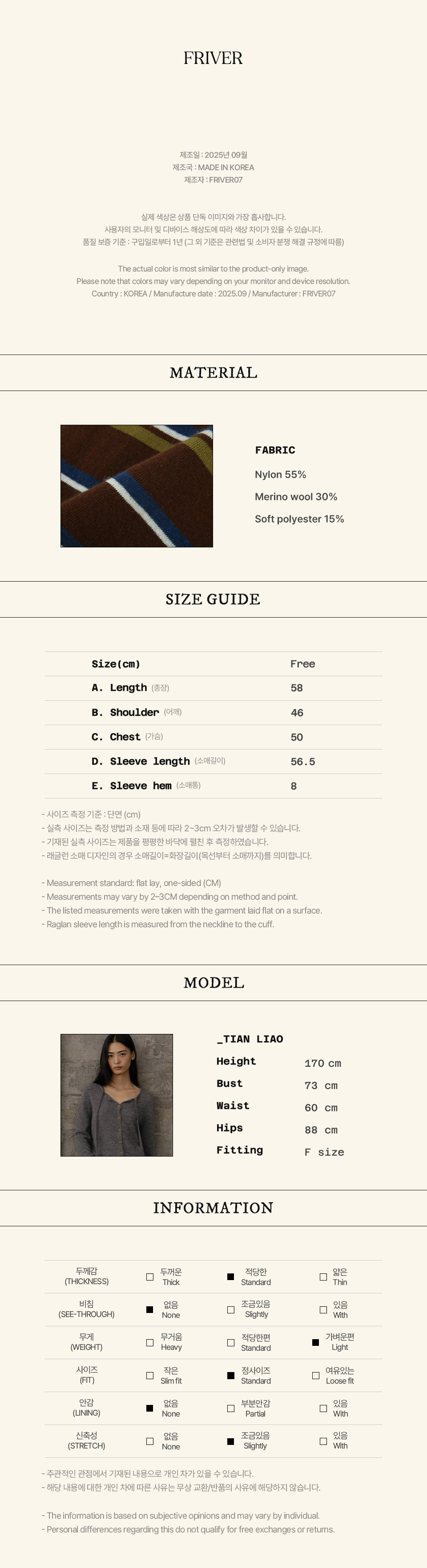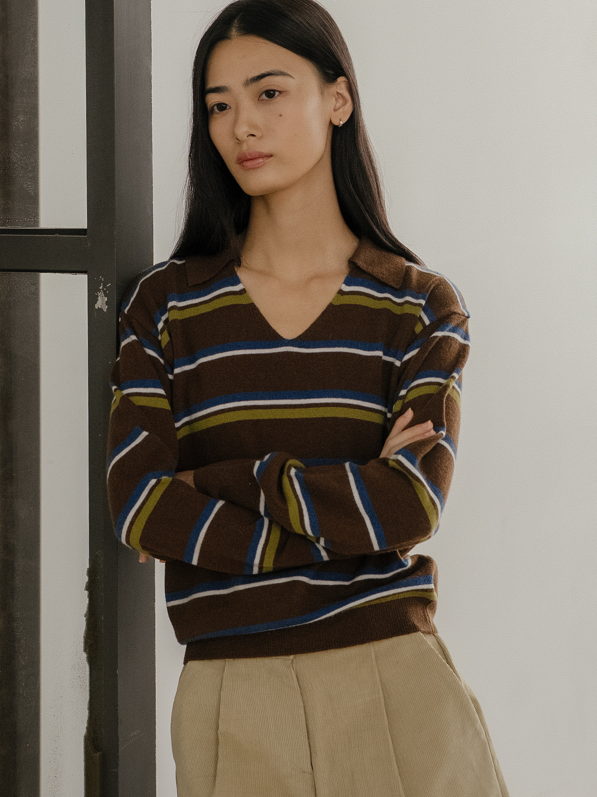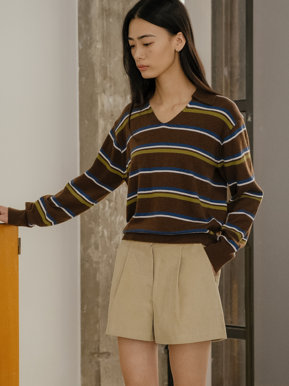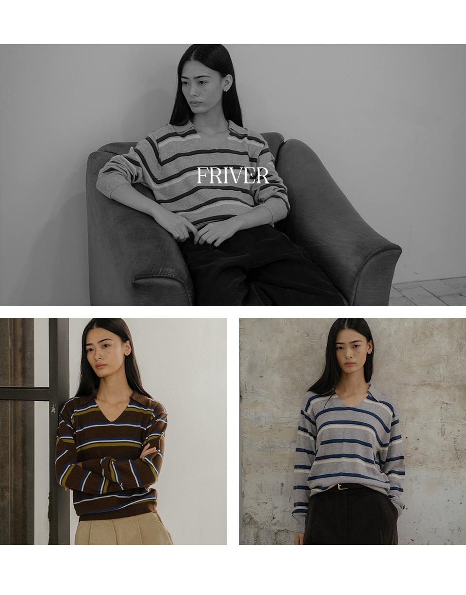 Stripe v-neck collar knit FRFA02NT03_Brown
