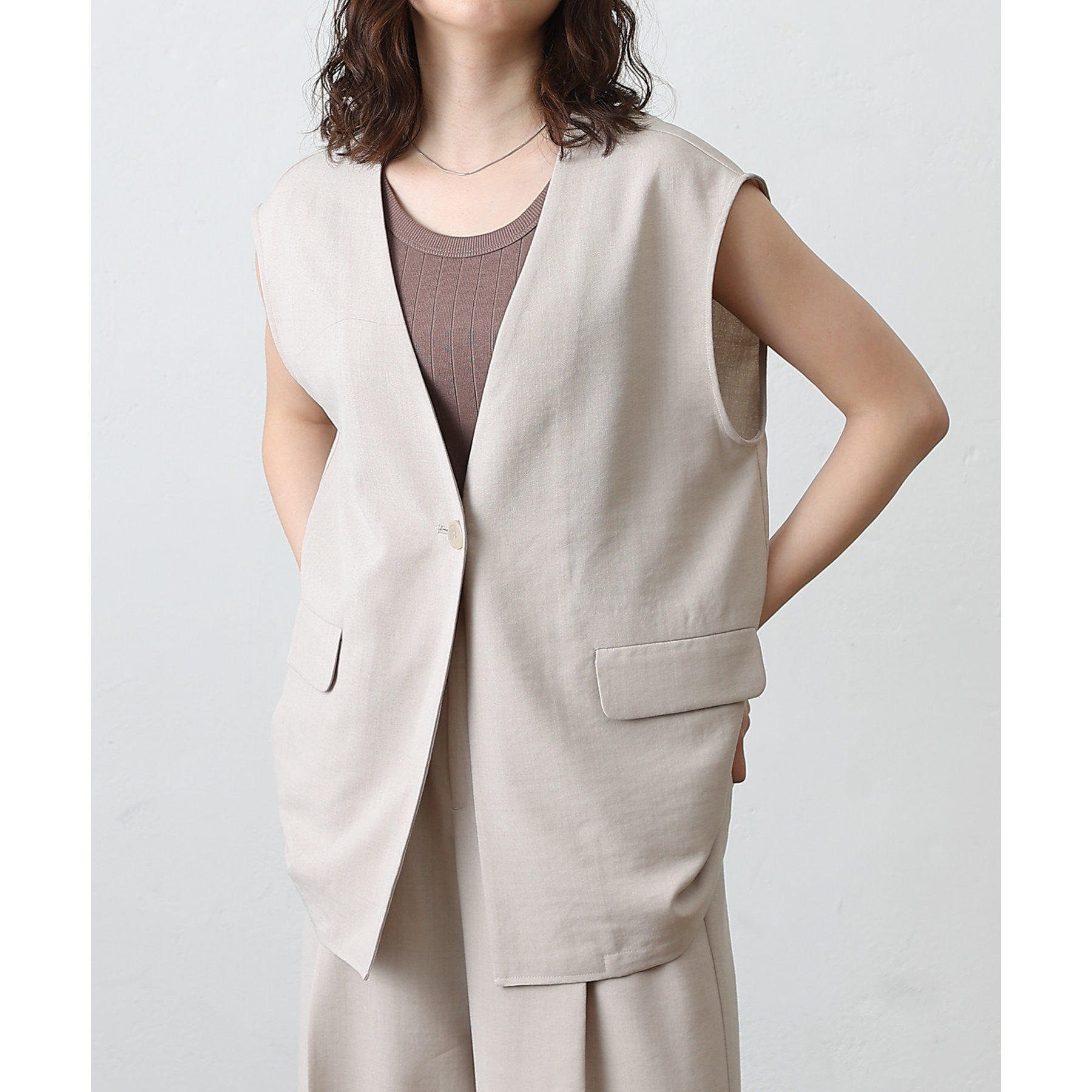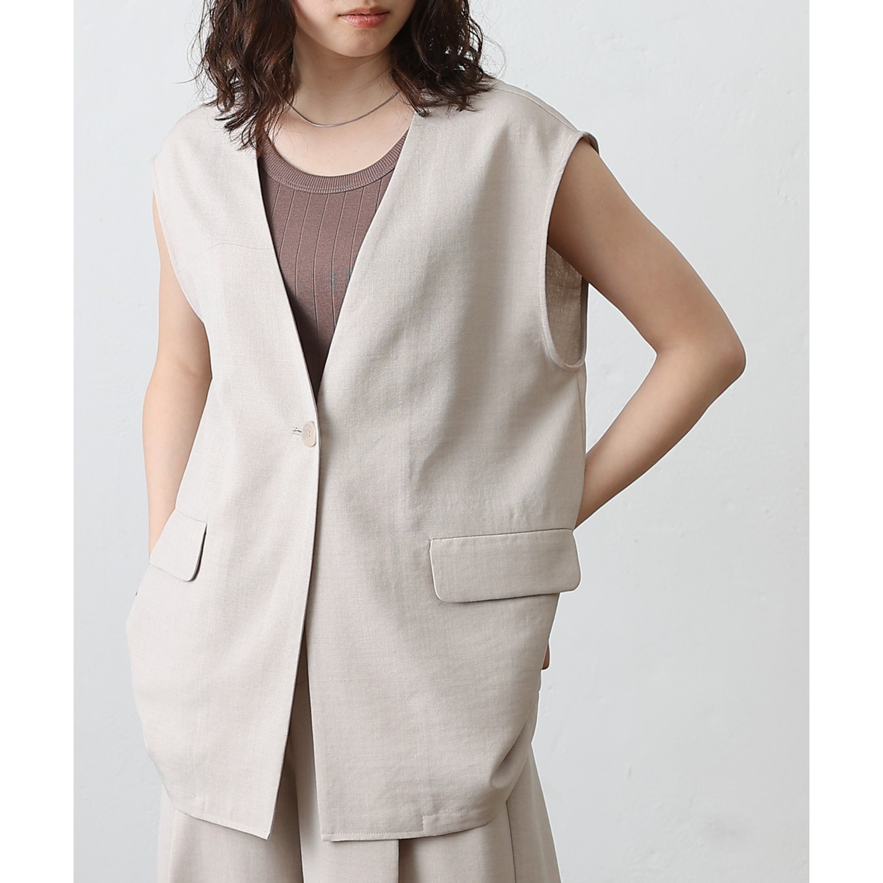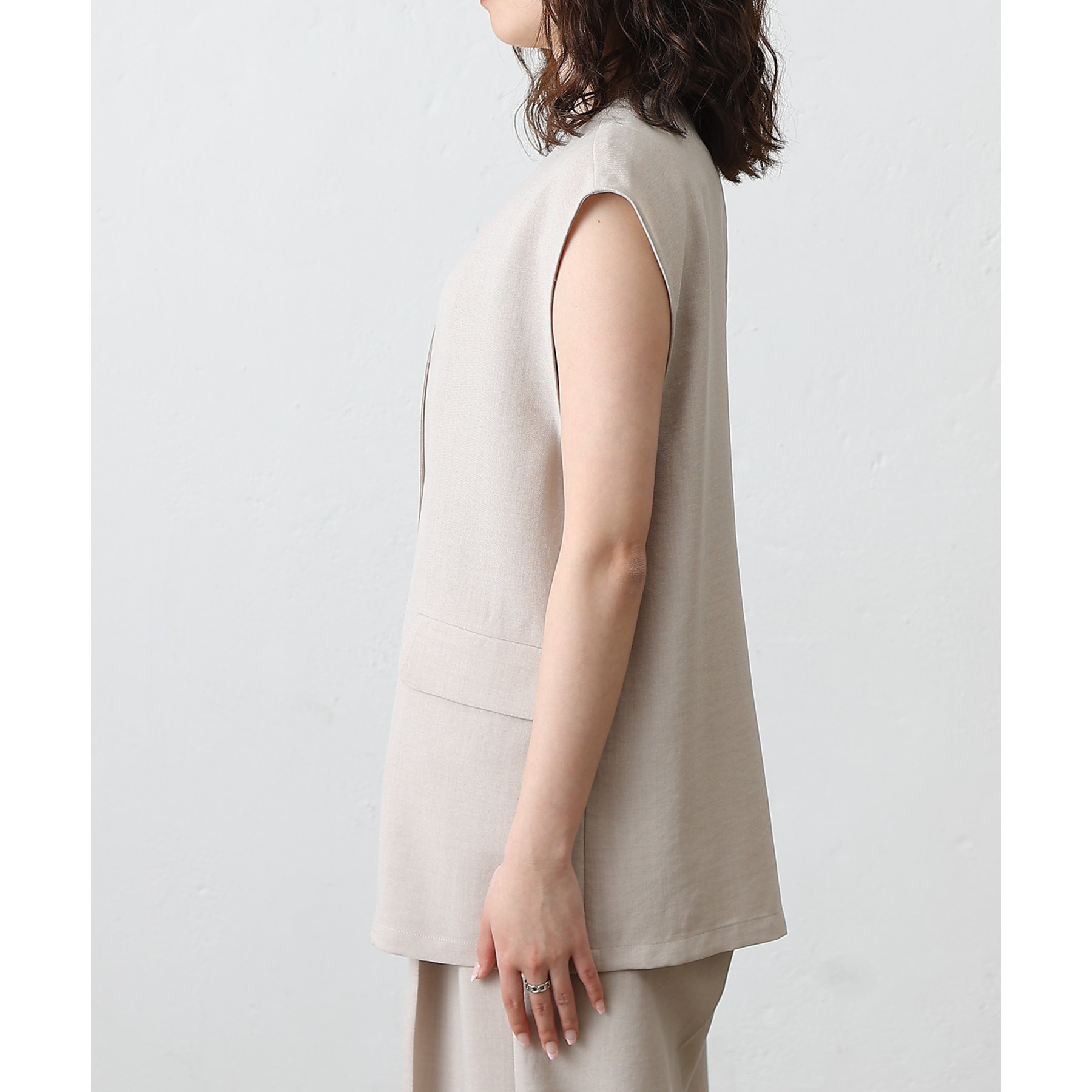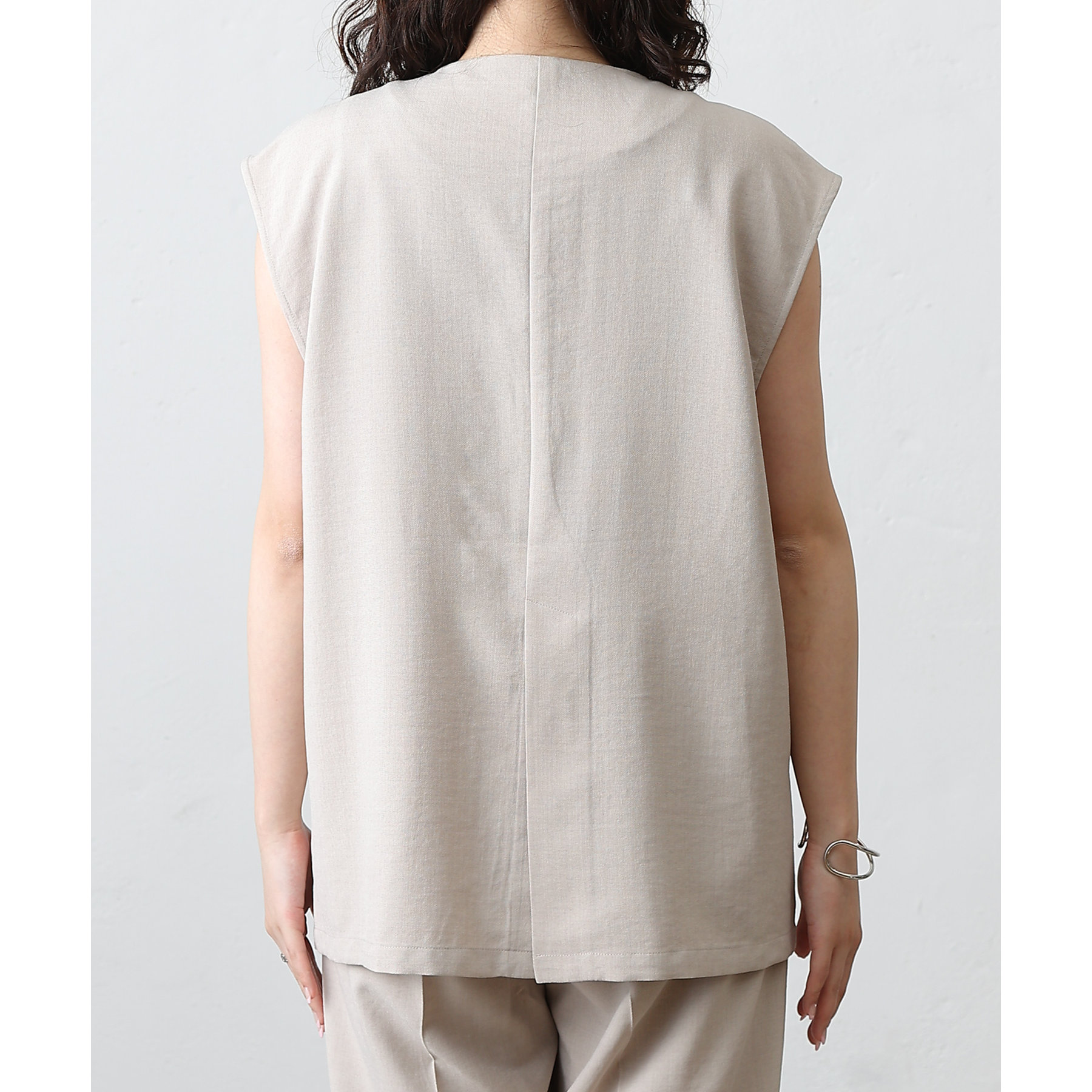 テックリネンノーカラーシングルジレ