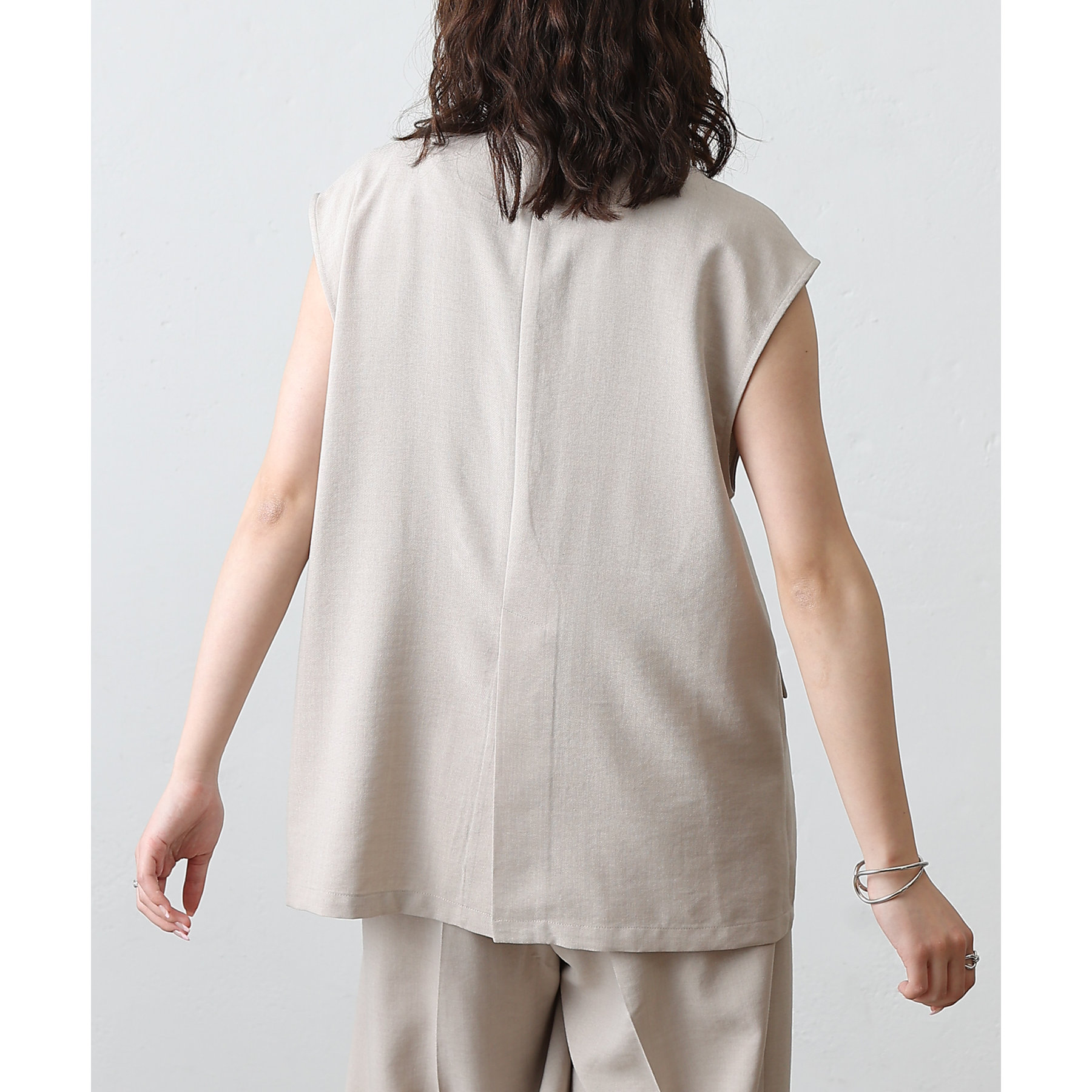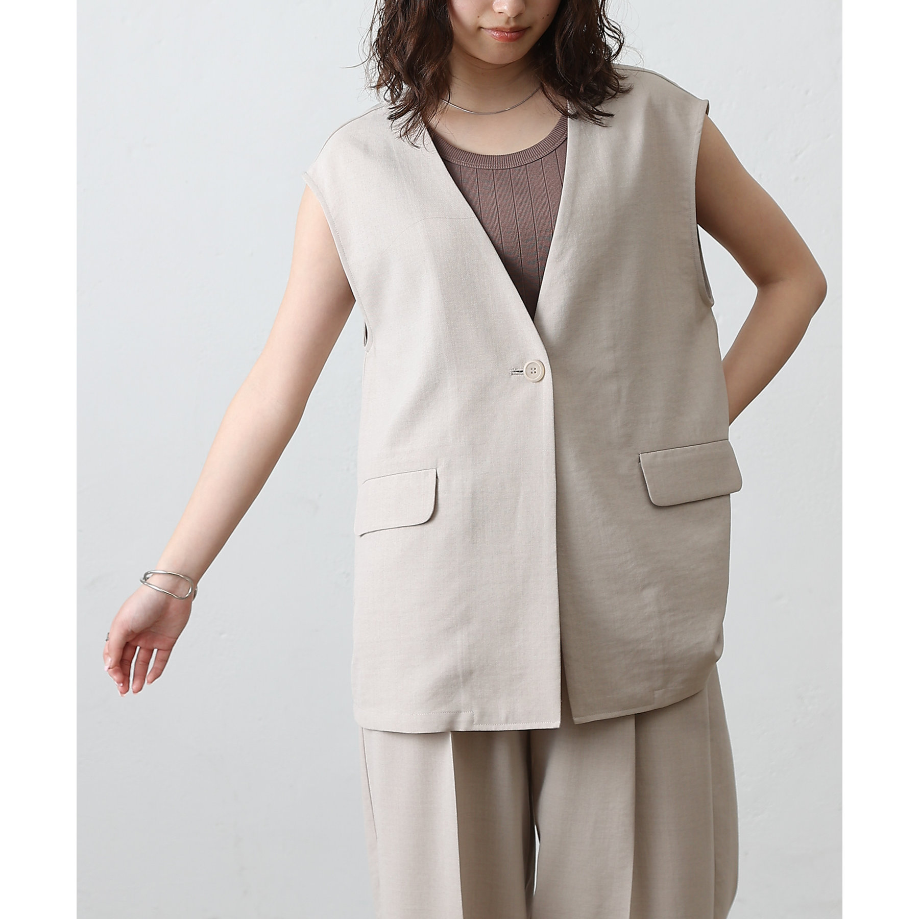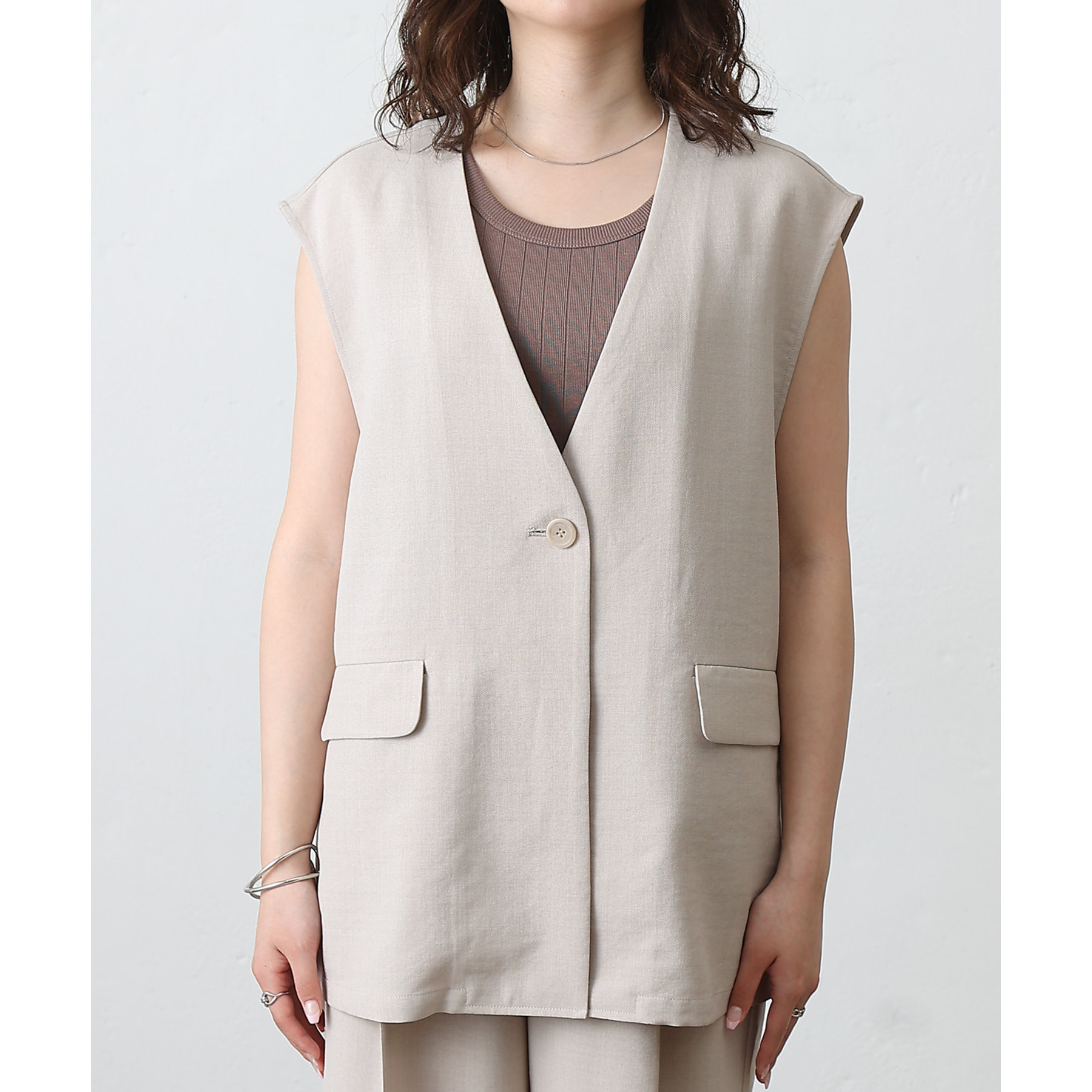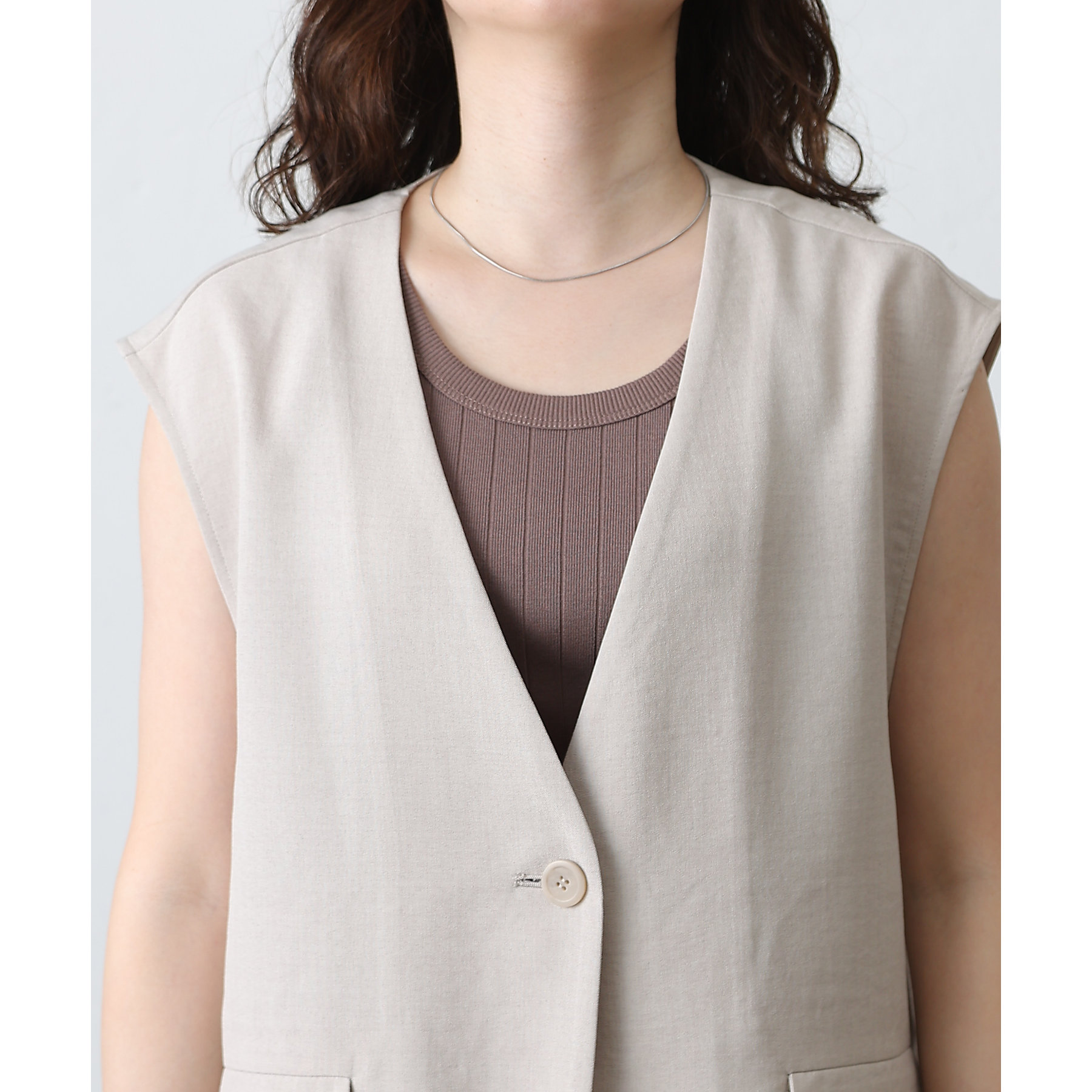 テックリネンノーカラーシングルジレ