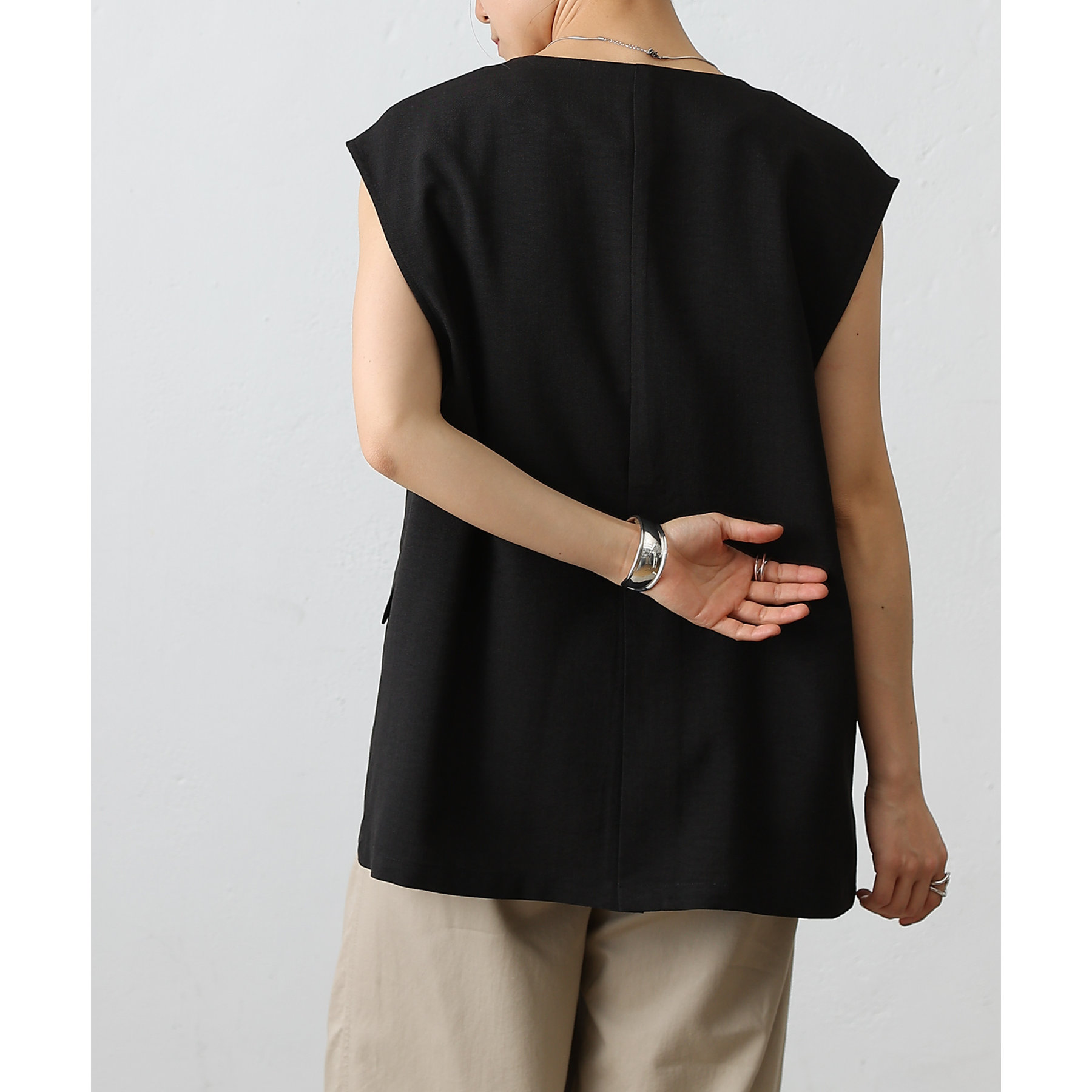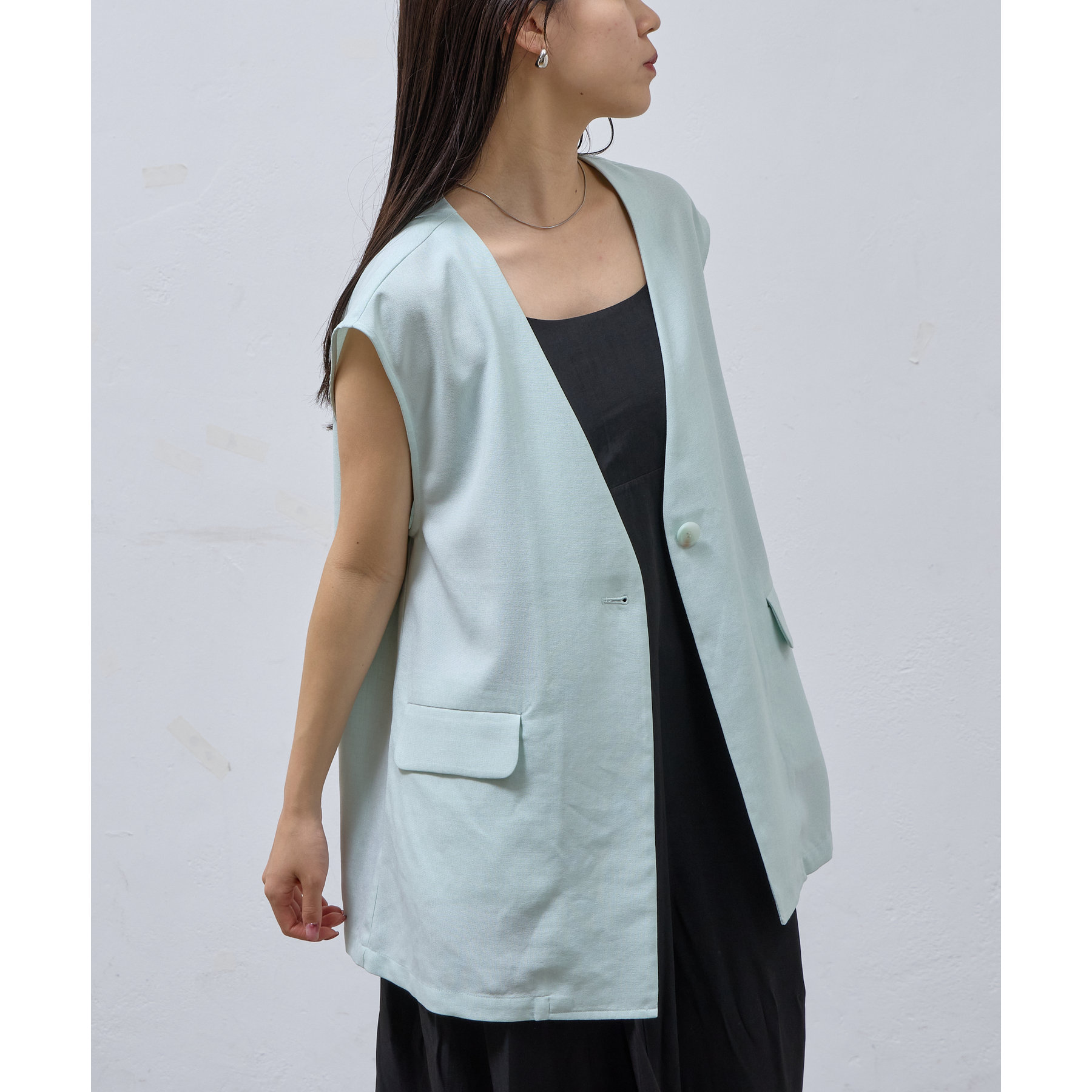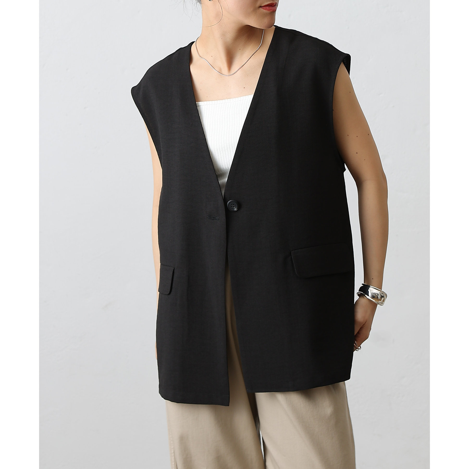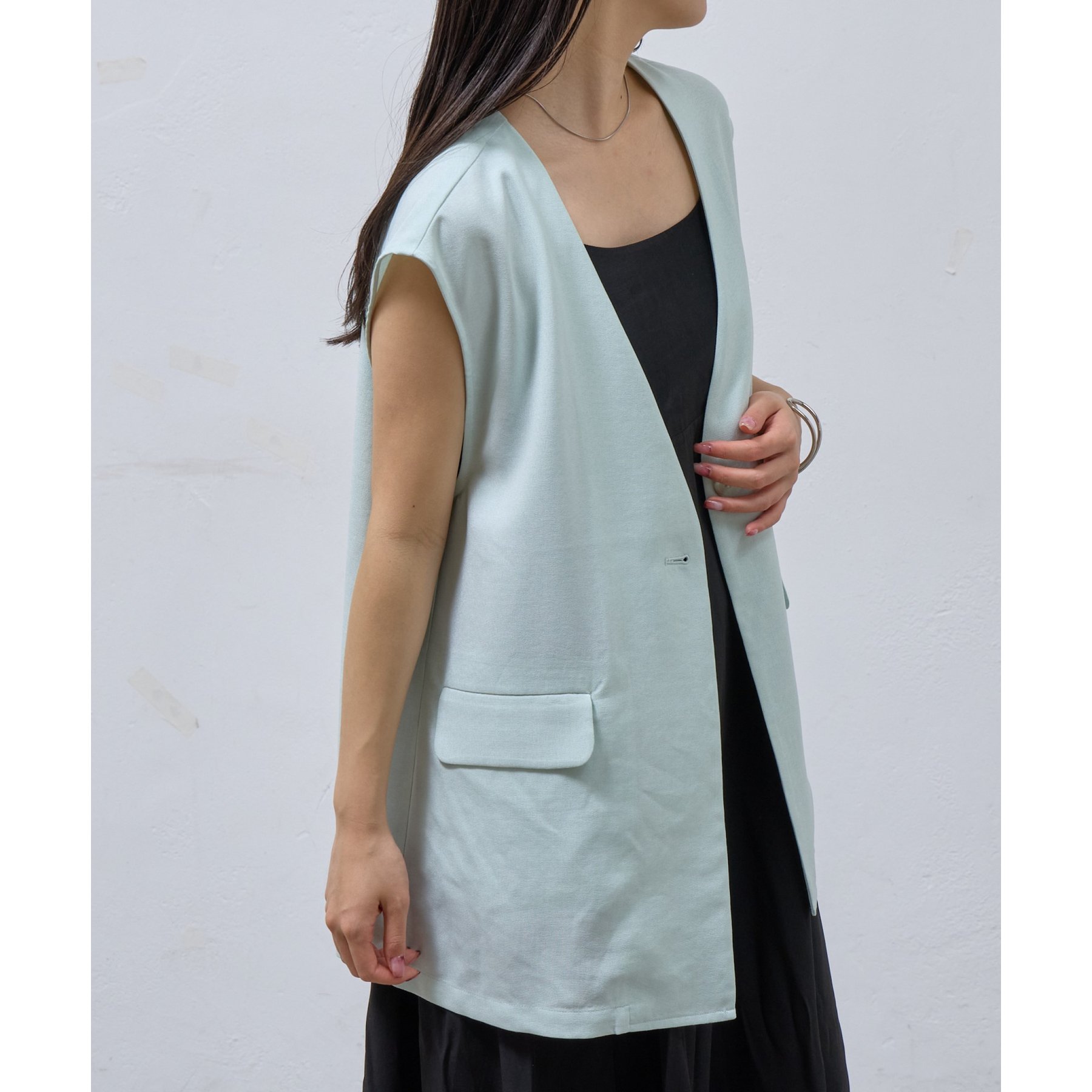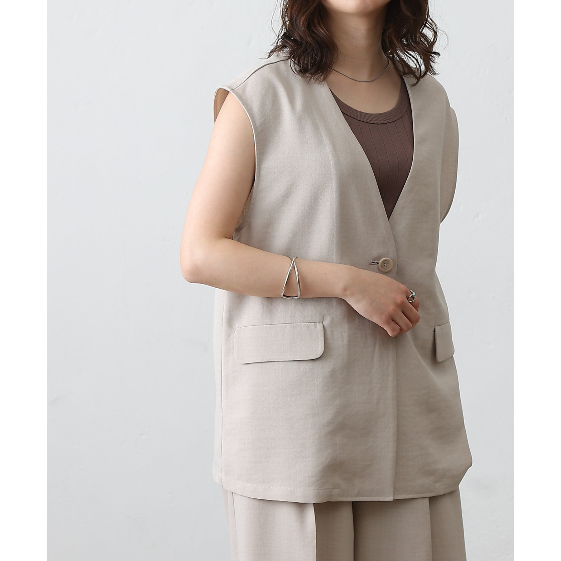 テックリネンノーカラーシングルジレ
