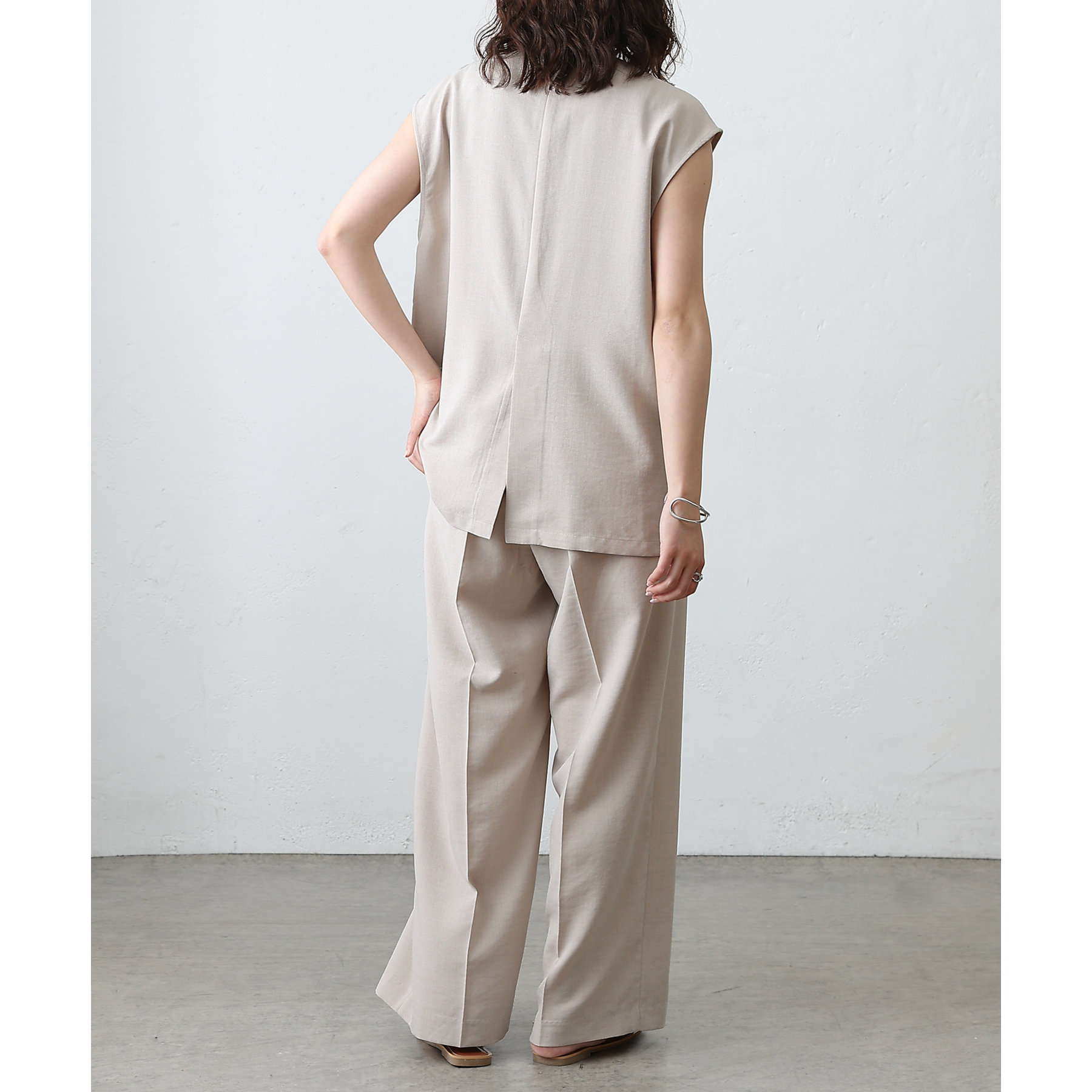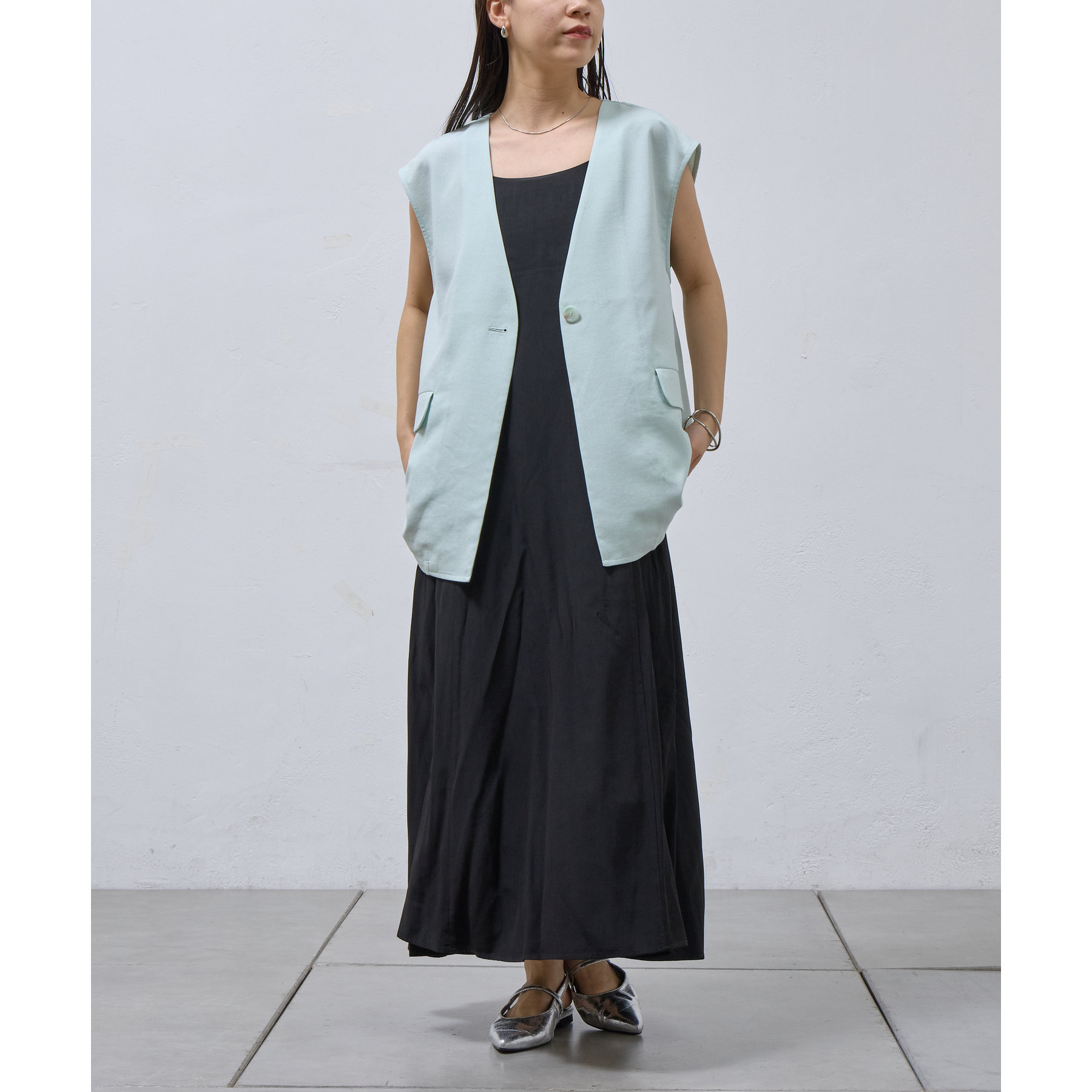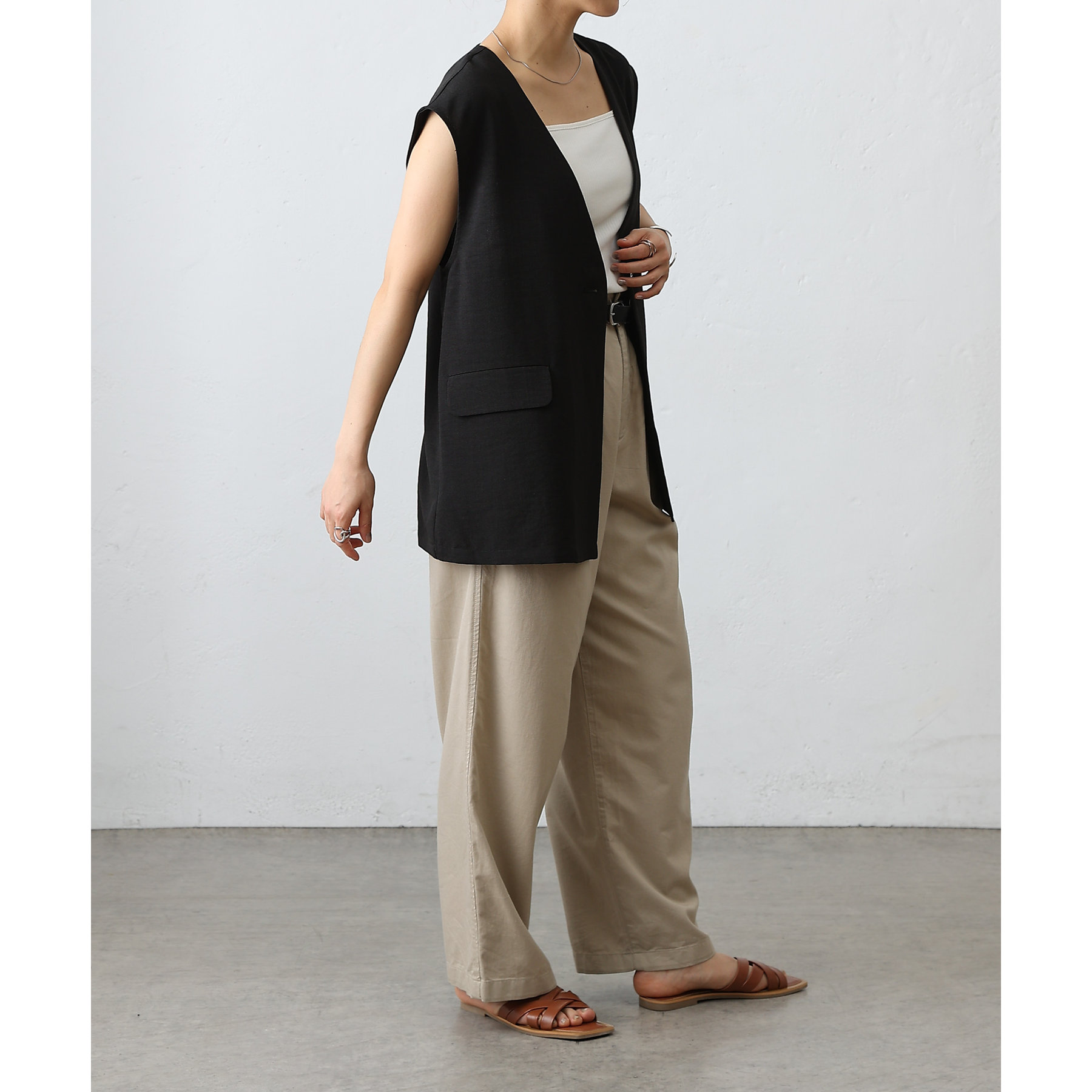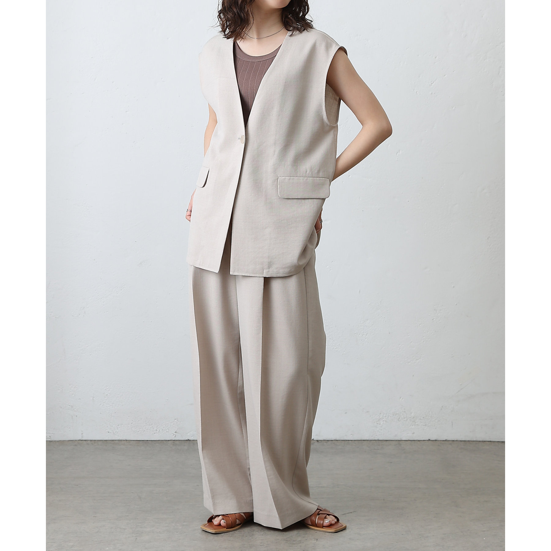 テックリネンノーカラーシングルジレ