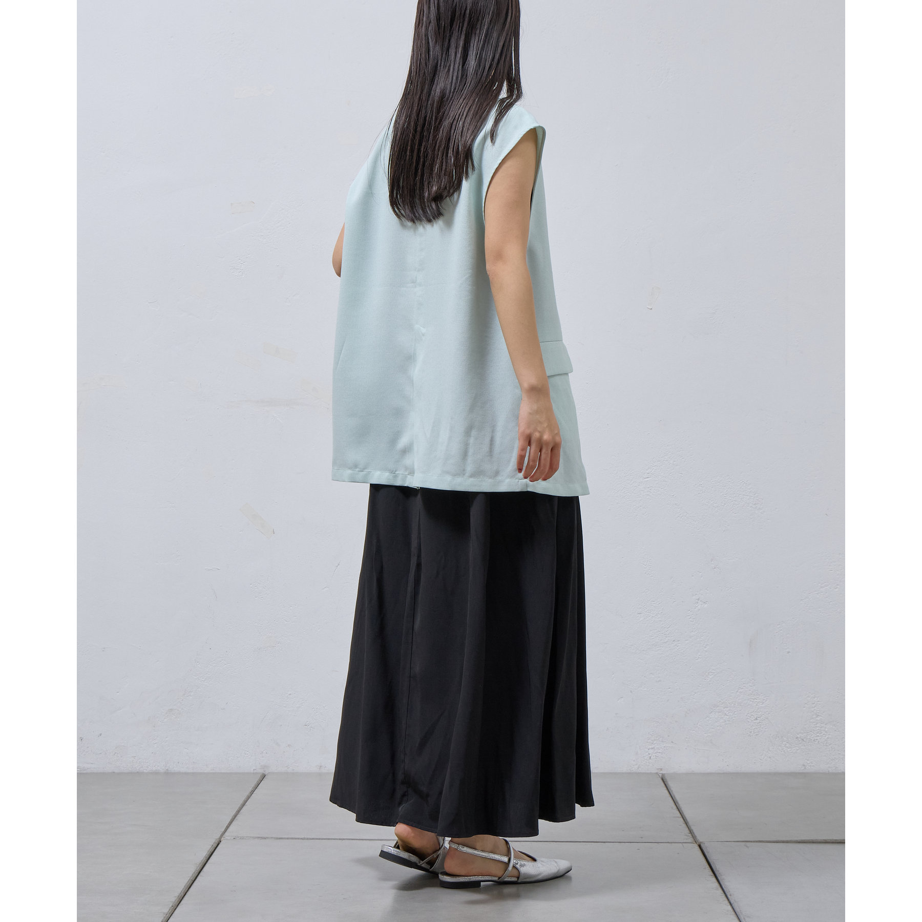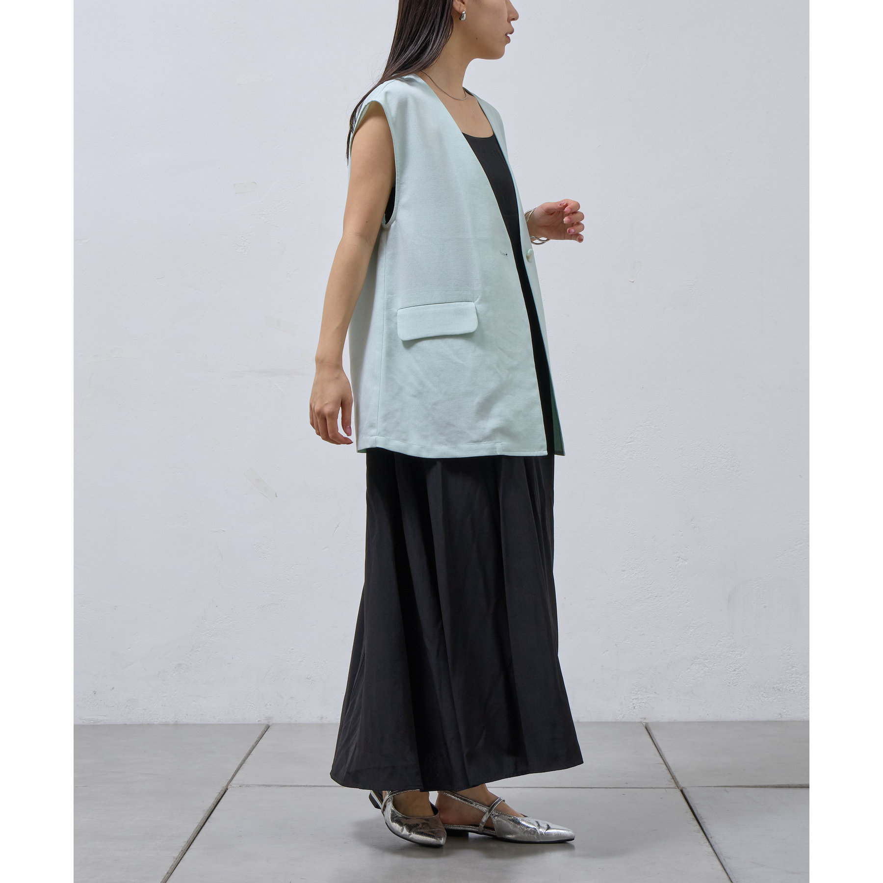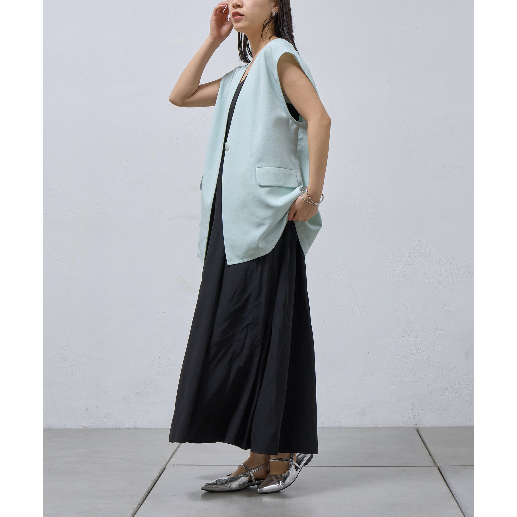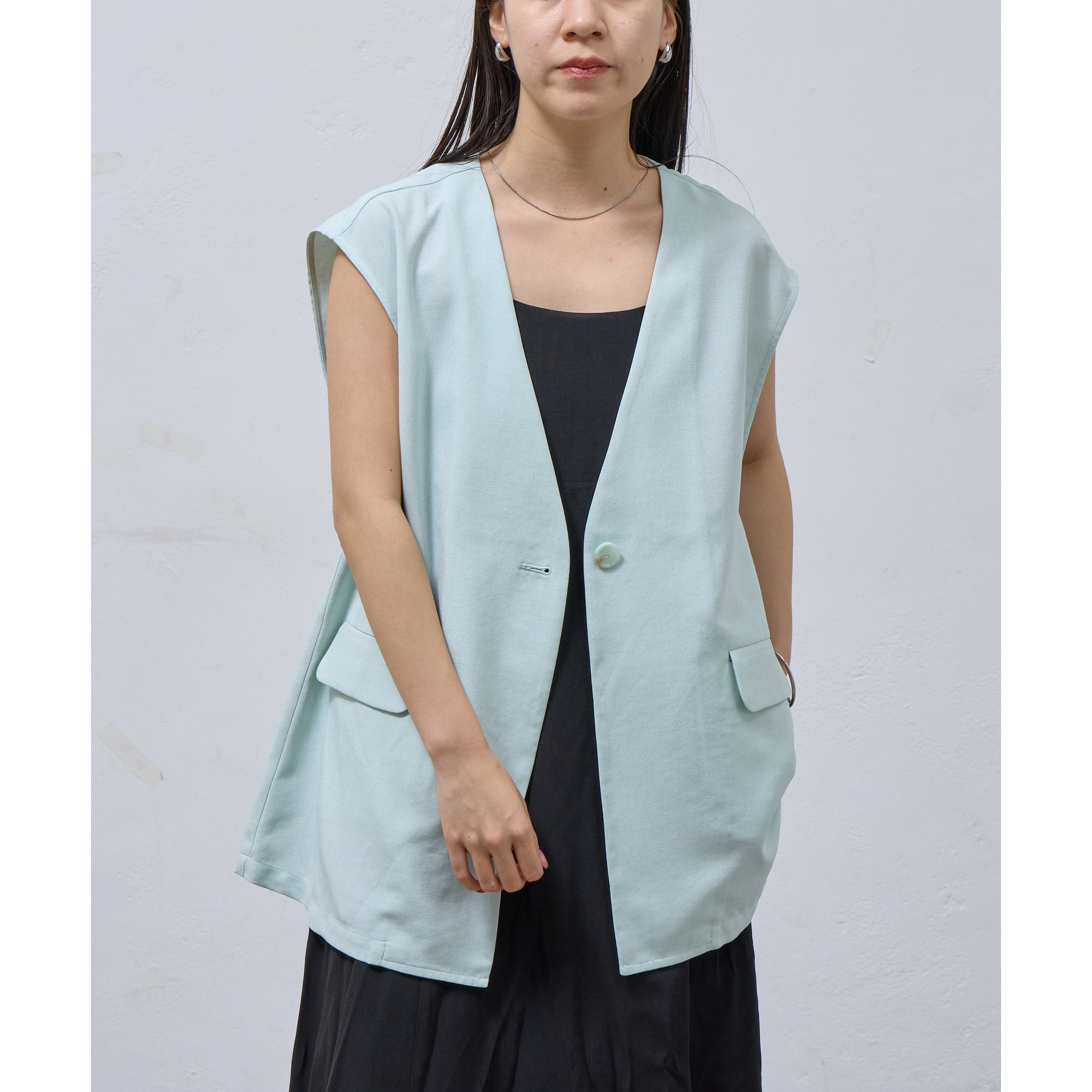 テックリネンノーカラーシングルジレ
