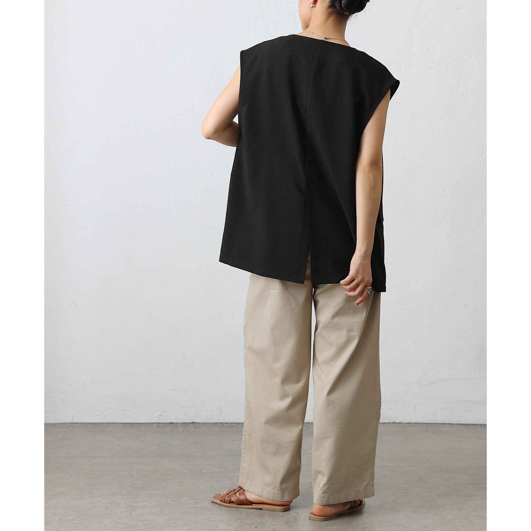 リネンのようなさらっと快適な着心地と、しわになりにくい素材感でデイリーに使えるアイテム。