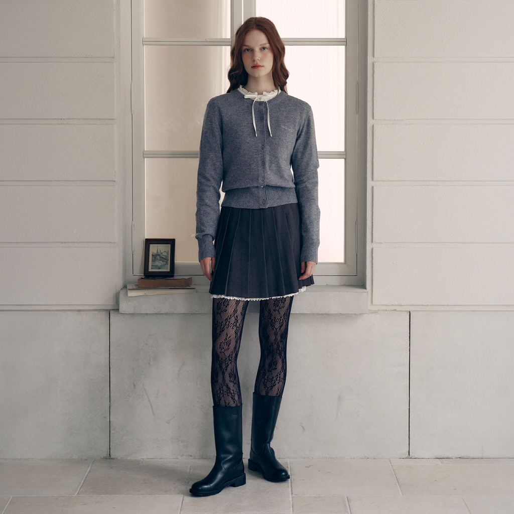LACE POINTED PLEATS MINI SKIRT GRAY