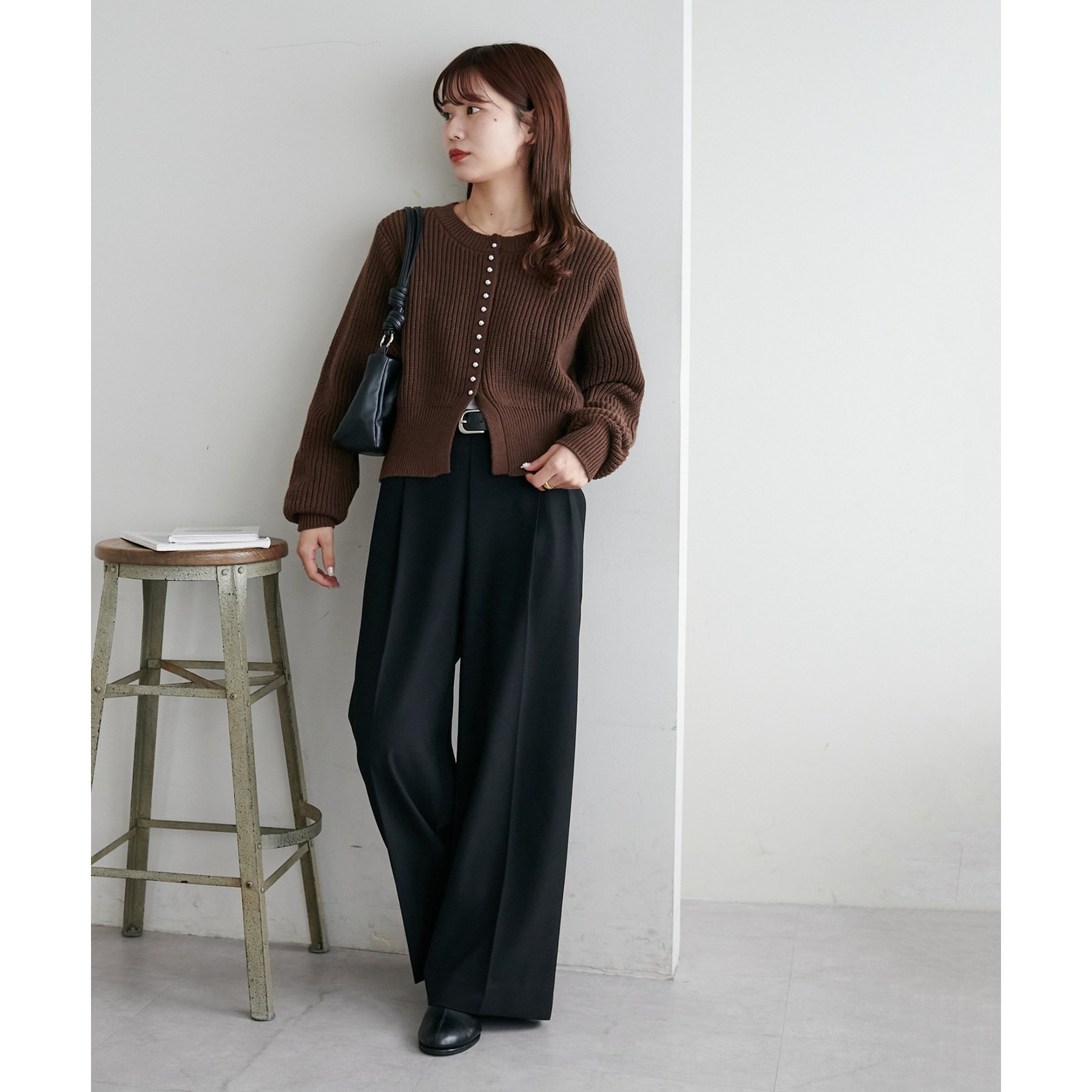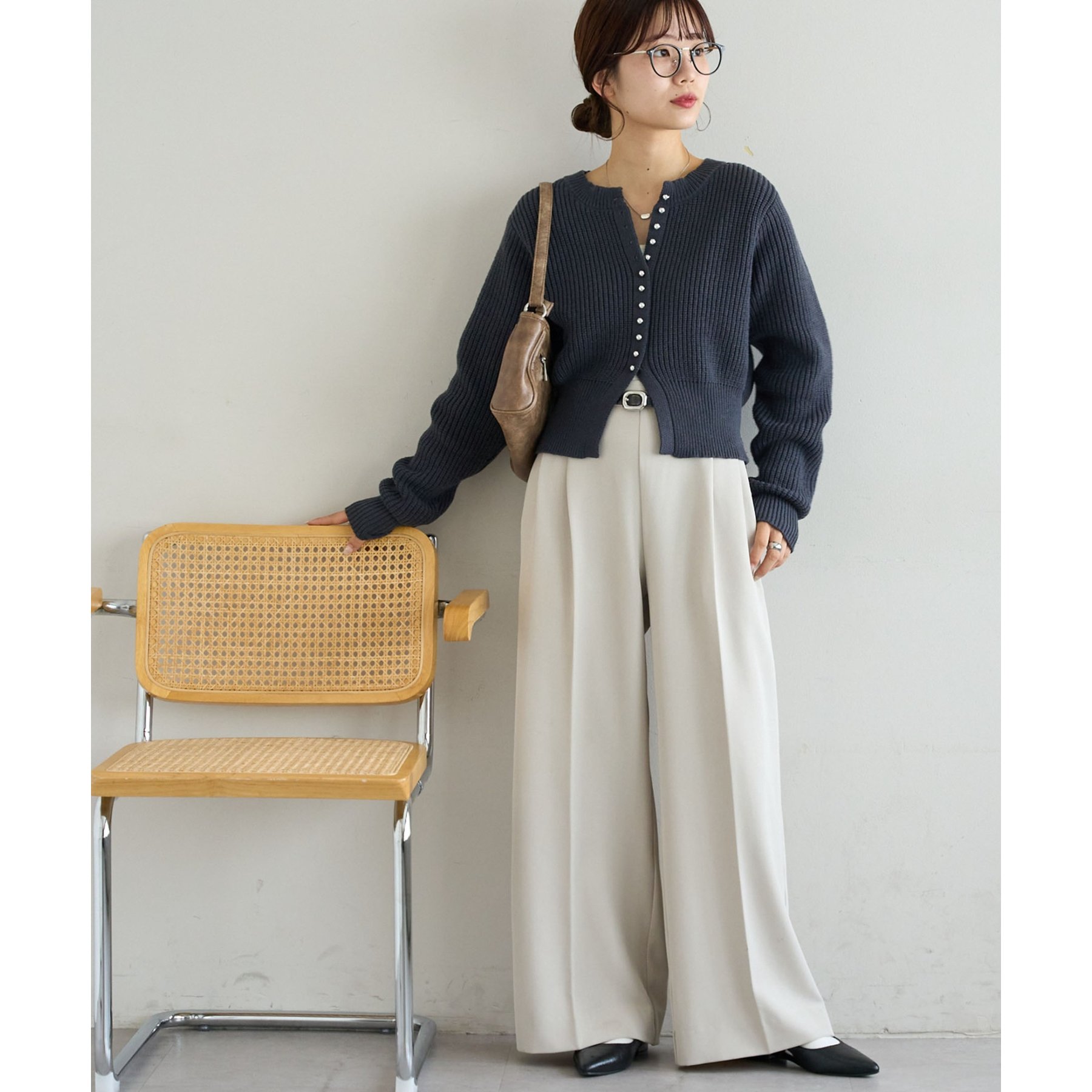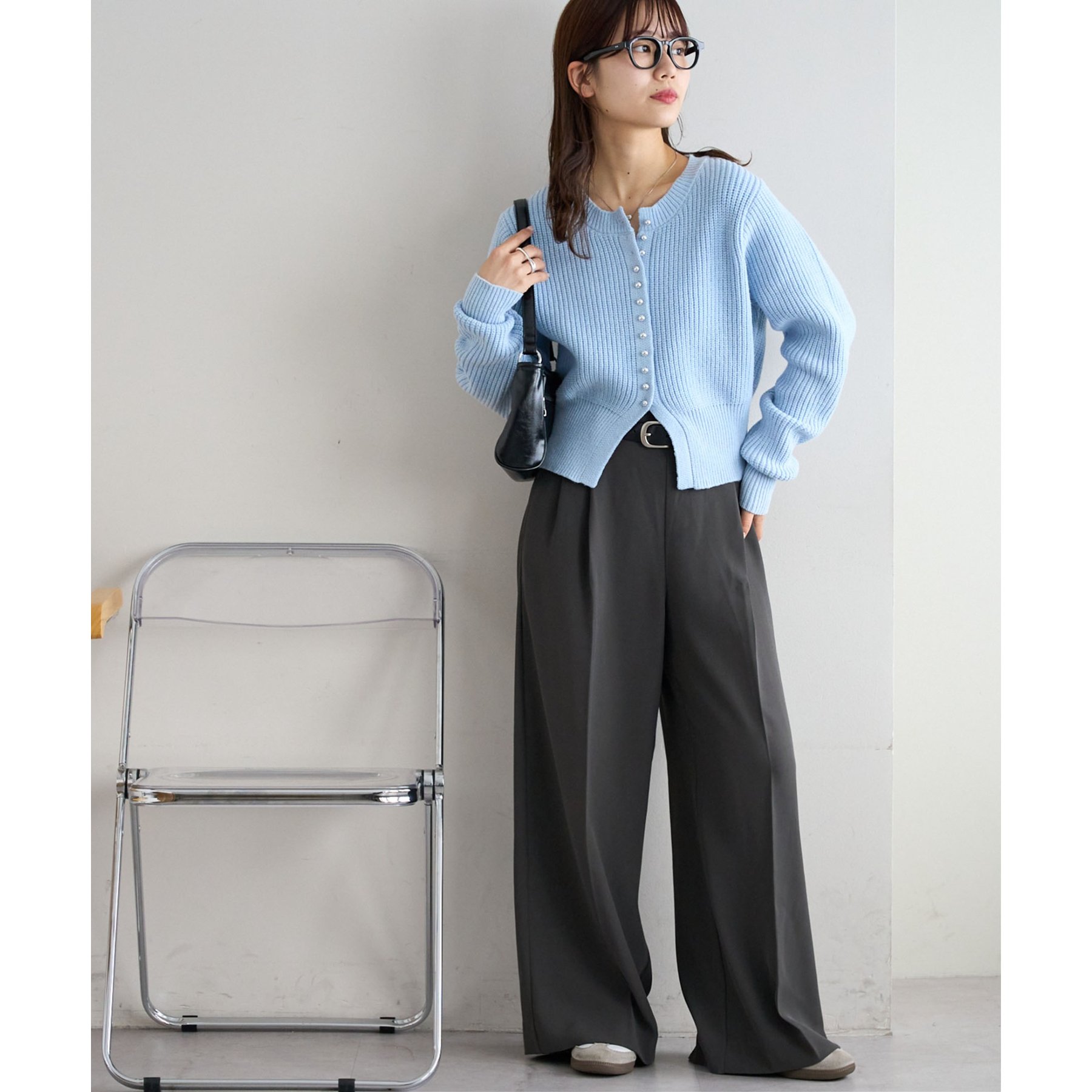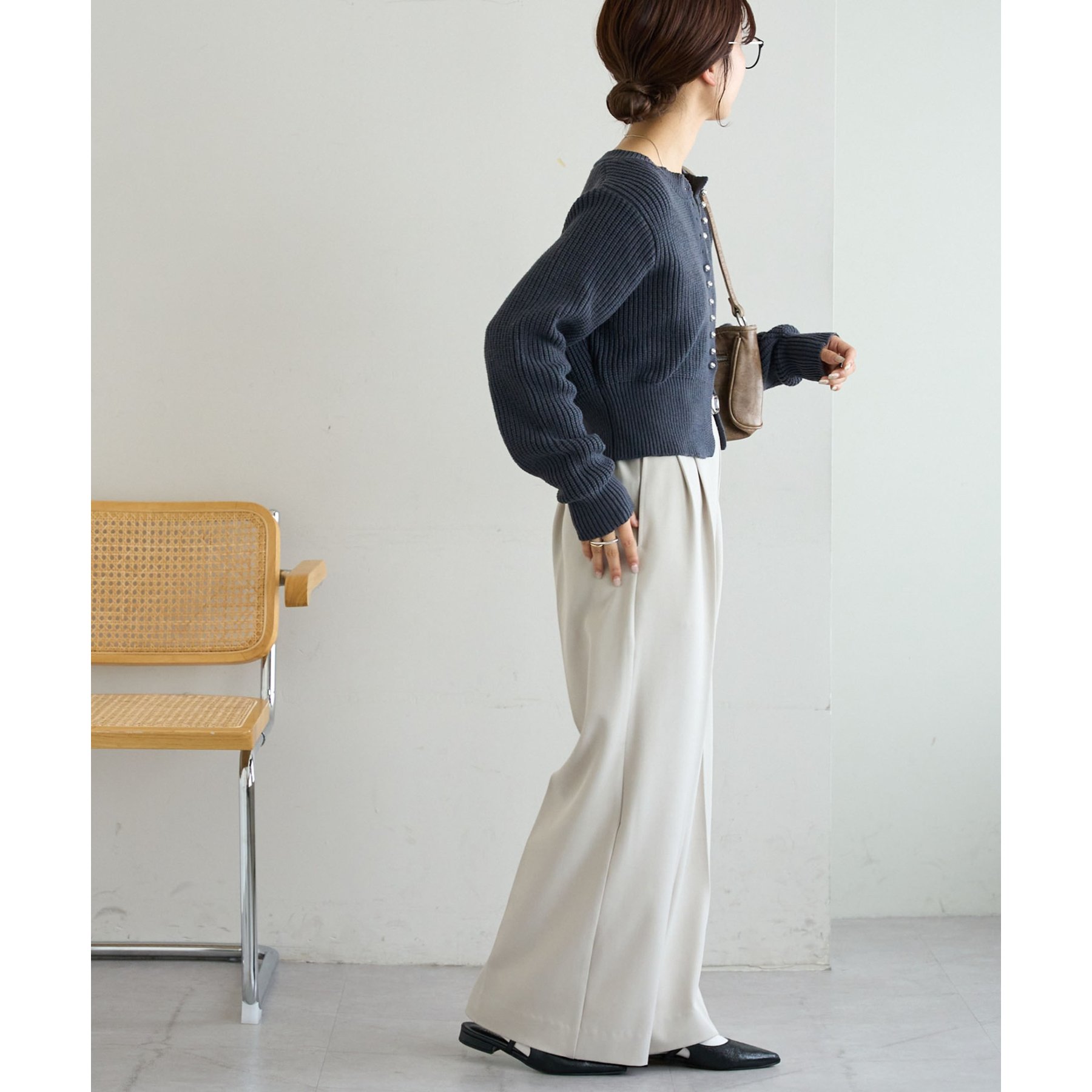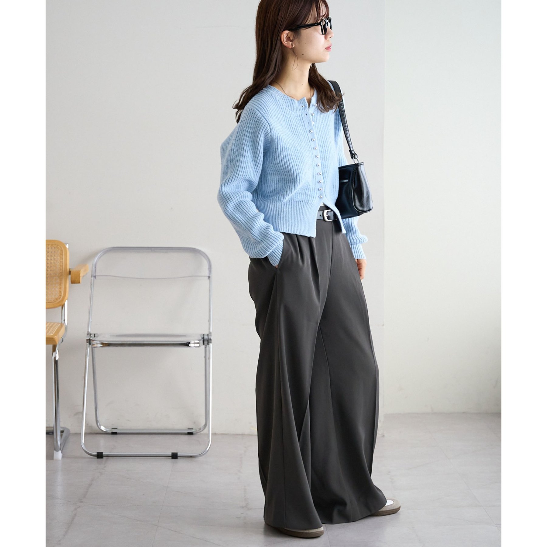 ・コンパクトな着丈で、ストレートパンツ・ワイドパンツ・フレアスカートなど、足元にボリューム感のあるアイテムと相性◎