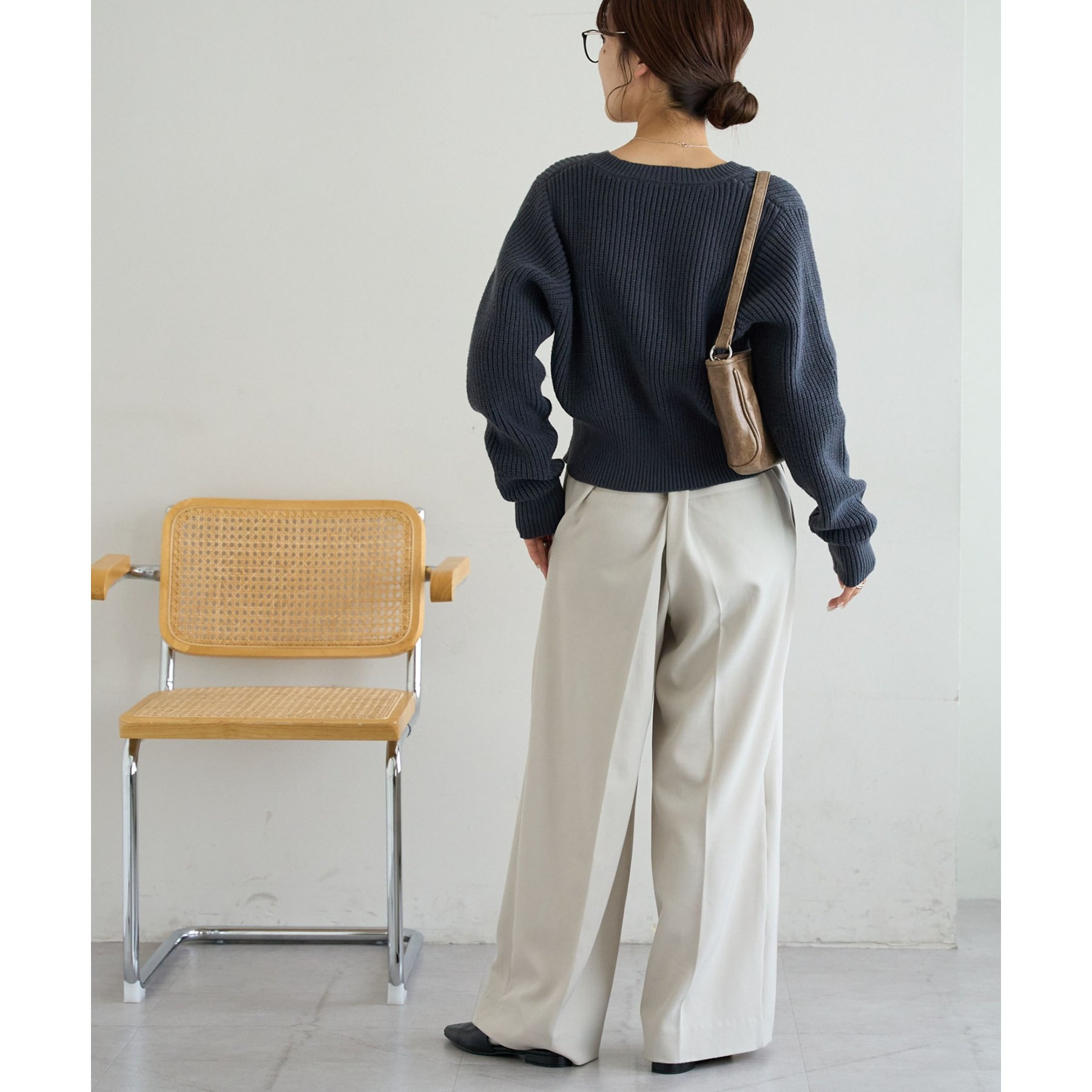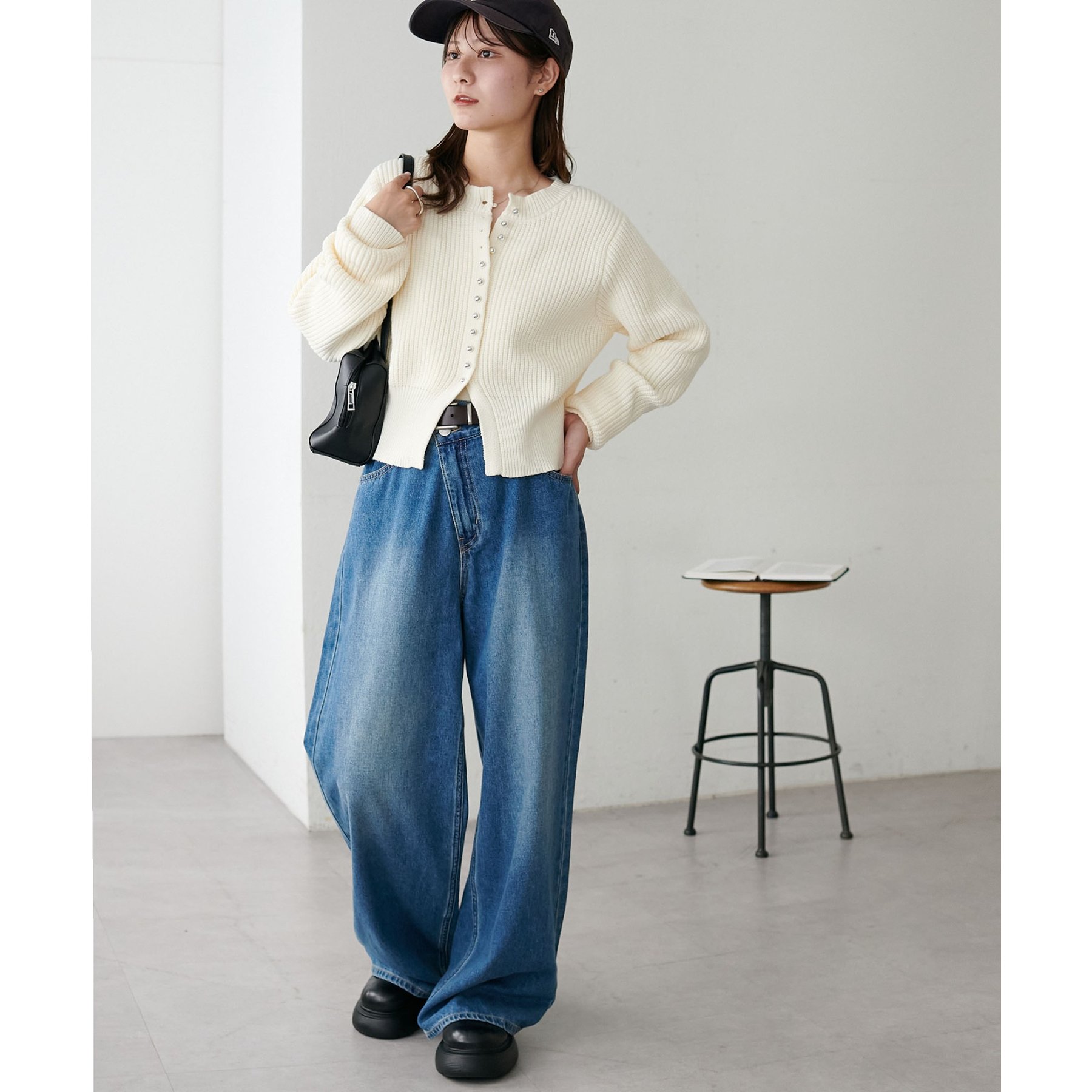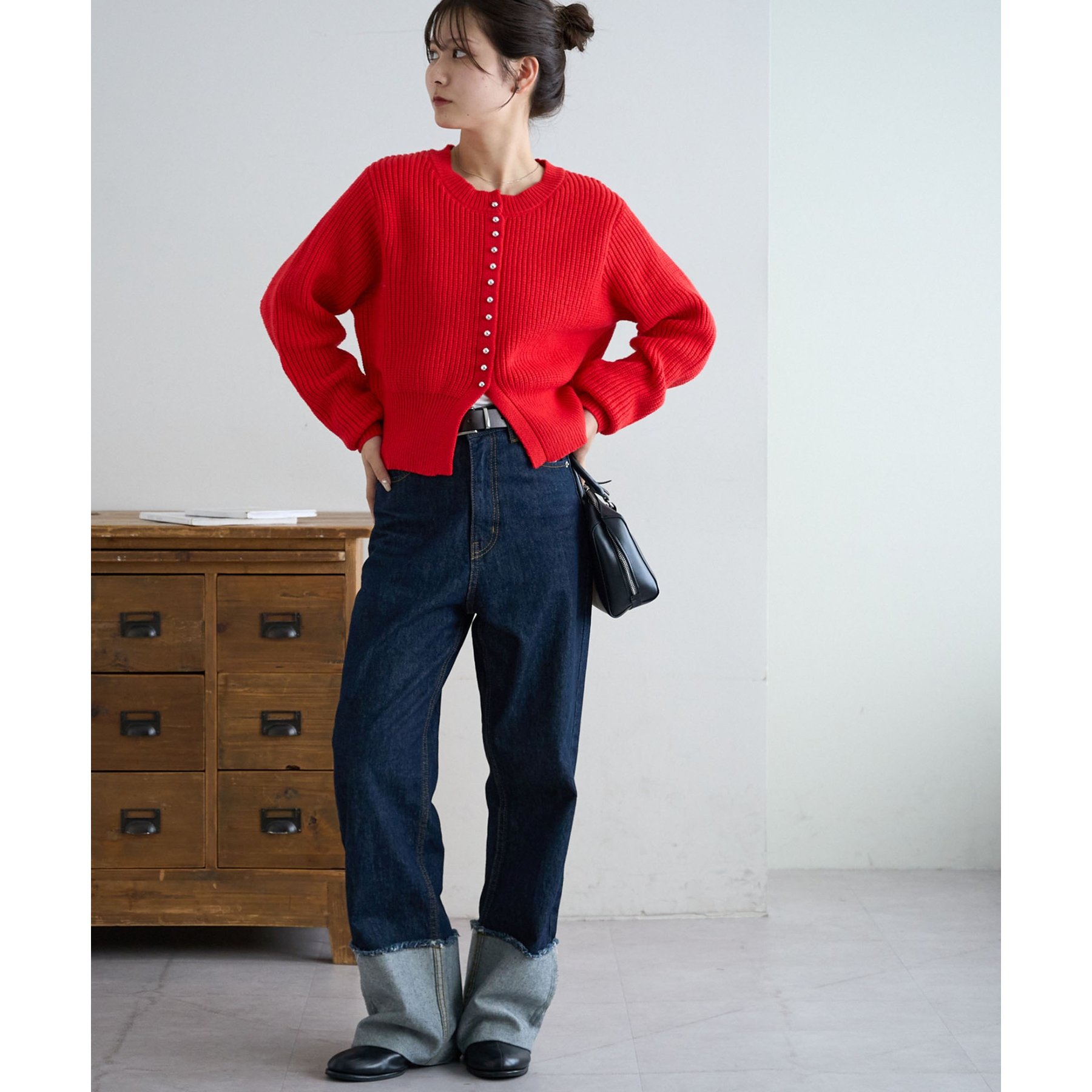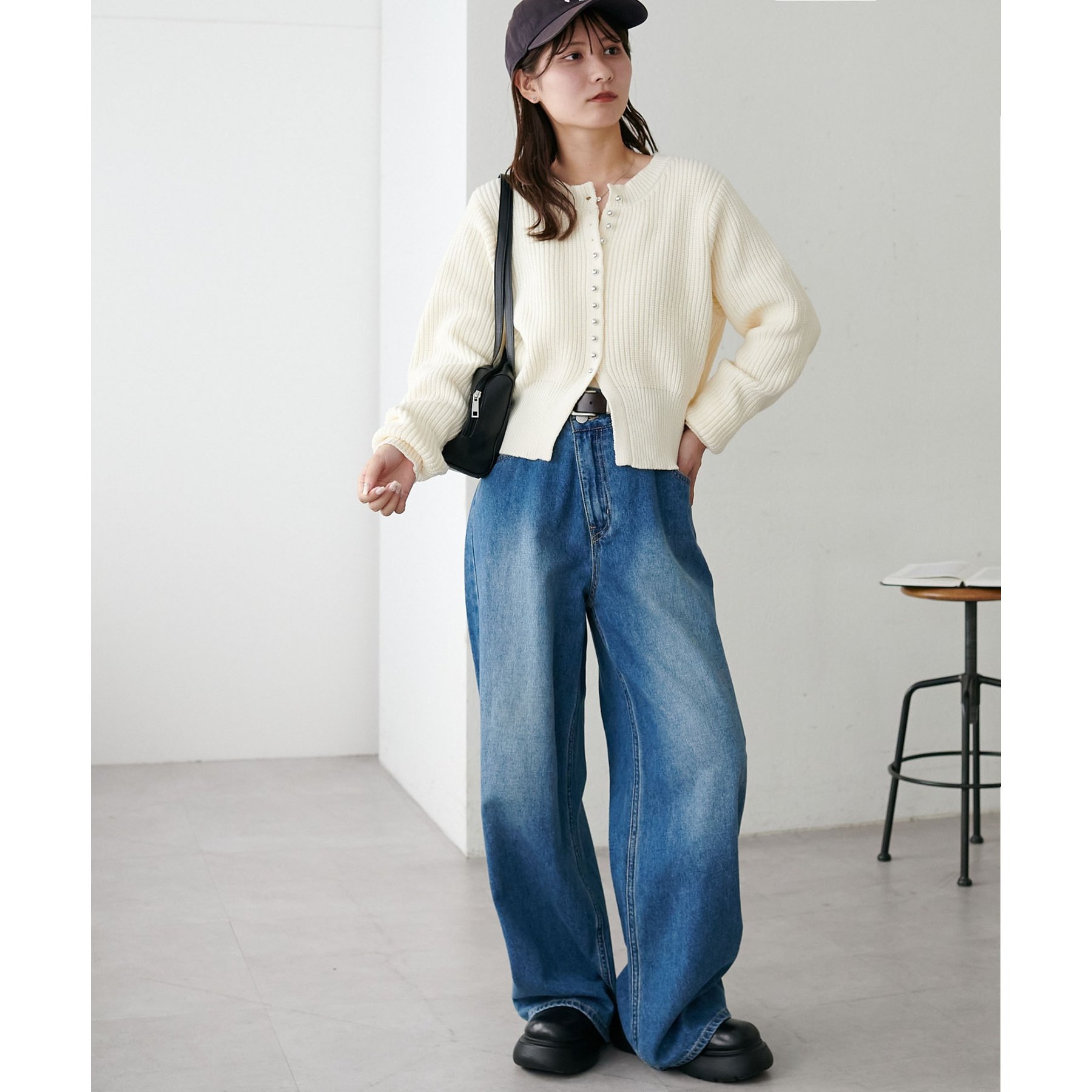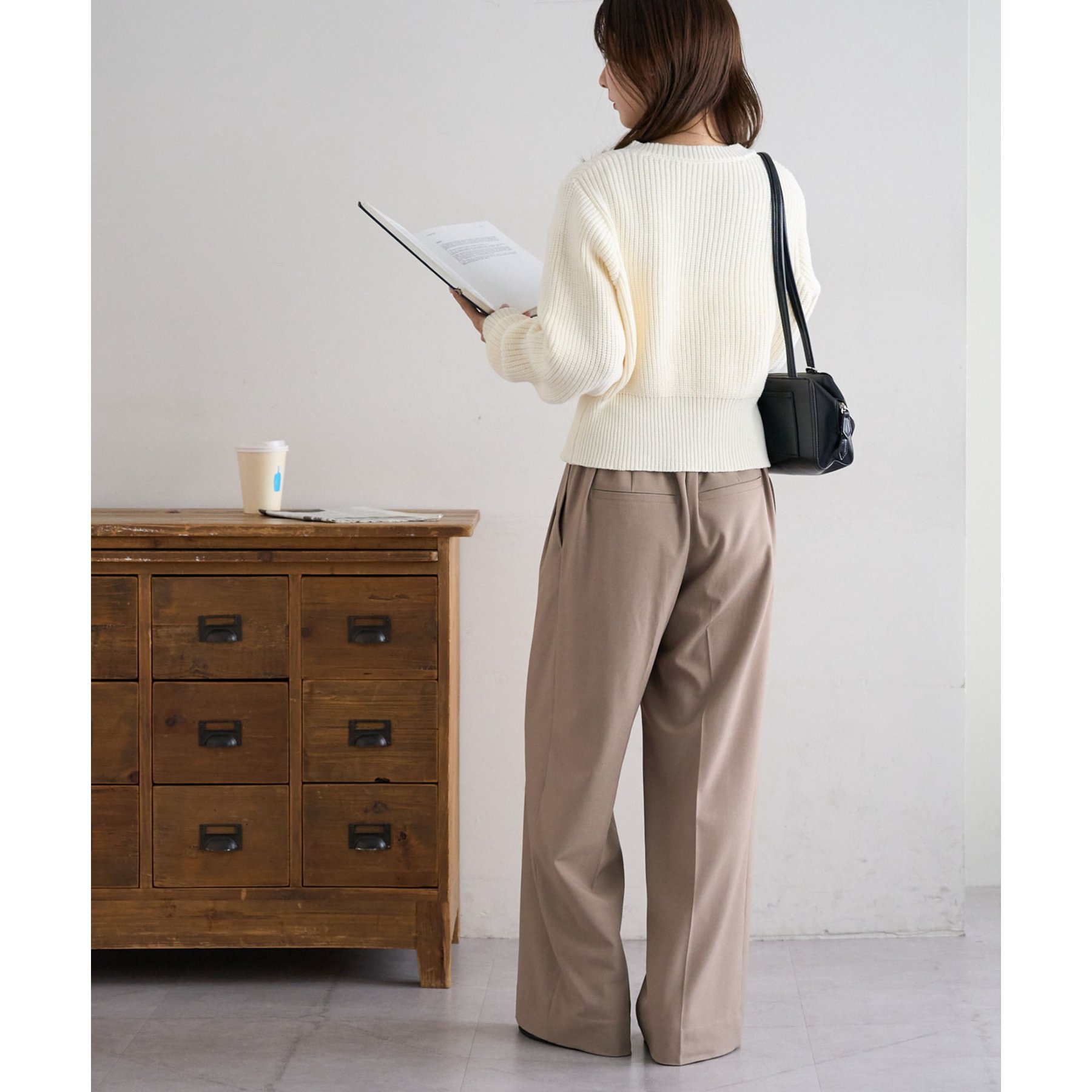・コンパクトな着丈で、ストレートパンツ・ワイドパンツ・フレアスカートなど、足元にボリューム感のあるアイテムと相性◎