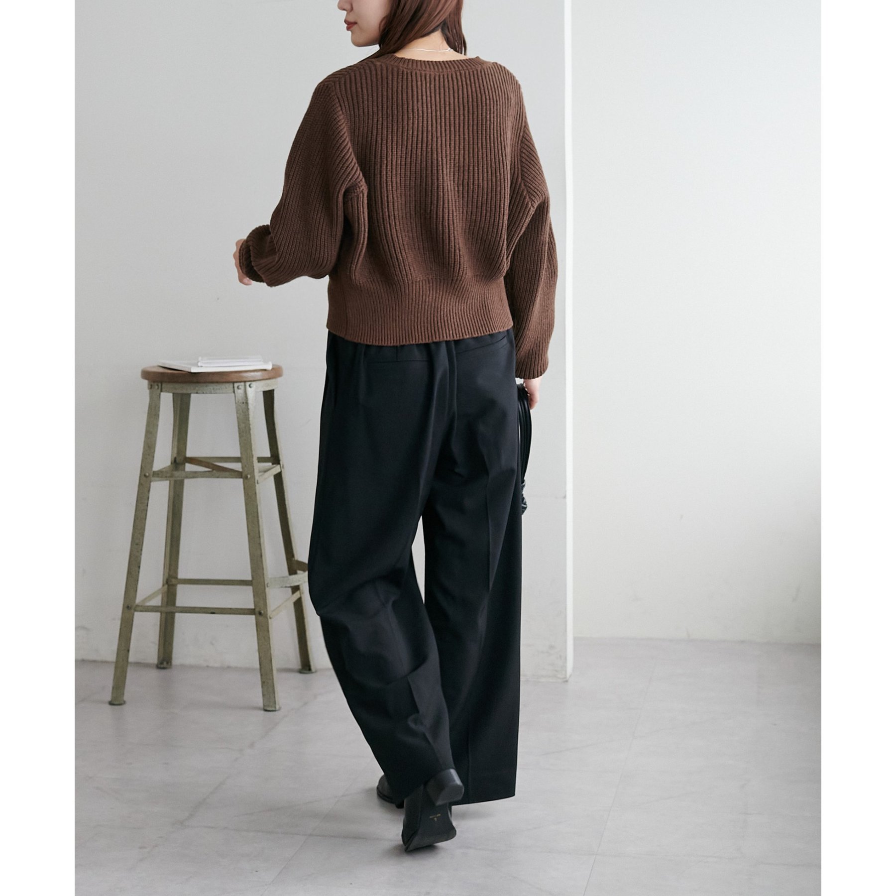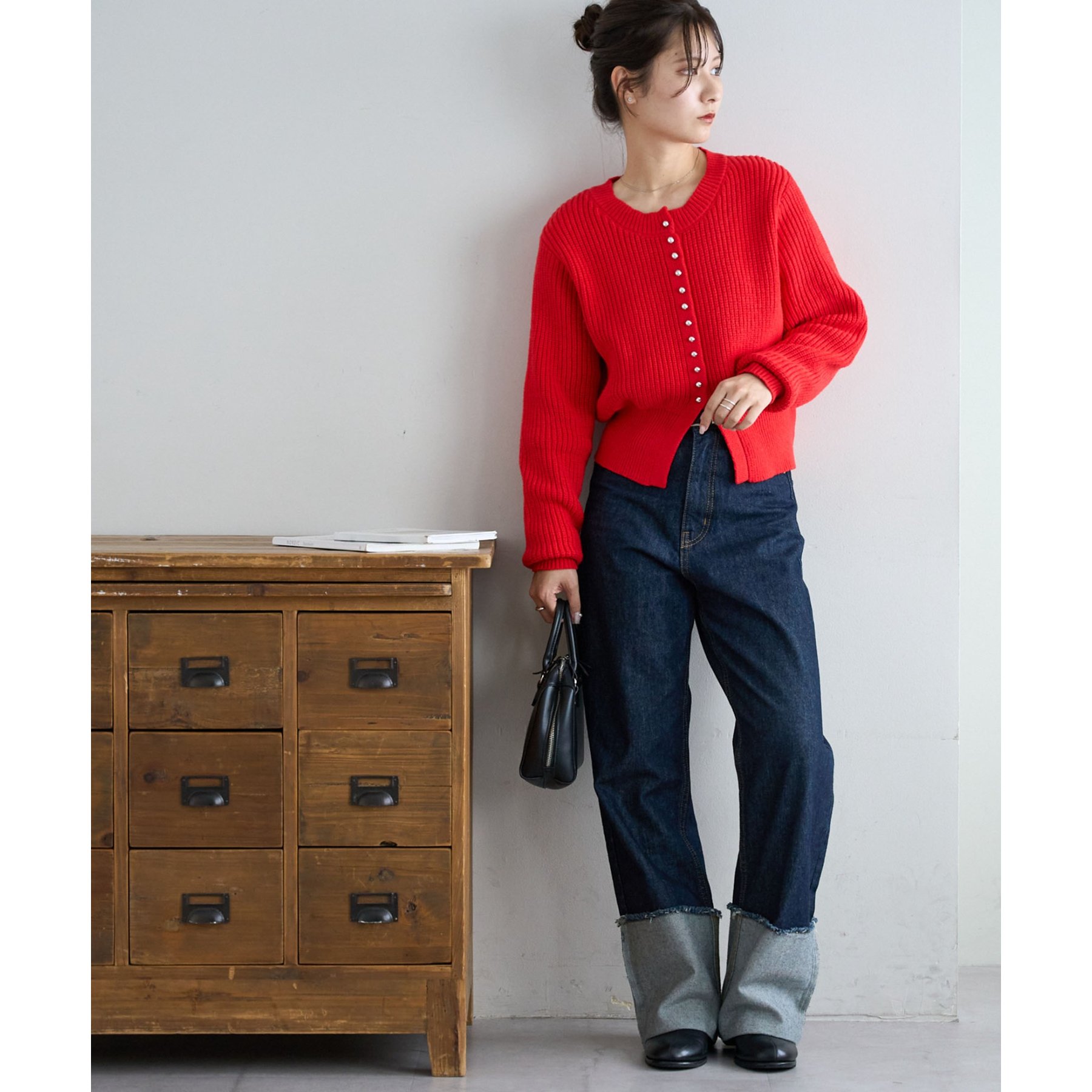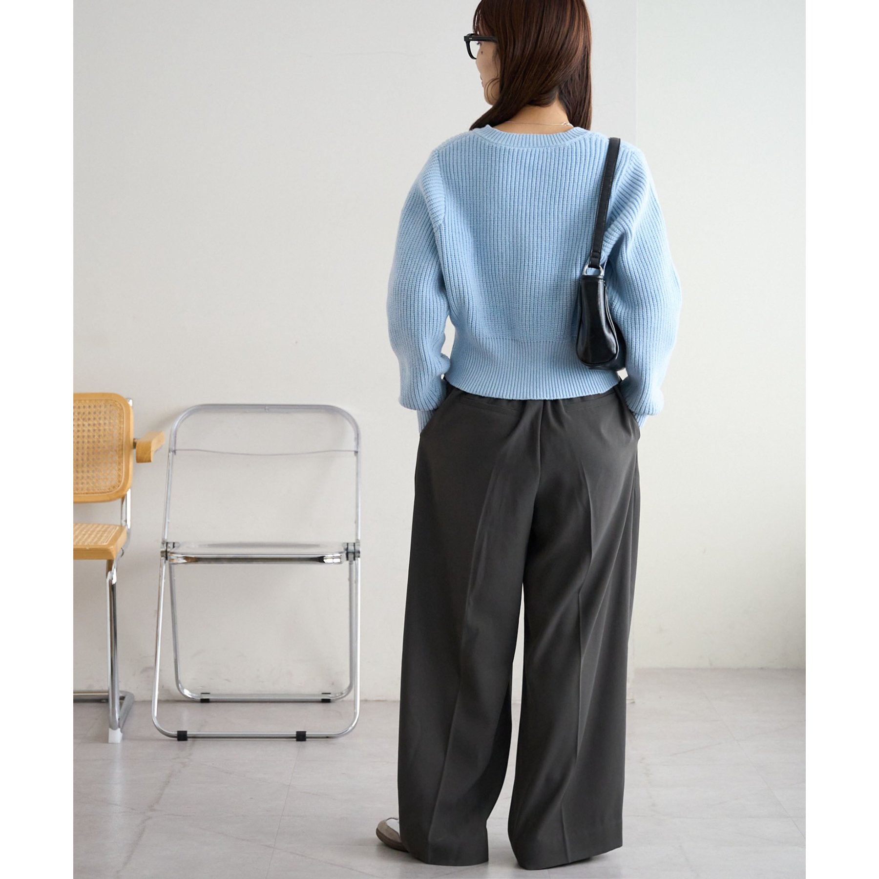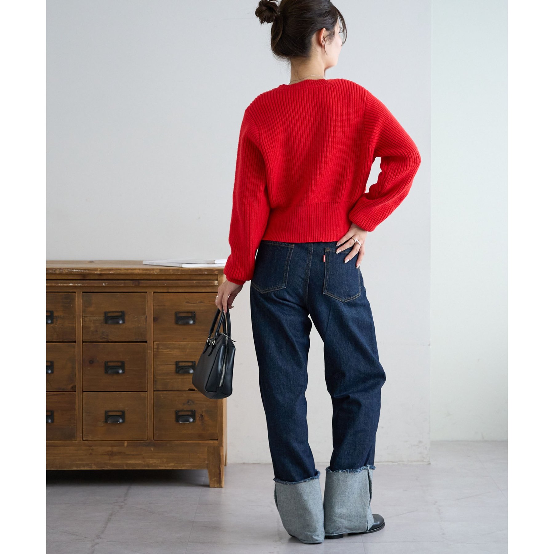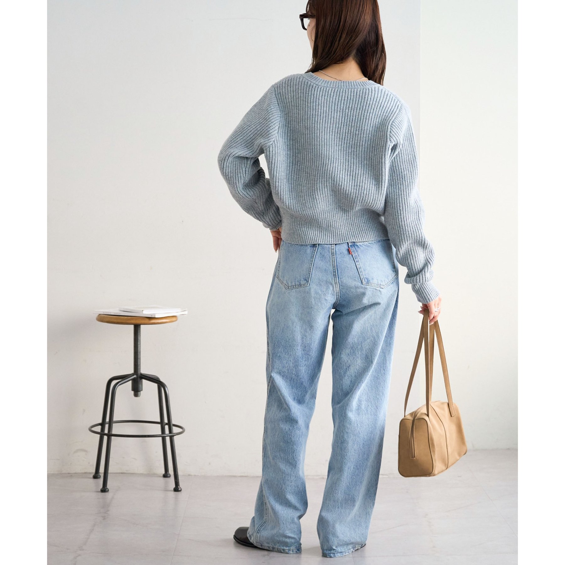 ・コンパクトな着丈で、ストレートパンツ・ワイドパンツ・フレアスカートなど、足元にボリューム感のあるアイテムと相性◎