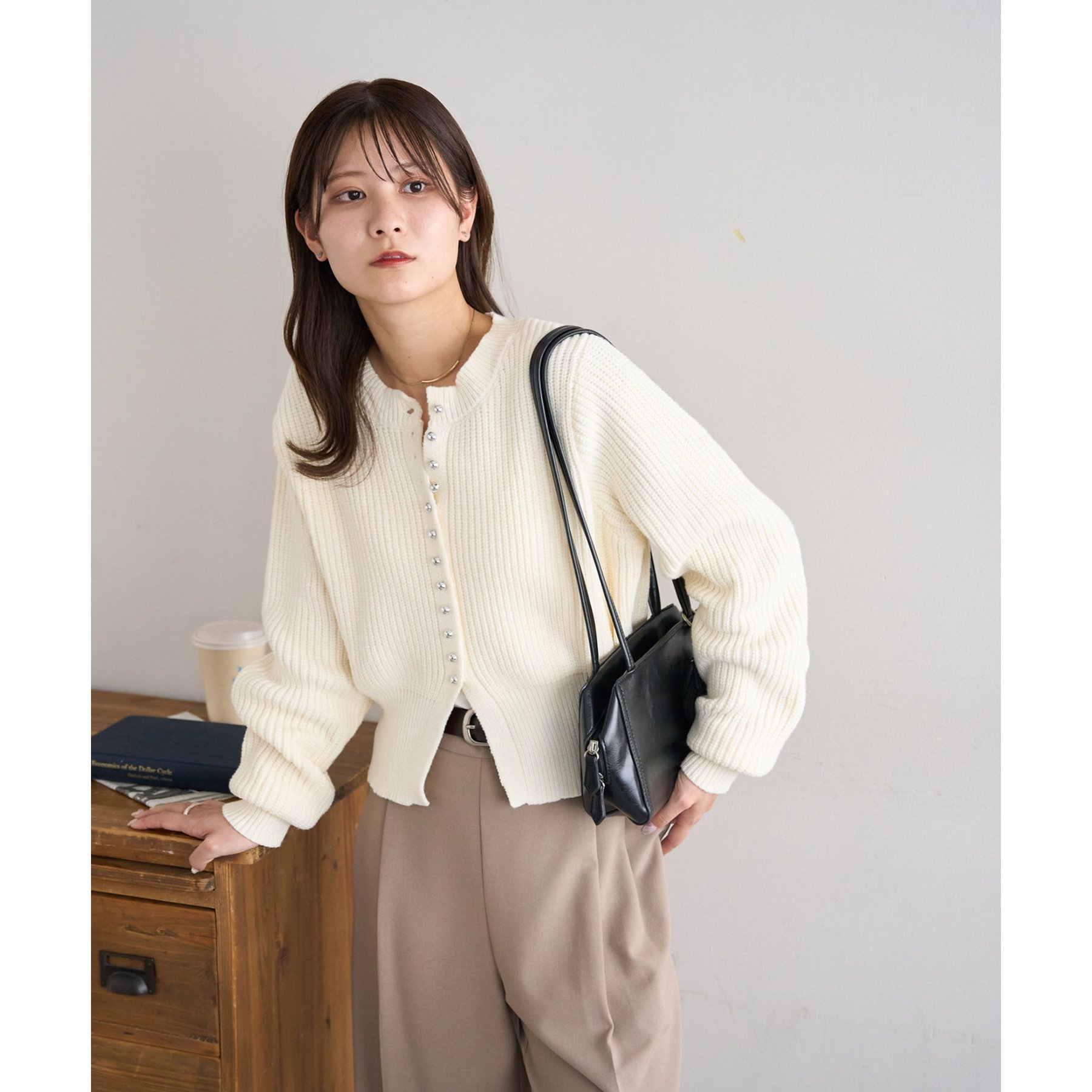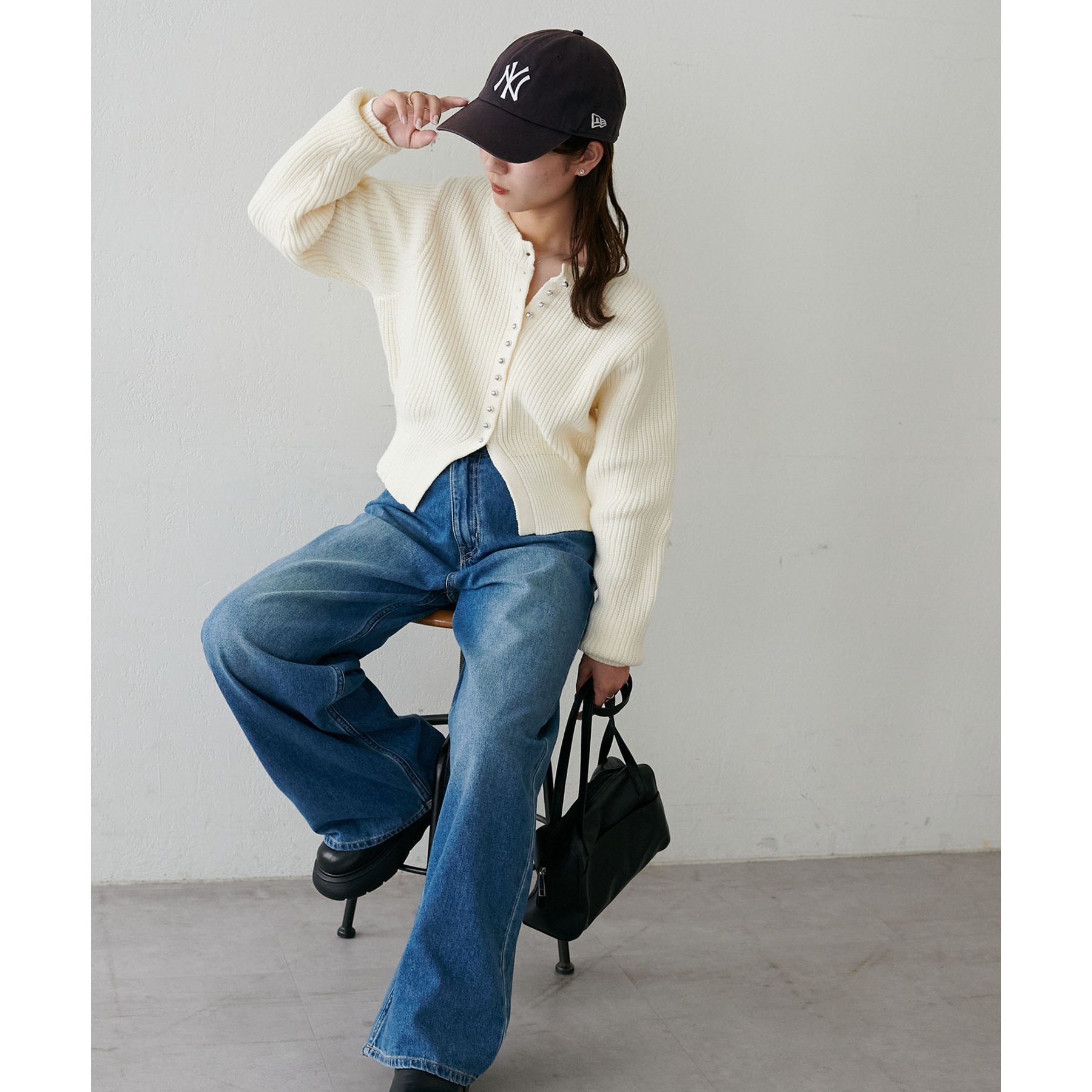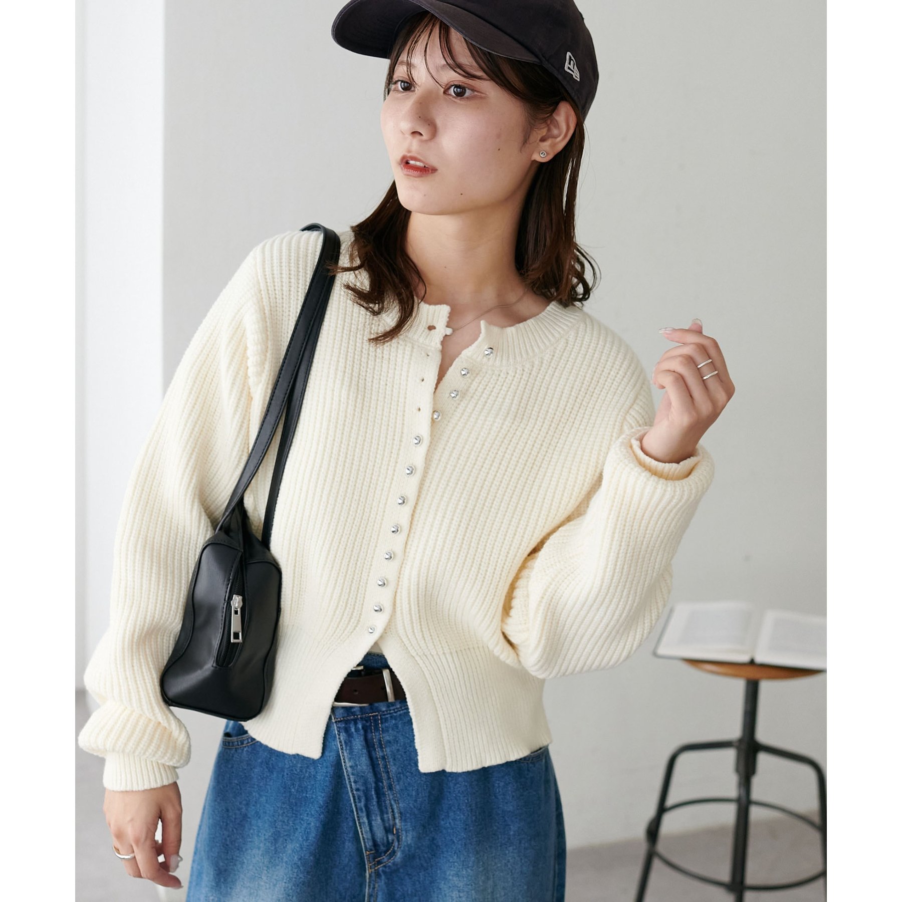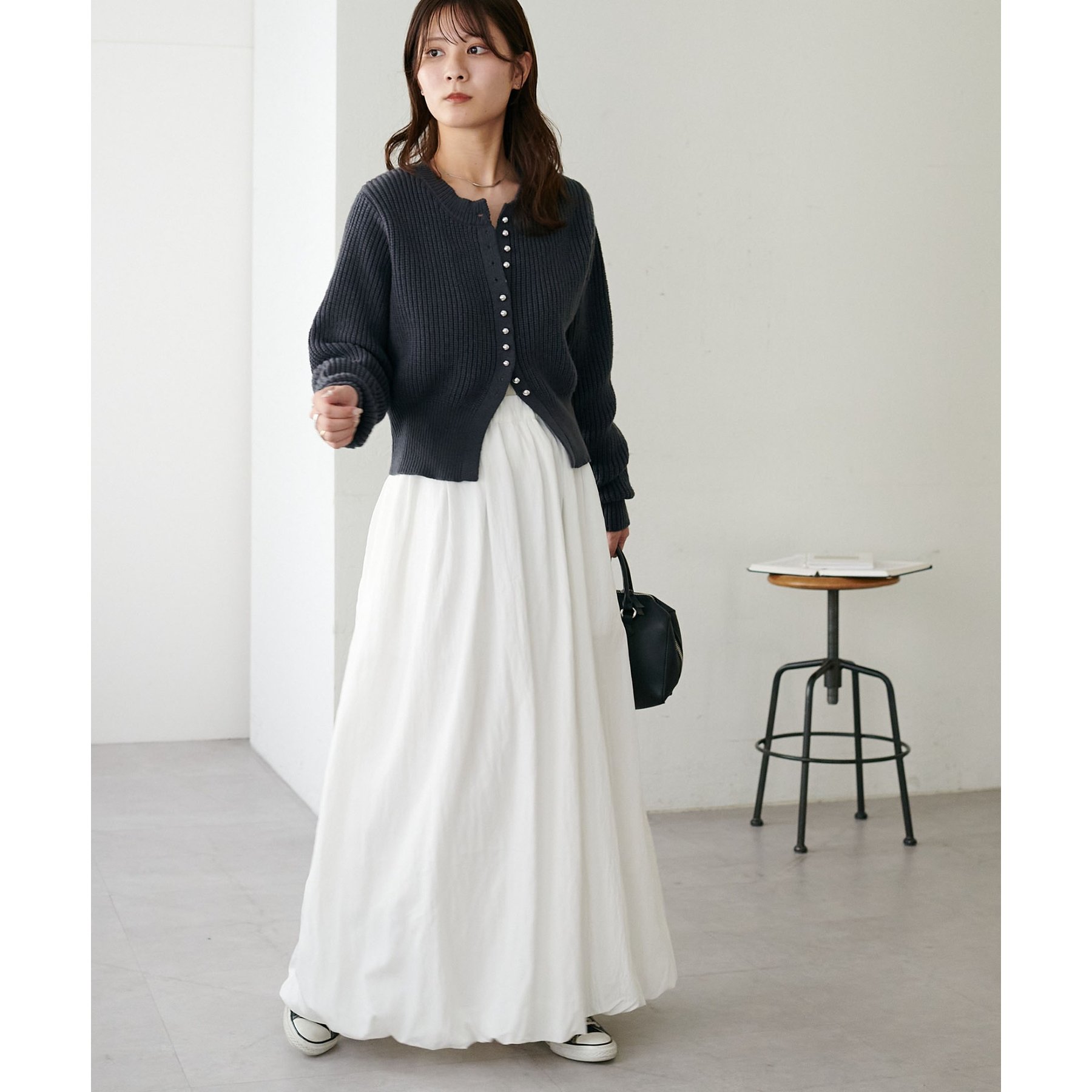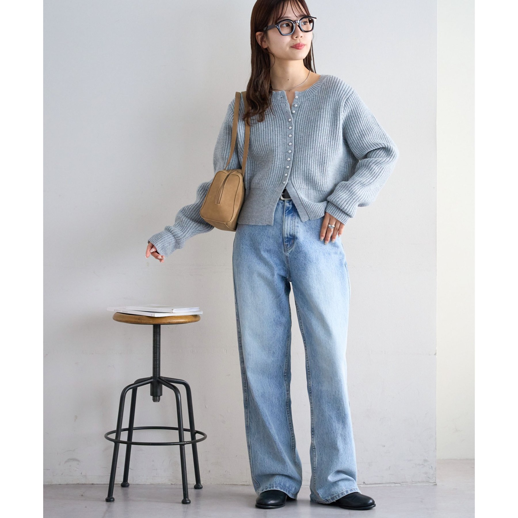 ・コンパクトな着丈で、ストレートパンツ・ワイドパンツ・フレアスカートなど、足元にボリューム感のあるアイテムと相性◎
