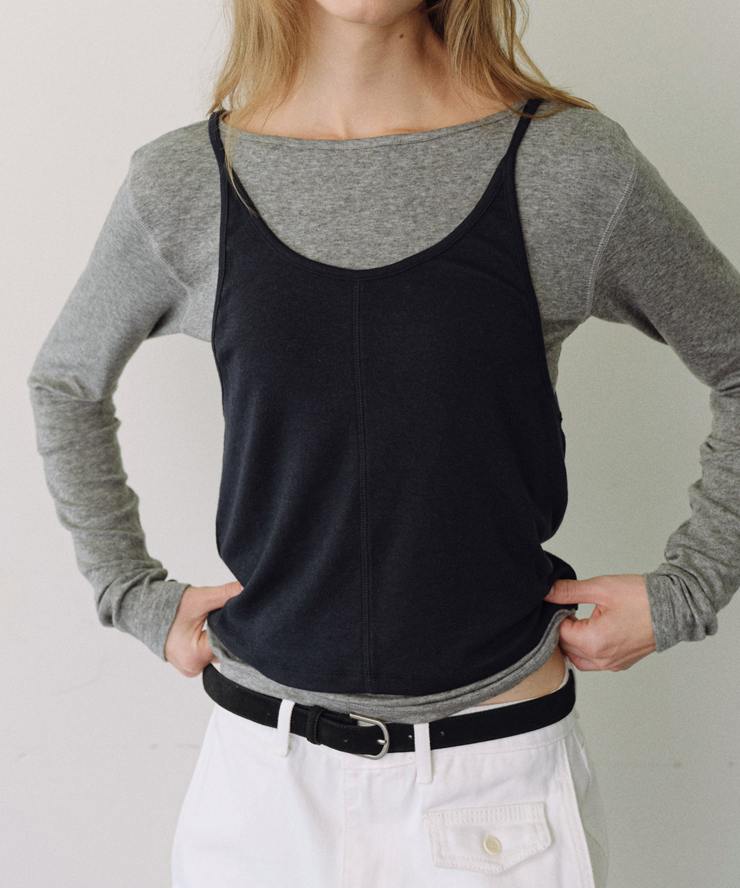 - 深めのアームホールとユニークなシェイプが、レイヤード時により一層の魅力を引き出します。