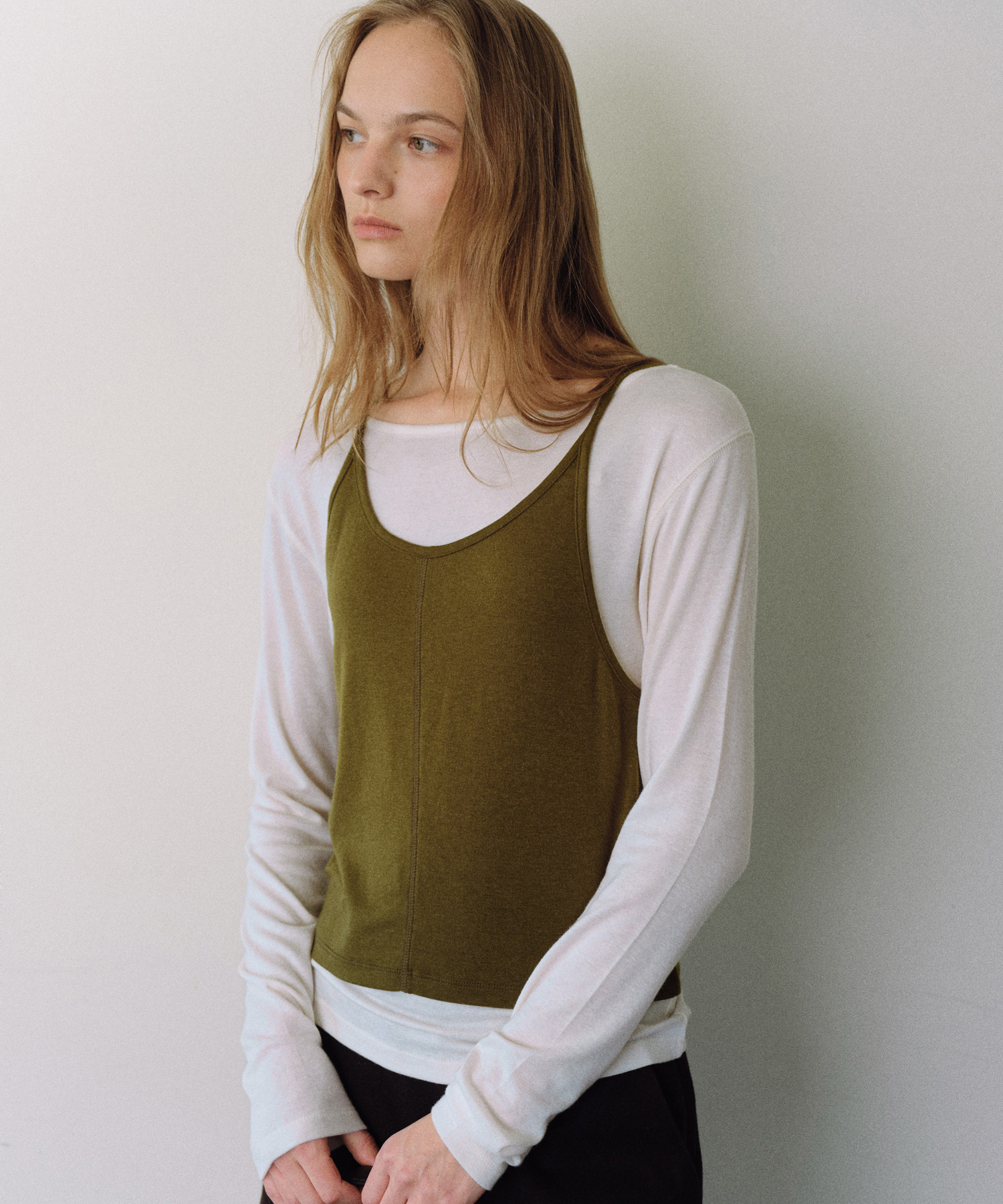 - セットのスリーブレスは、上品でミニマルなシルエットが特徴で、単品ではすっきりとした涼しげなムードを演出します。
