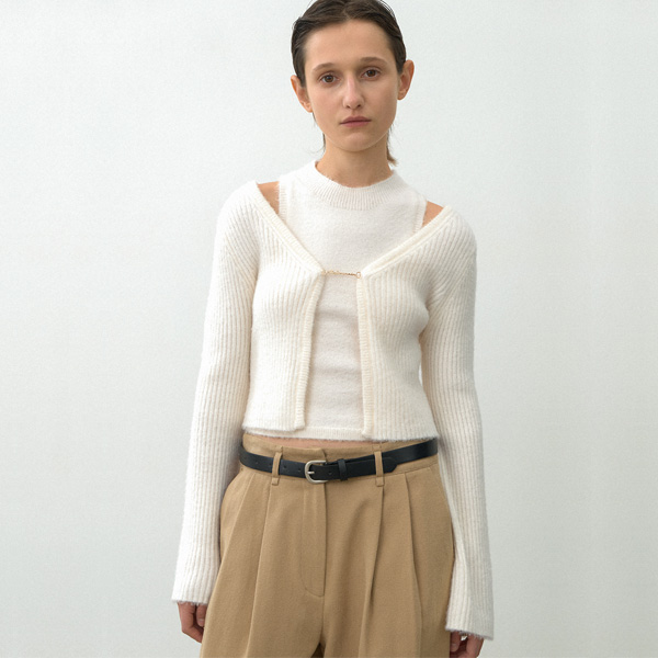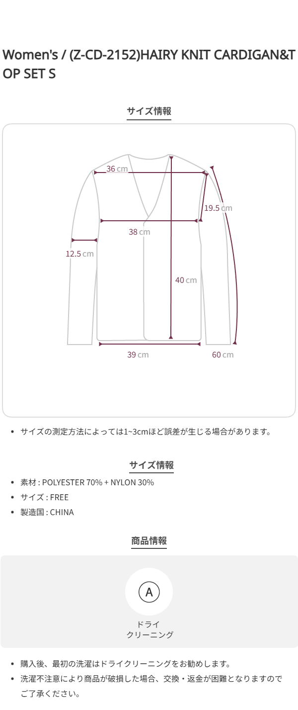 (Z-CD-2152)HAIRY KNIT CARDIGAN&TOP SET S