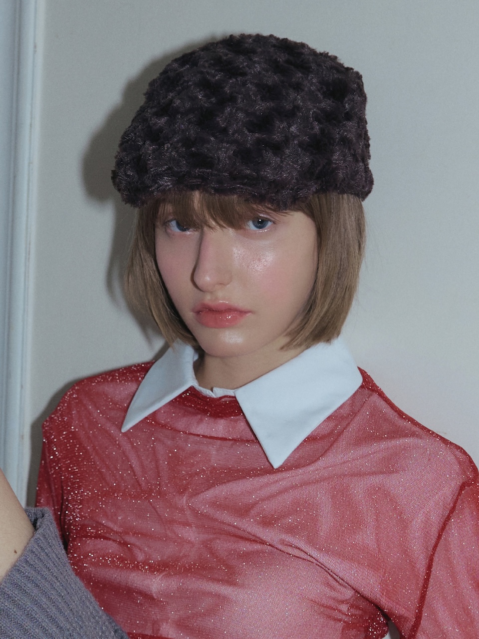 ROSE COIL FLAT CAP IN ESPRESSO