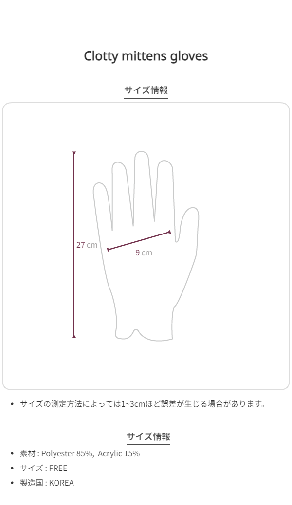 - ふんわりとした温かみのある質感が魅力のフリース素材の手袋です。