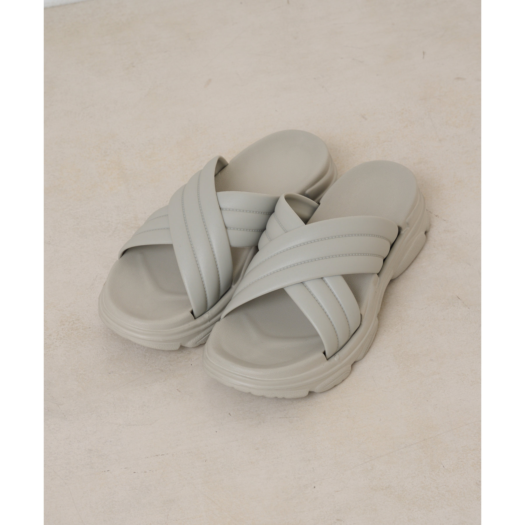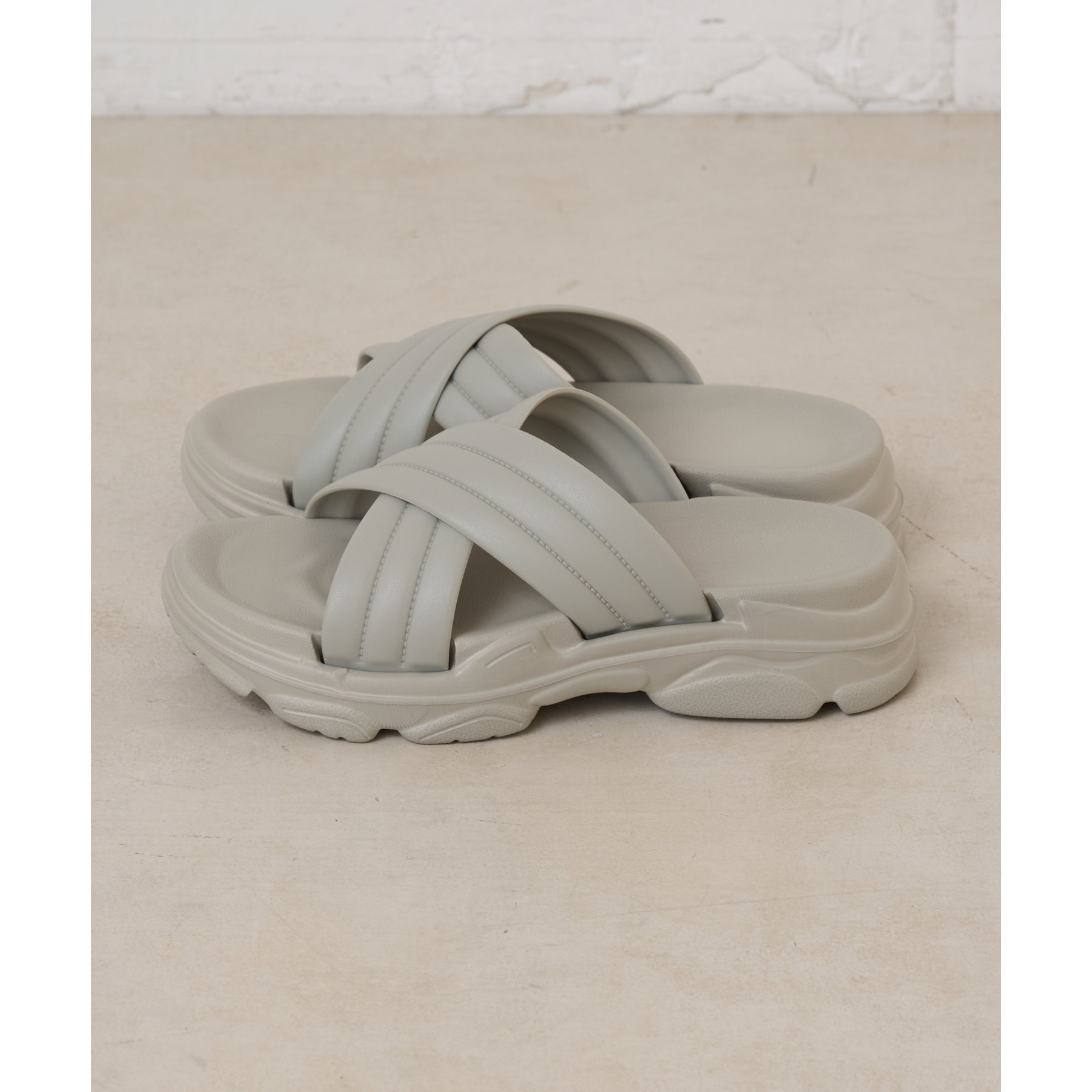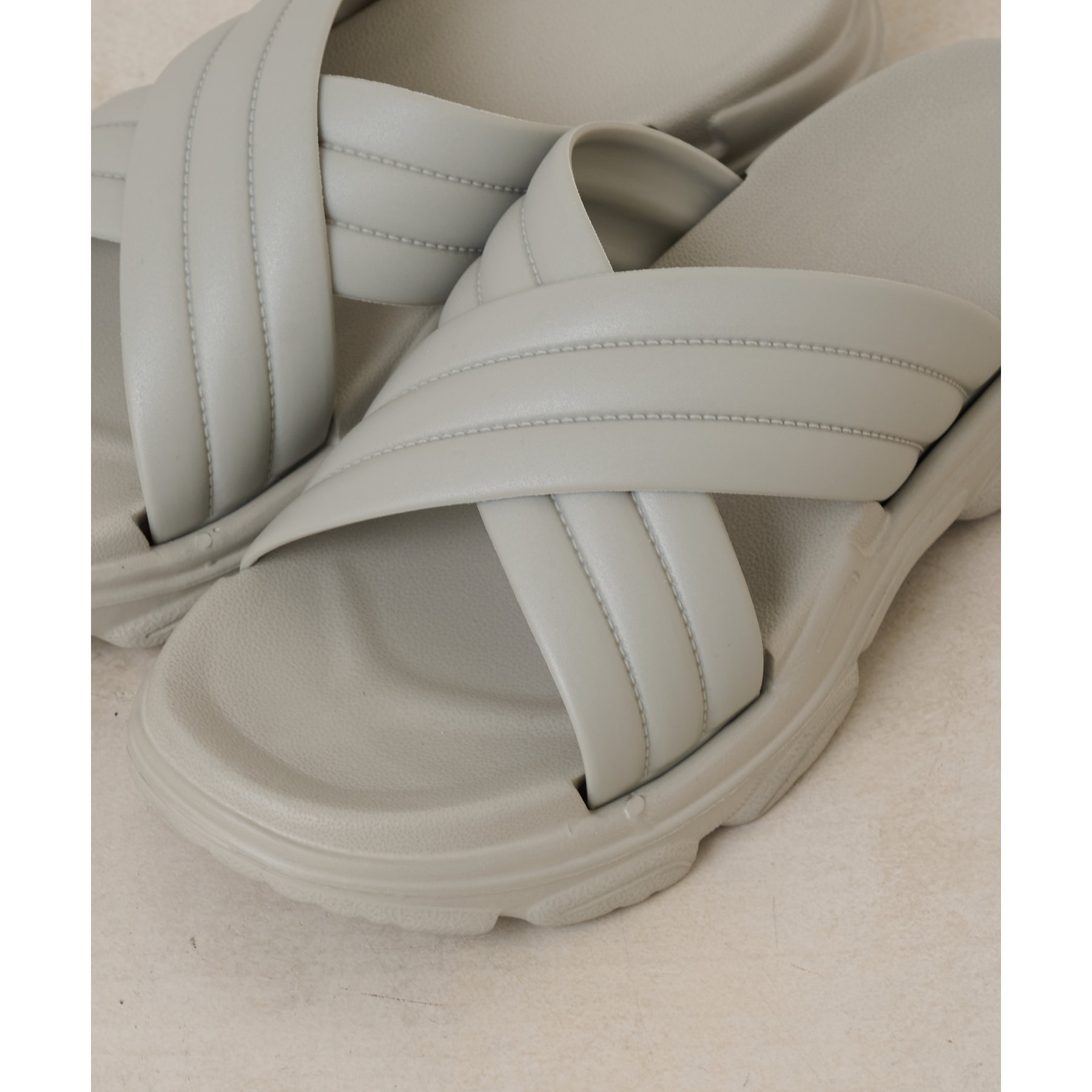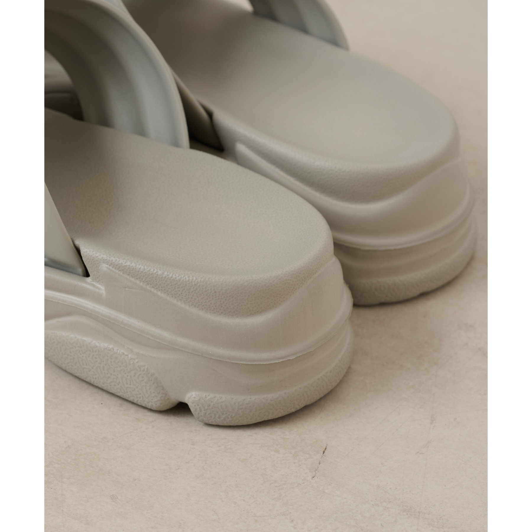 柔らかで弾力があるEVA素材なので、馴染みやすく気軽に履けます♪シンプルなデザインでありながらも厚底なので存在感もあり、履くだけでスタイルアップ効果も◎クロスデザインなので、履いた時に足をしっかりとホールドしてくれ安定感のある履き心地です。脱ぎ履きしやすいので、ちょっとしたお出掛けにもピッタリです。カジュアルにデニムと合わせたり、幅広いコーデに合わせやすい一足です。