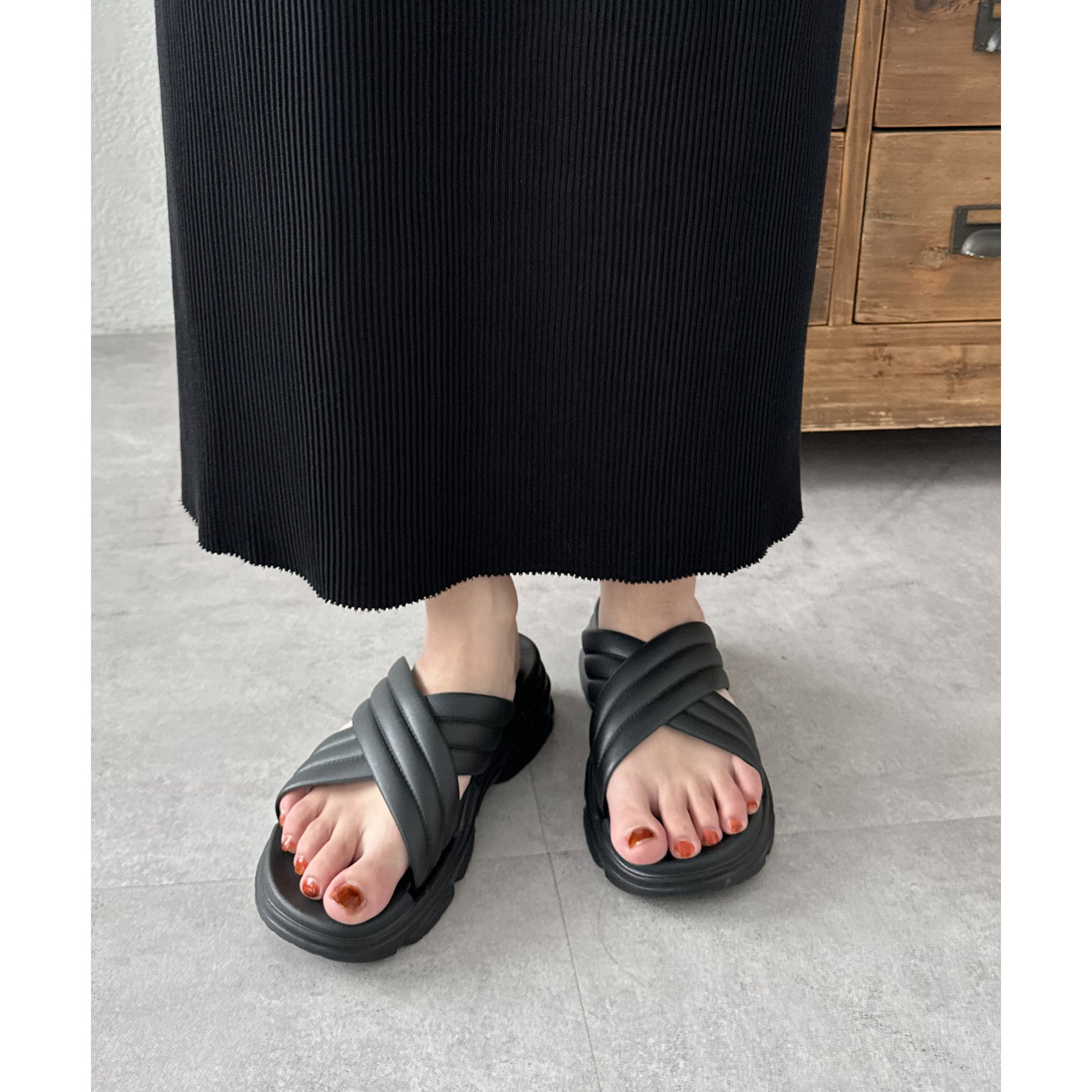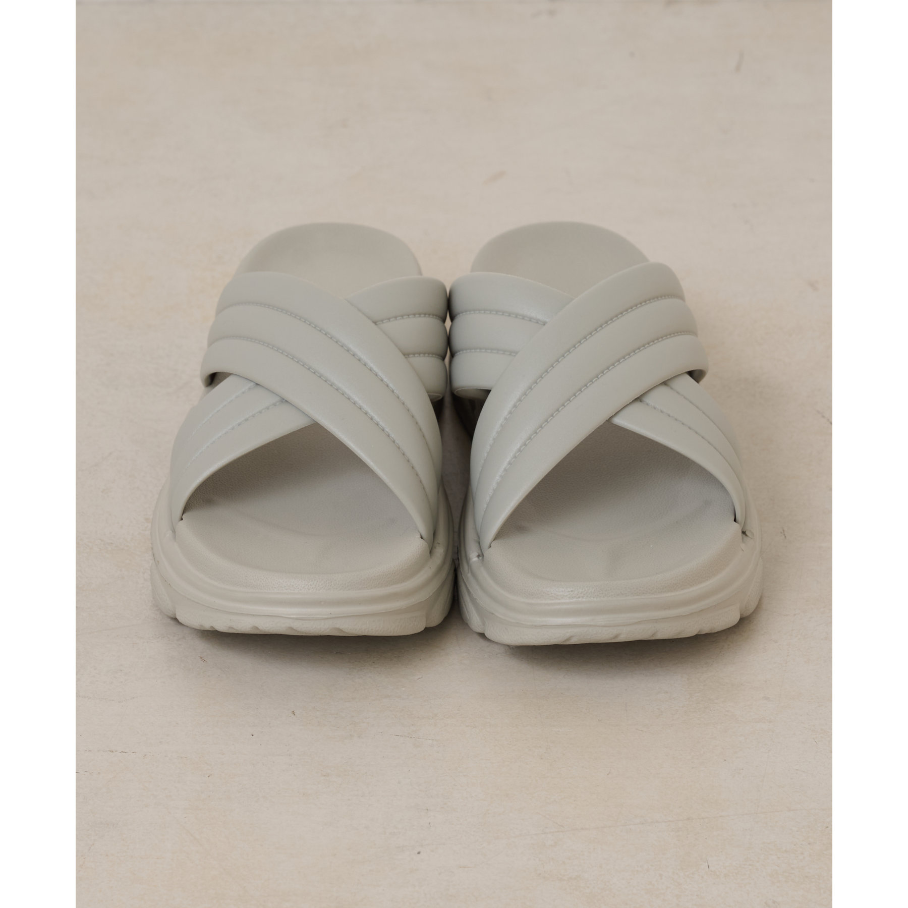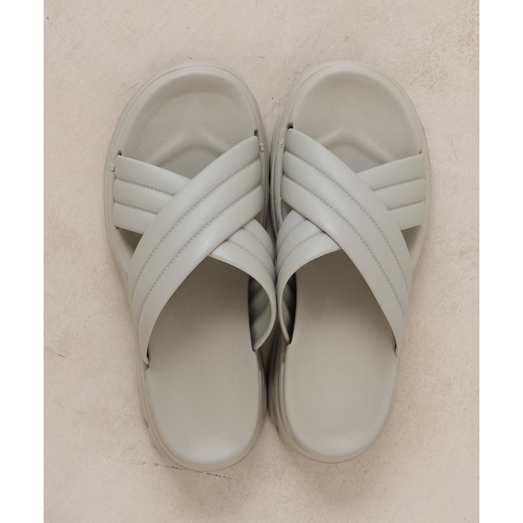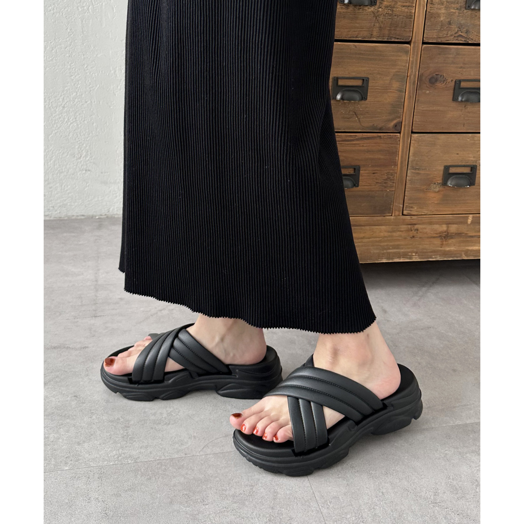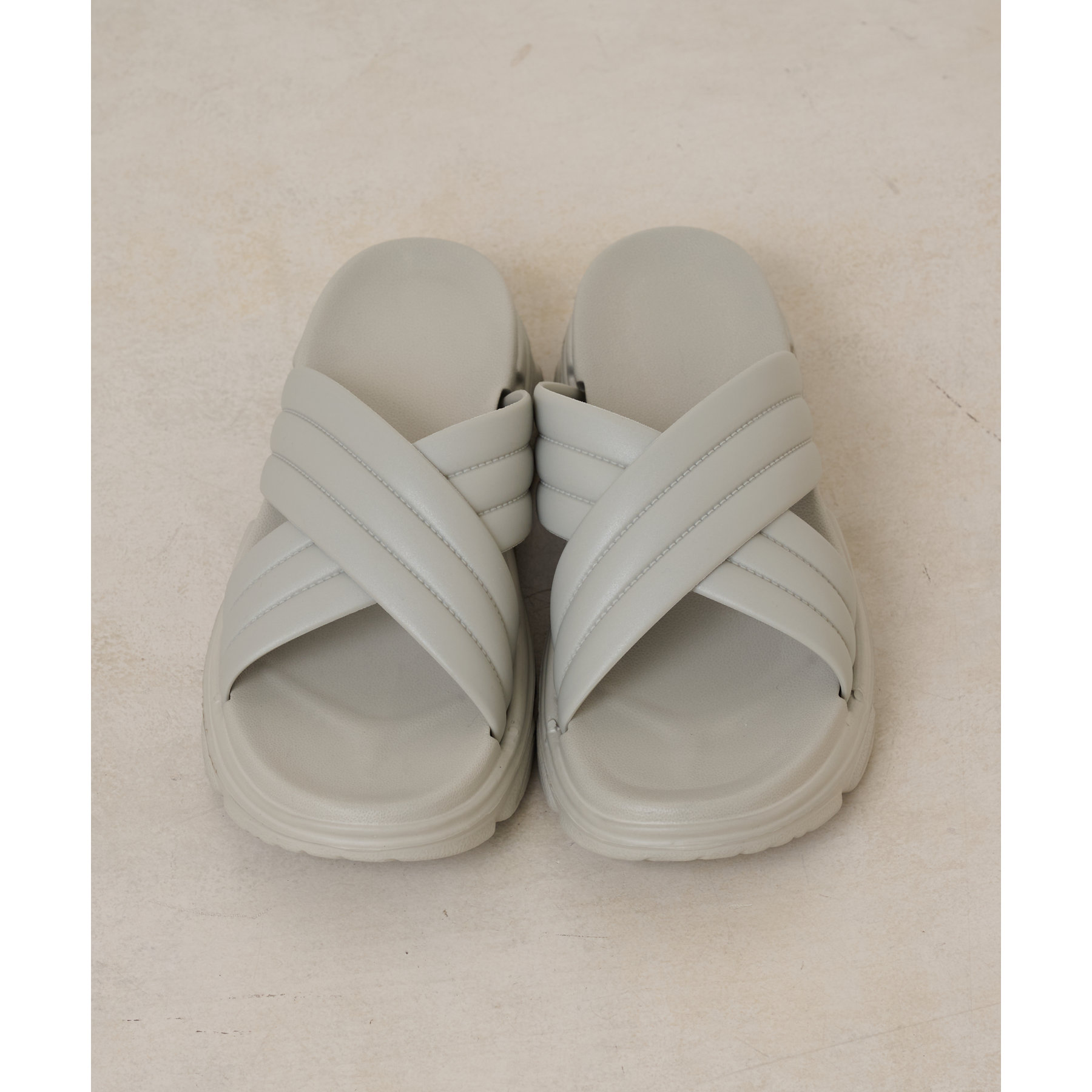 柔らかで弾力があるEVA素材なので、馴染みやすく気軽に履けます♪シンプルなデザインでありながらも厚底なので存在感もあり、履くだけでスタイルアップ効果も◎クロスデザインなので、履いた時に足をしっかりとホールドしてくれ安定感のある履き心地です。脱ぎ履きしやすいので、ちょっとしたお出掛けにもピッタリです。カジュアルにデニムと合わせたり、幅広いコーデに合わせやすい一足です。