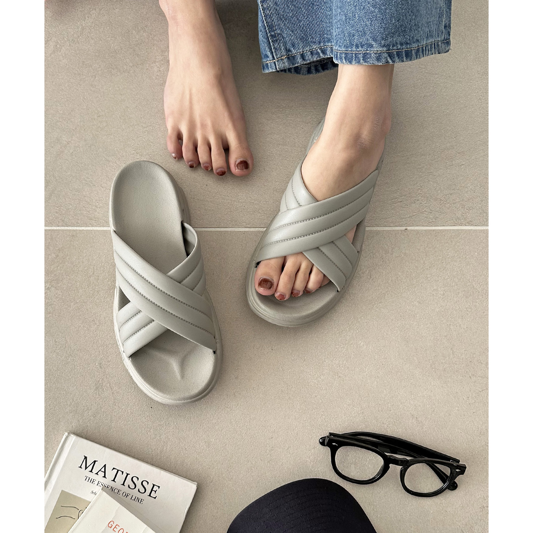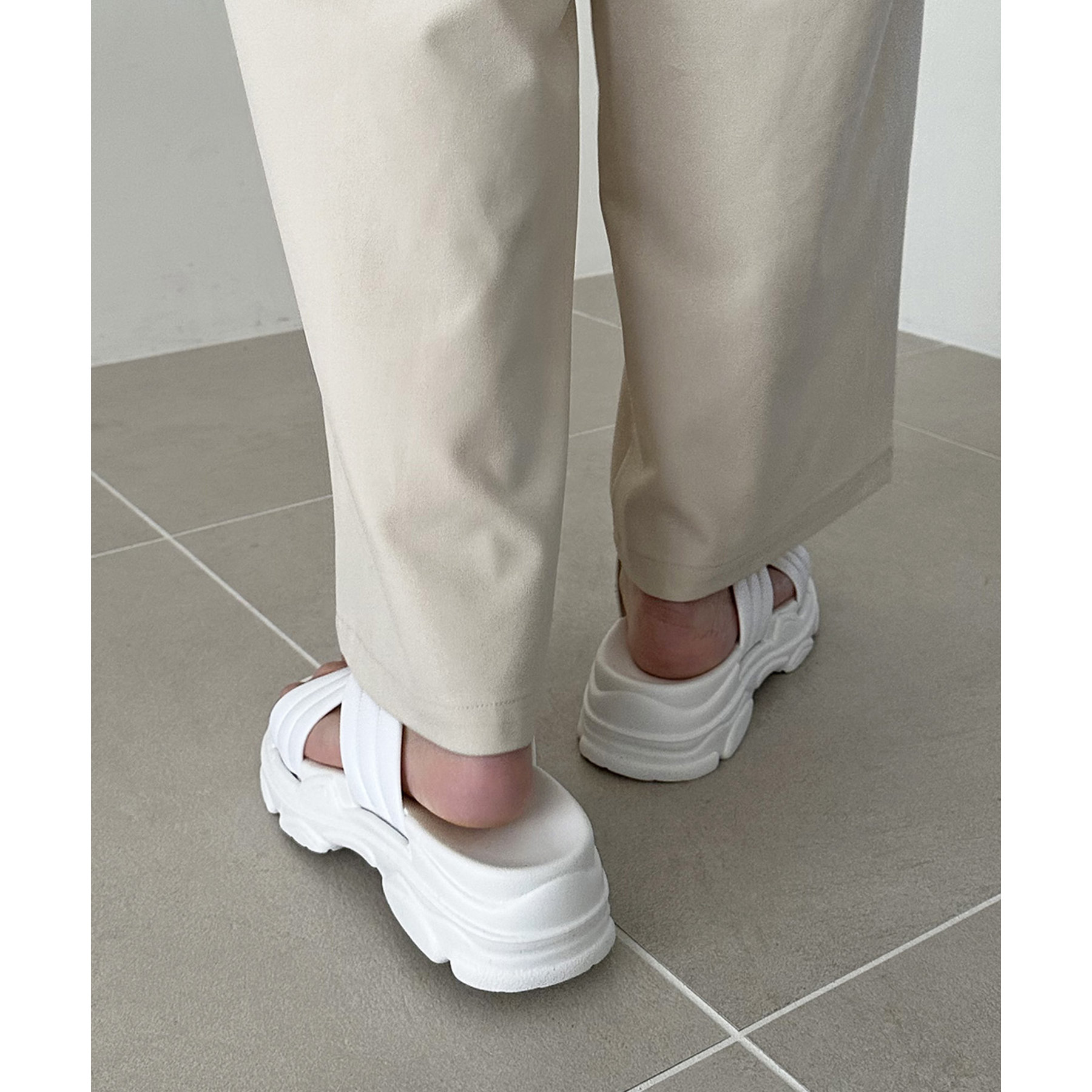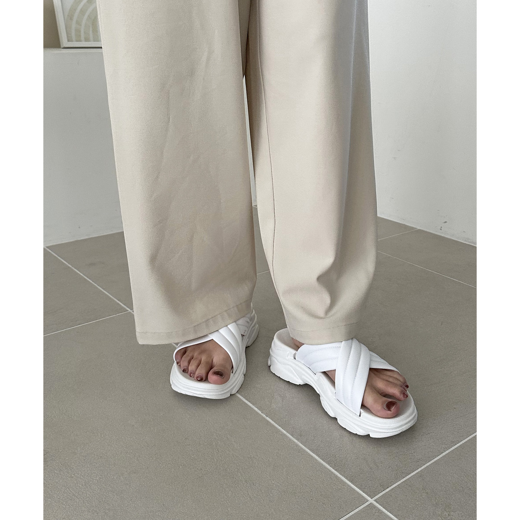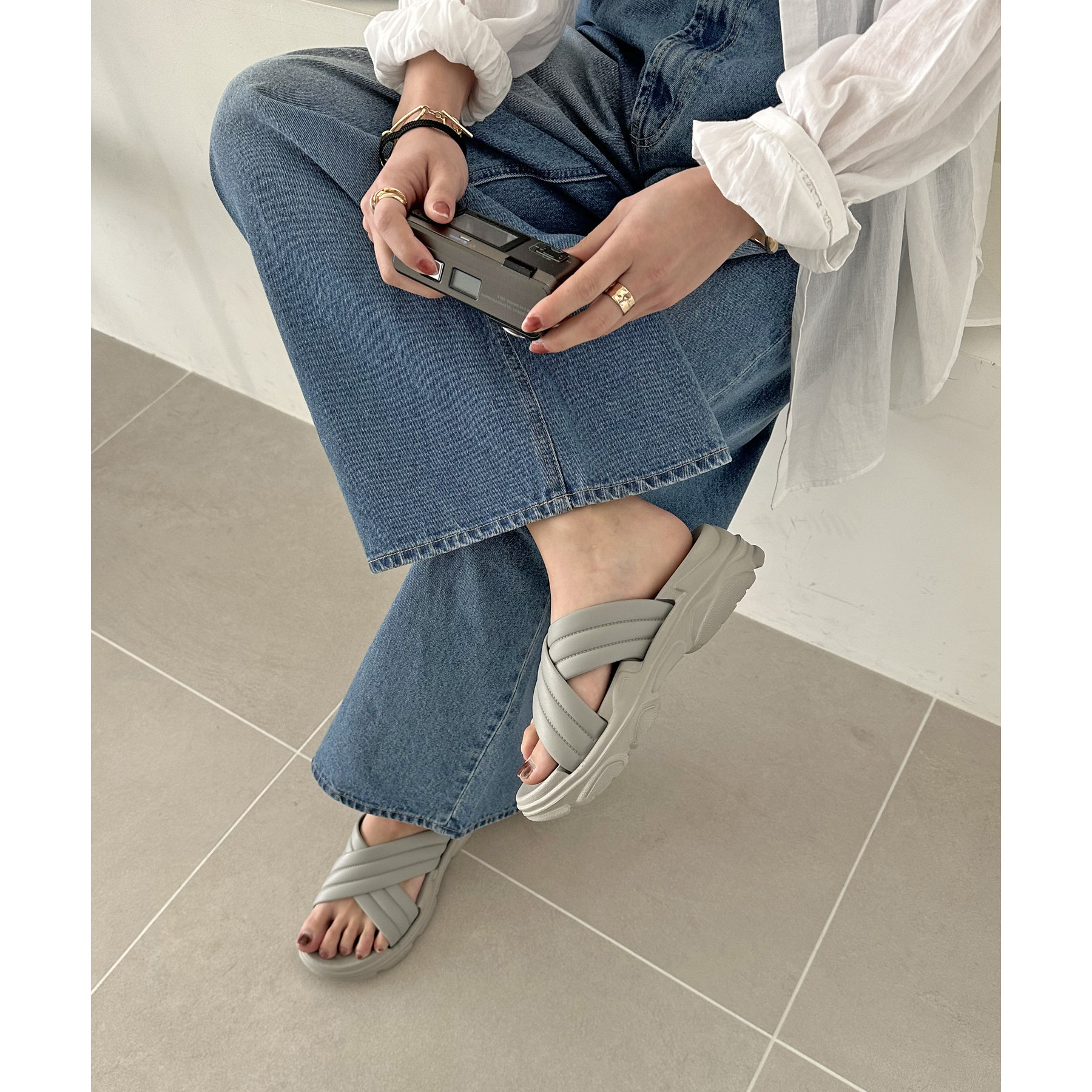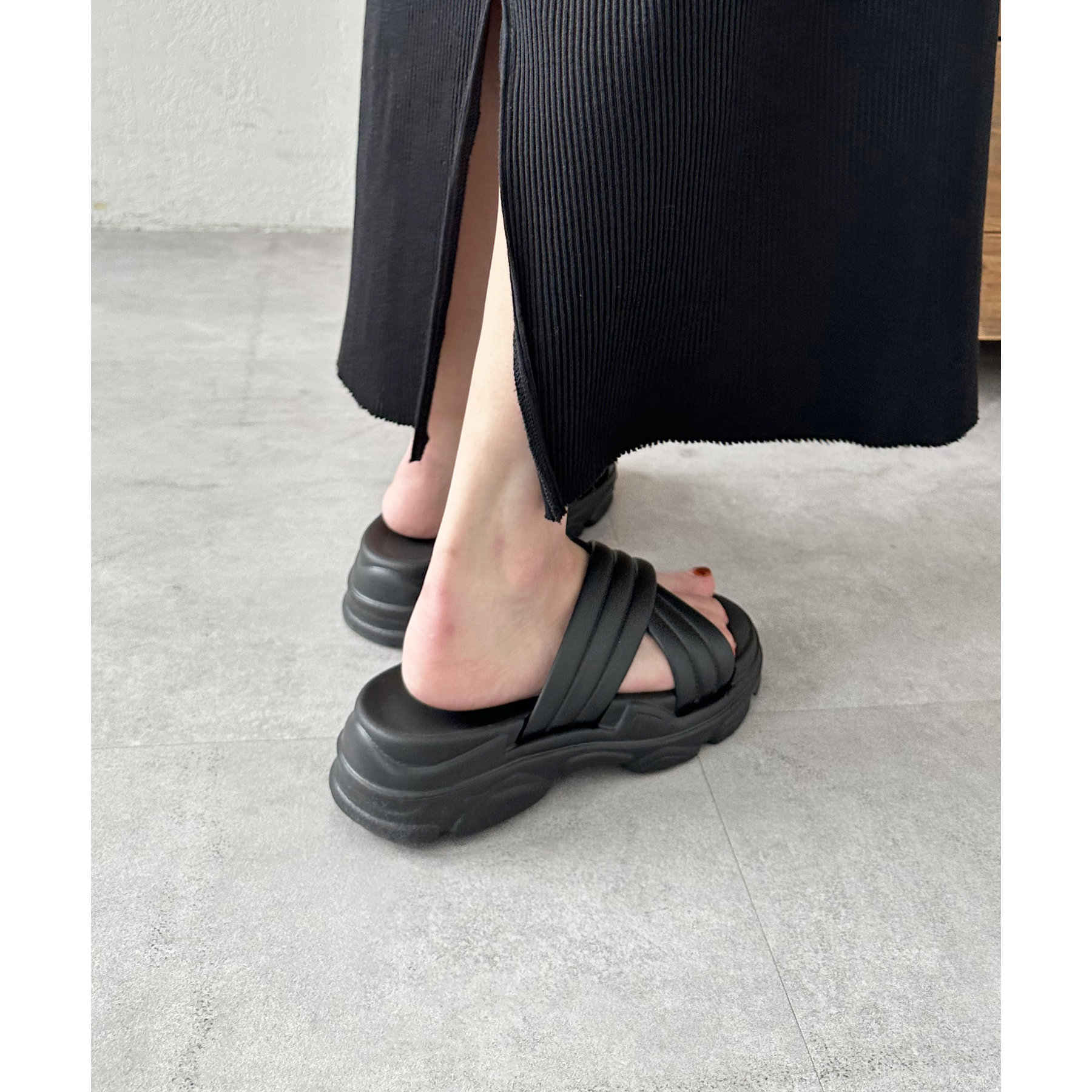 柔らかで弾力があるEVA素材なので、馴染みやすく気軽に履けます♪シンプルなデザインでありながらも厚底なので存在感もあり、履くだけでスタイルアップ効果も◎クロスデザインなので、履いた時に足をしっかりとホールドしてくれ安定感のある履き心地です。脱ぎ履きしやすいので、ちょっとしたお出掛けにもピッタリです。カジュアルにデニムと合わせたり、幅広いコーデに合わせやすい一足です。