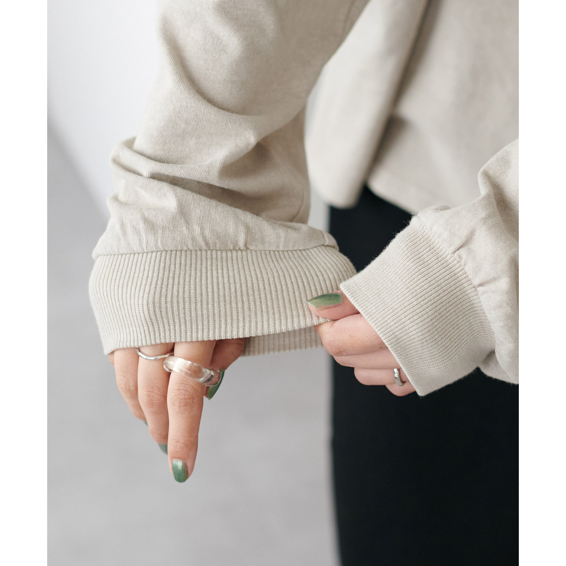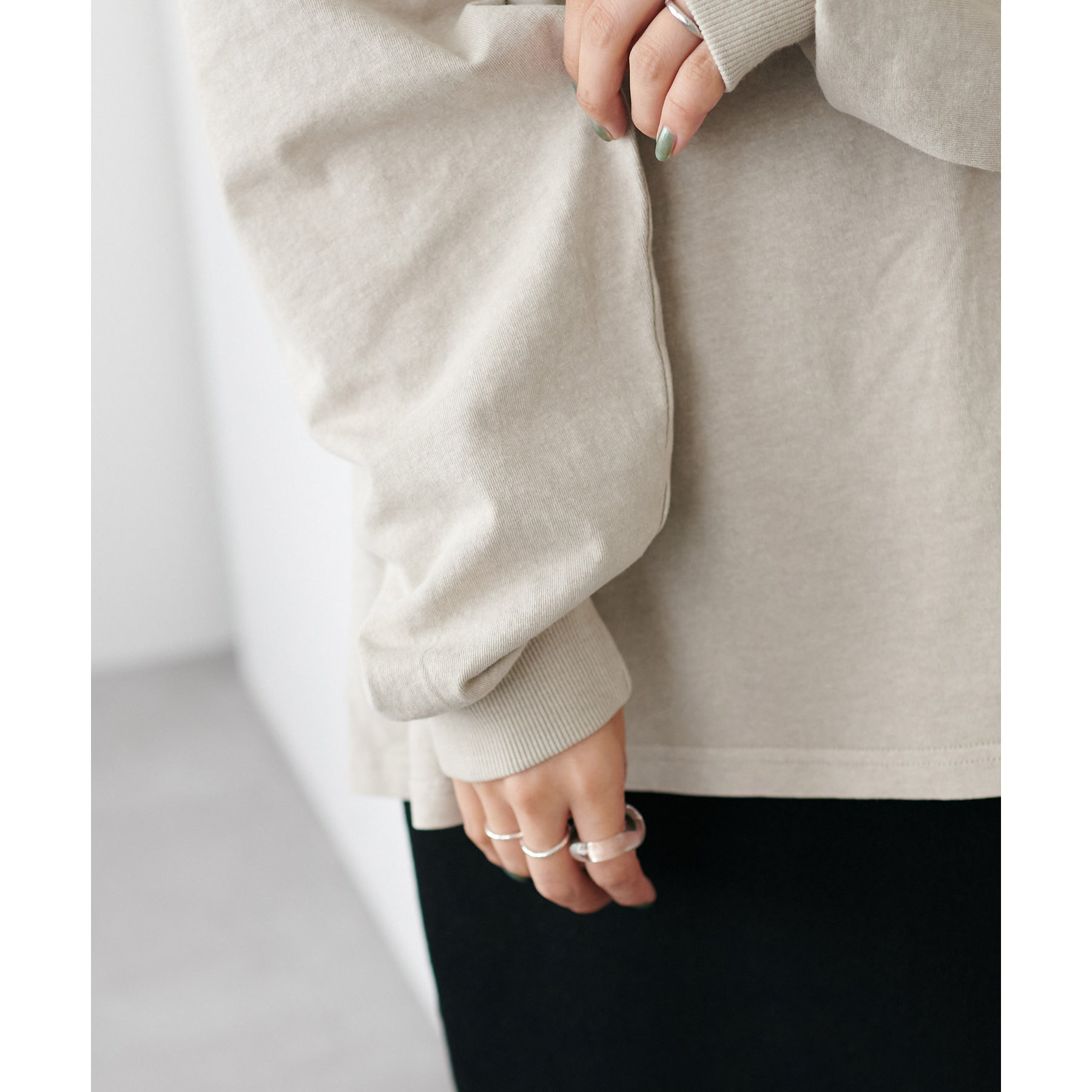 袖口はしリブ仕様でメリハリをプラスし、袖をまくっても落ちにくくなっています。