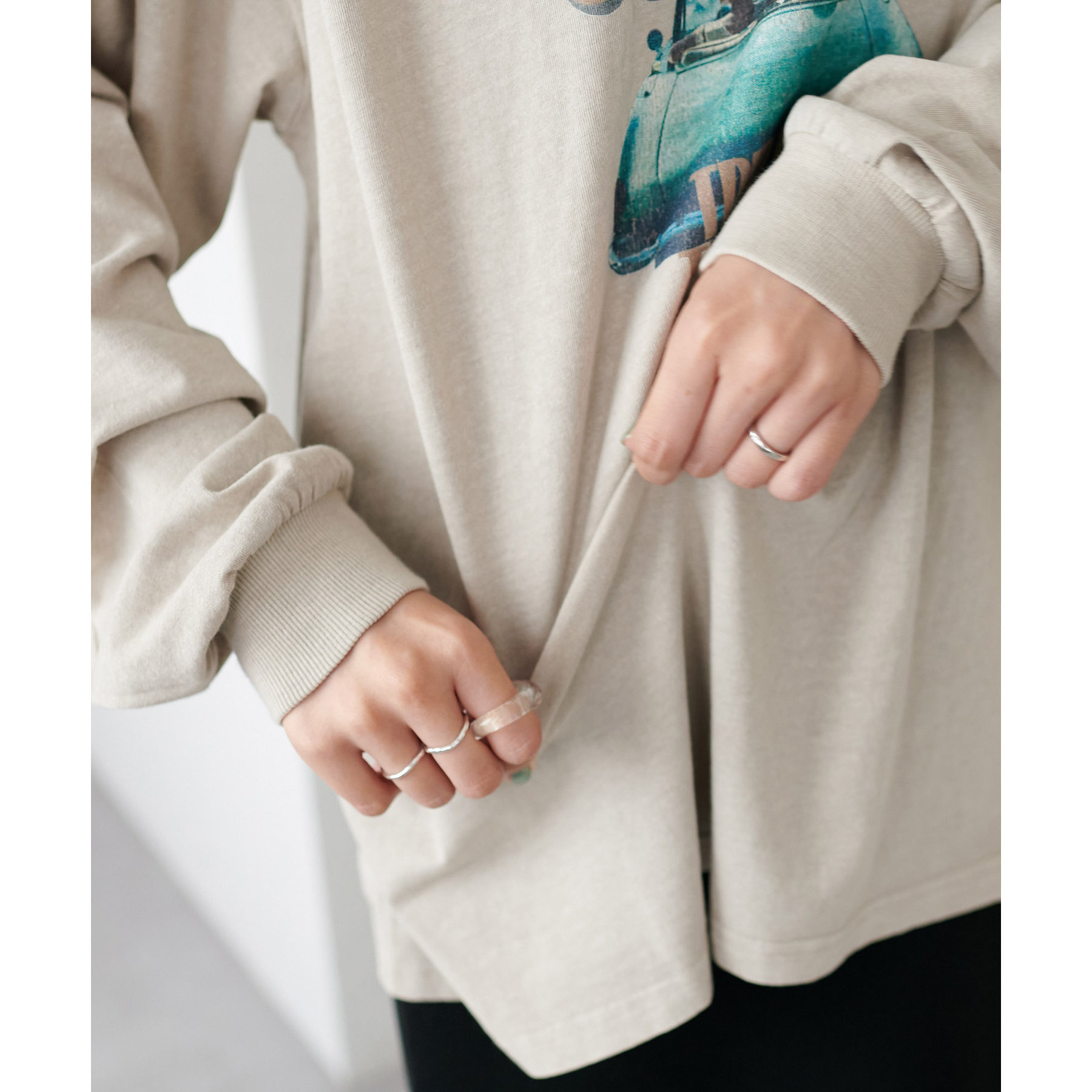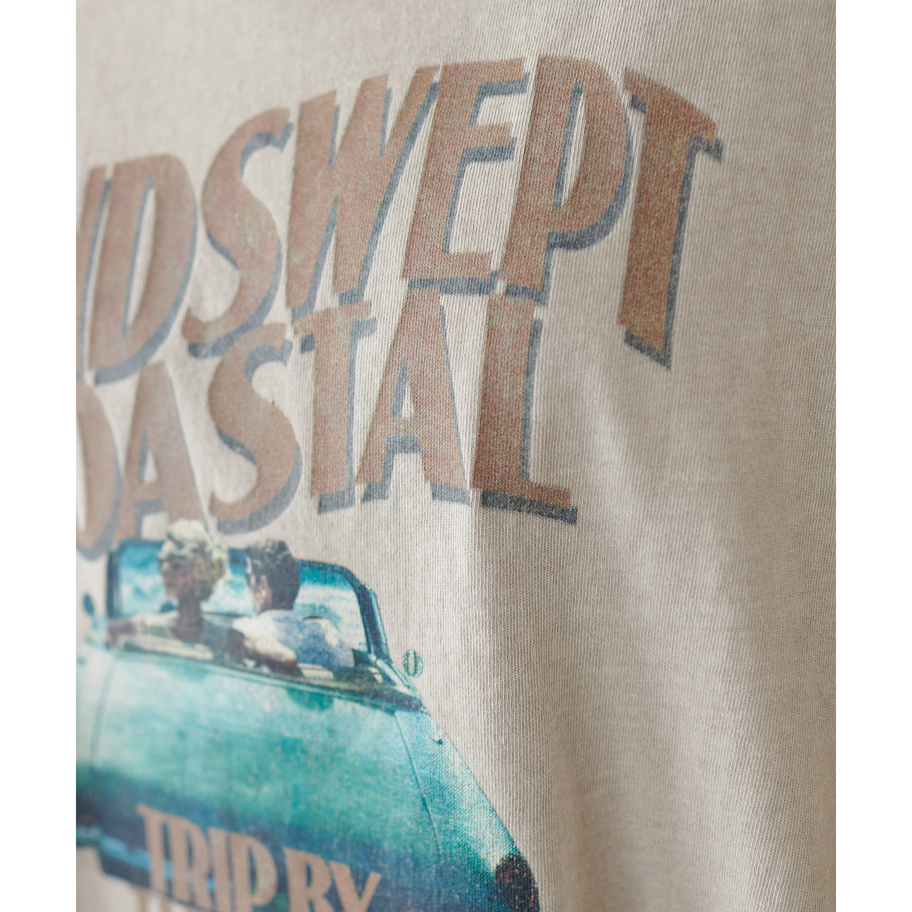 もともと擦れたプリントの上からピグメント加工を施すことで、さらにヴィンテージ感をアップ!