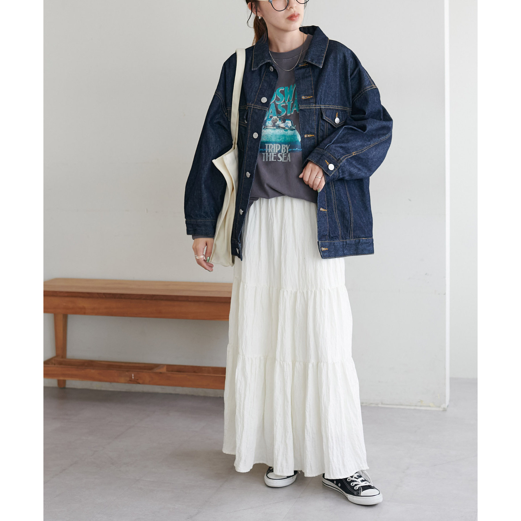 デニム合わせはもちろん、スカートと合わせた大人カジュアルのコーデもおすすめ!