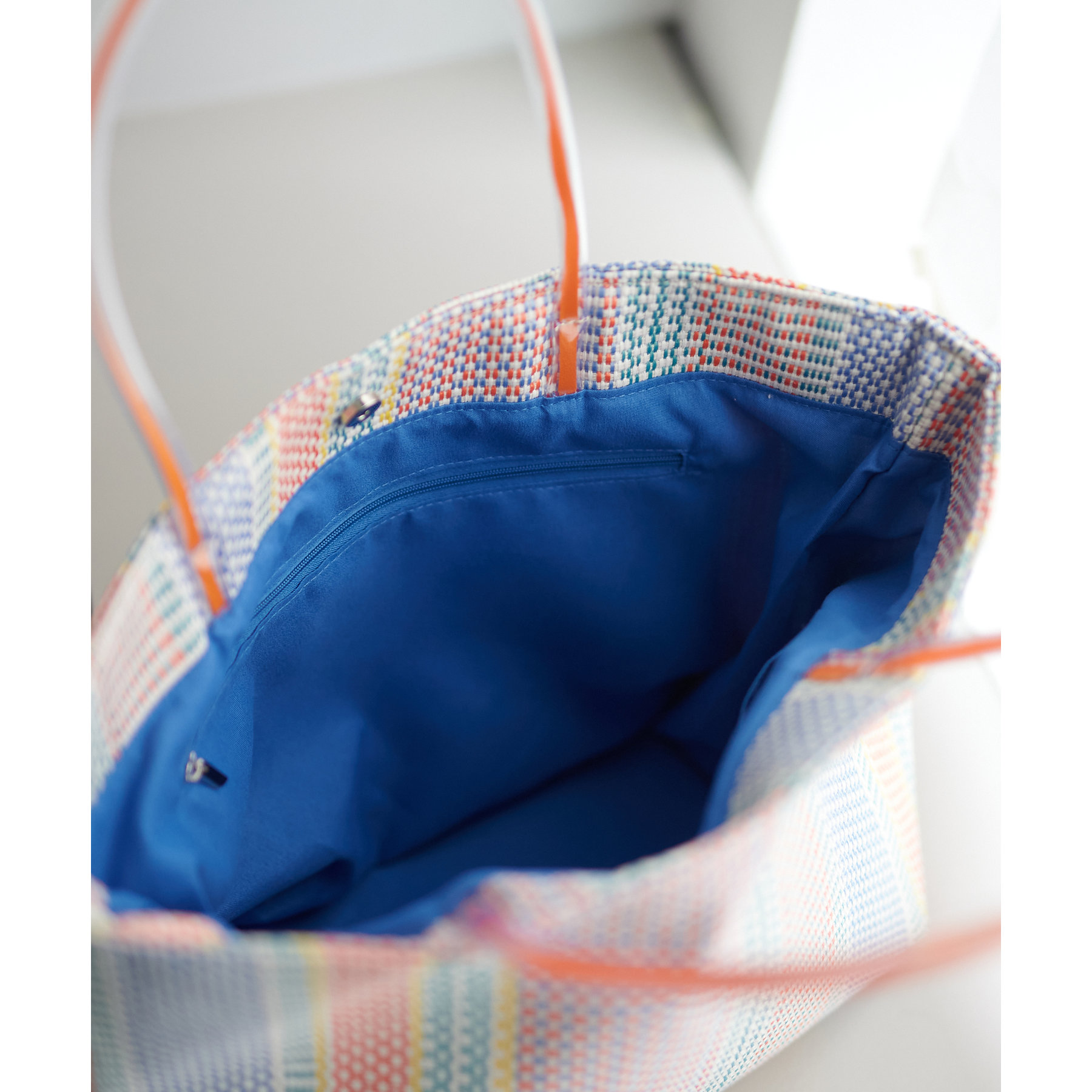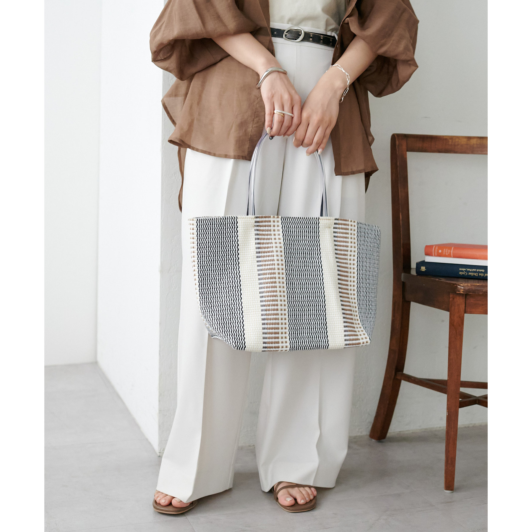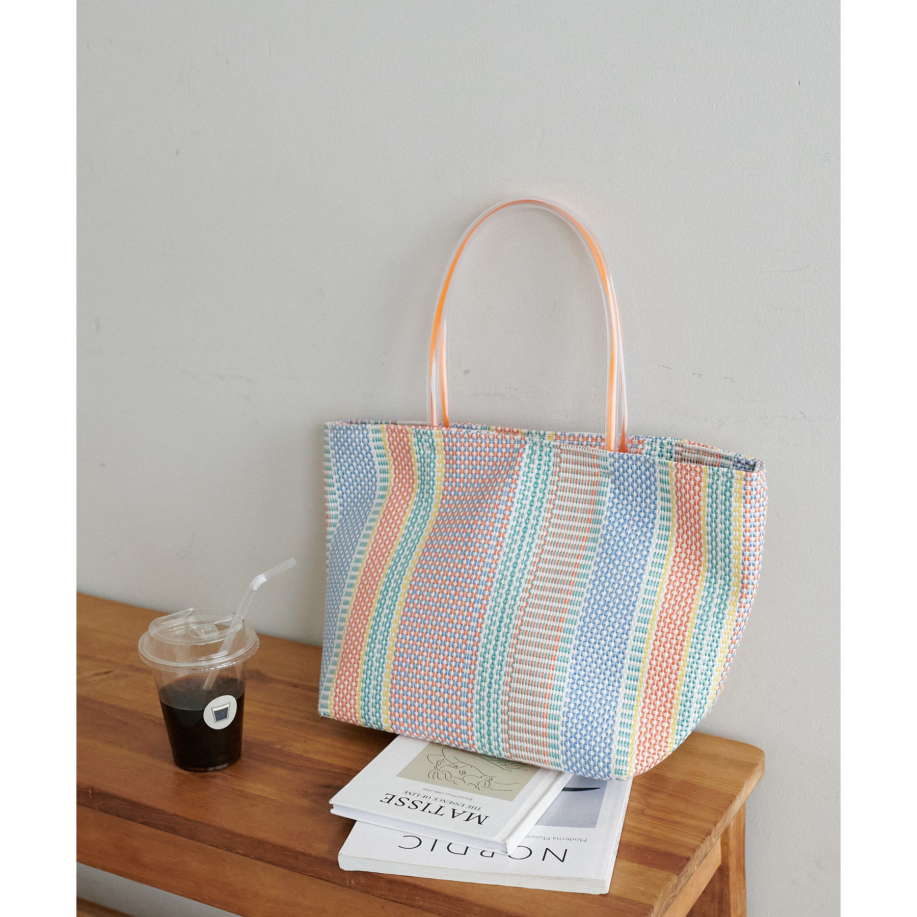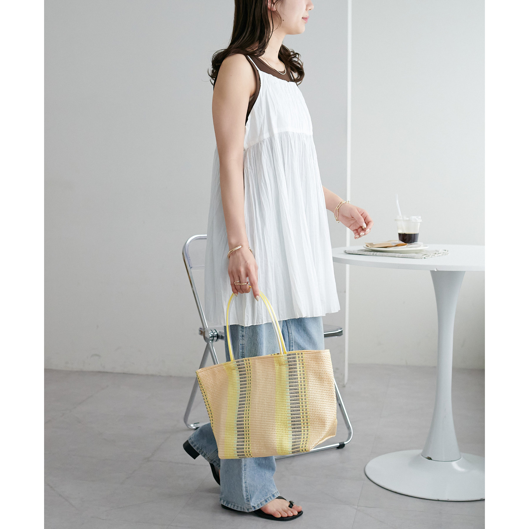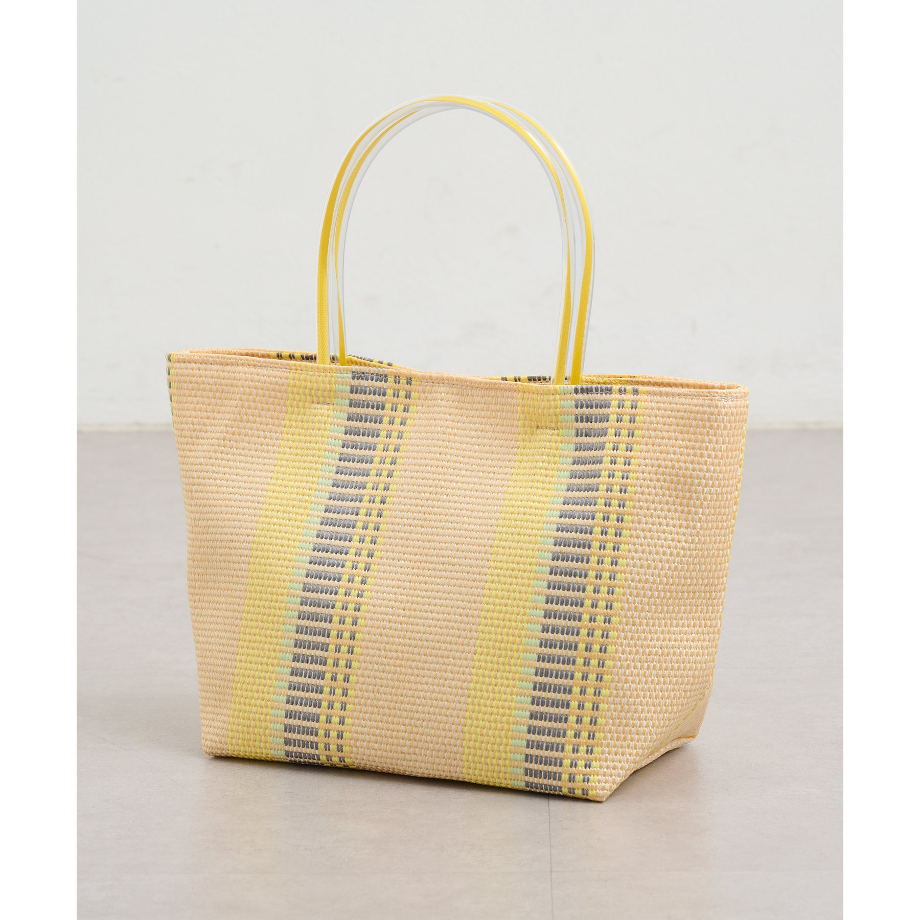 夏らしい素材のチューブハンドルストライプトートバッグ。
