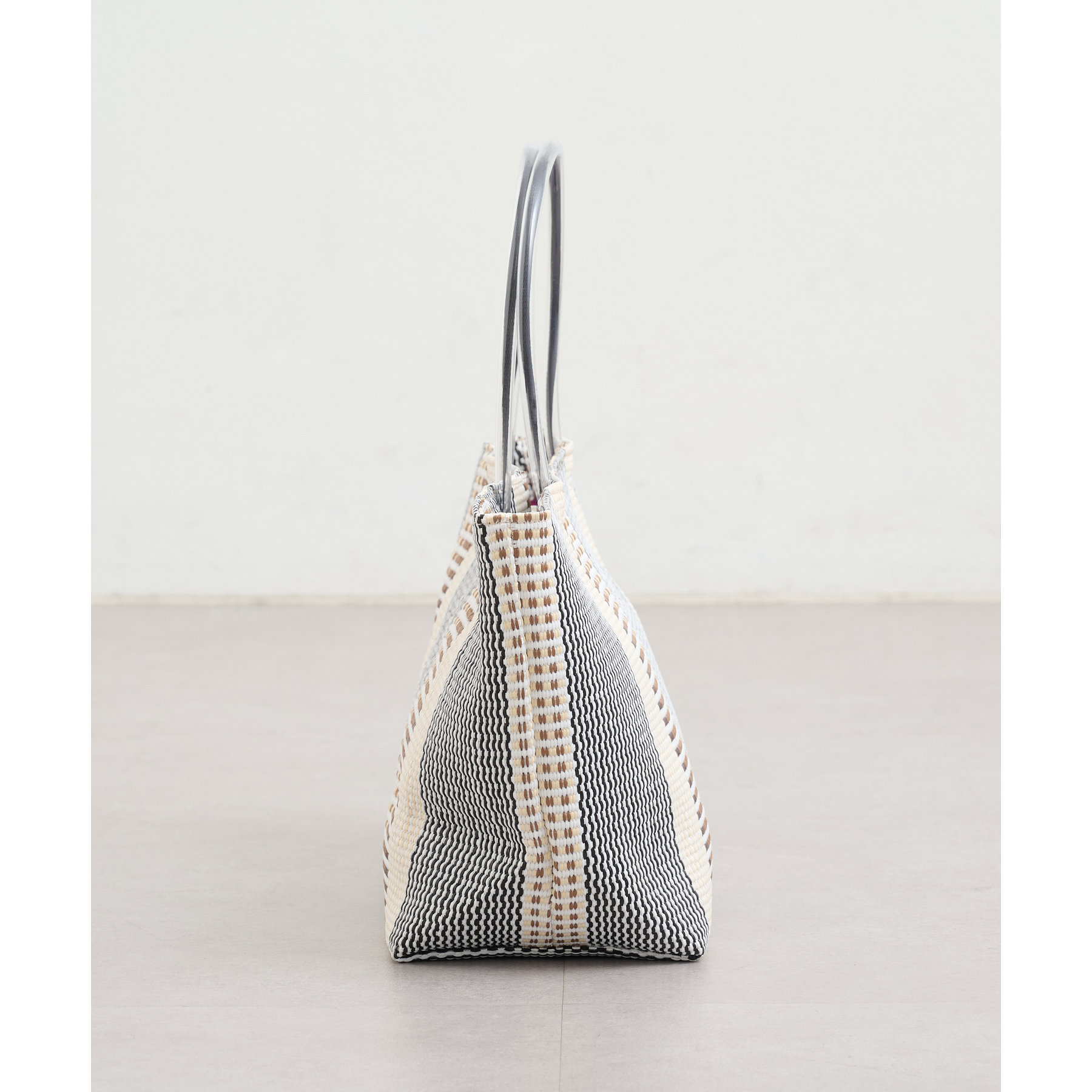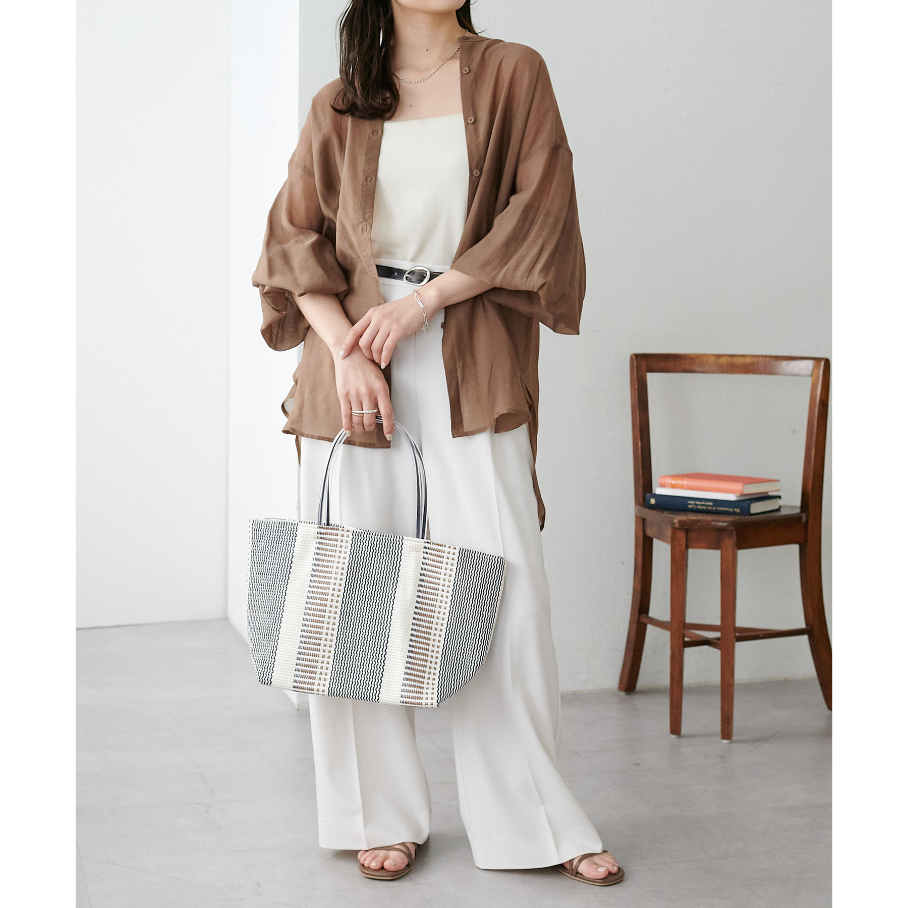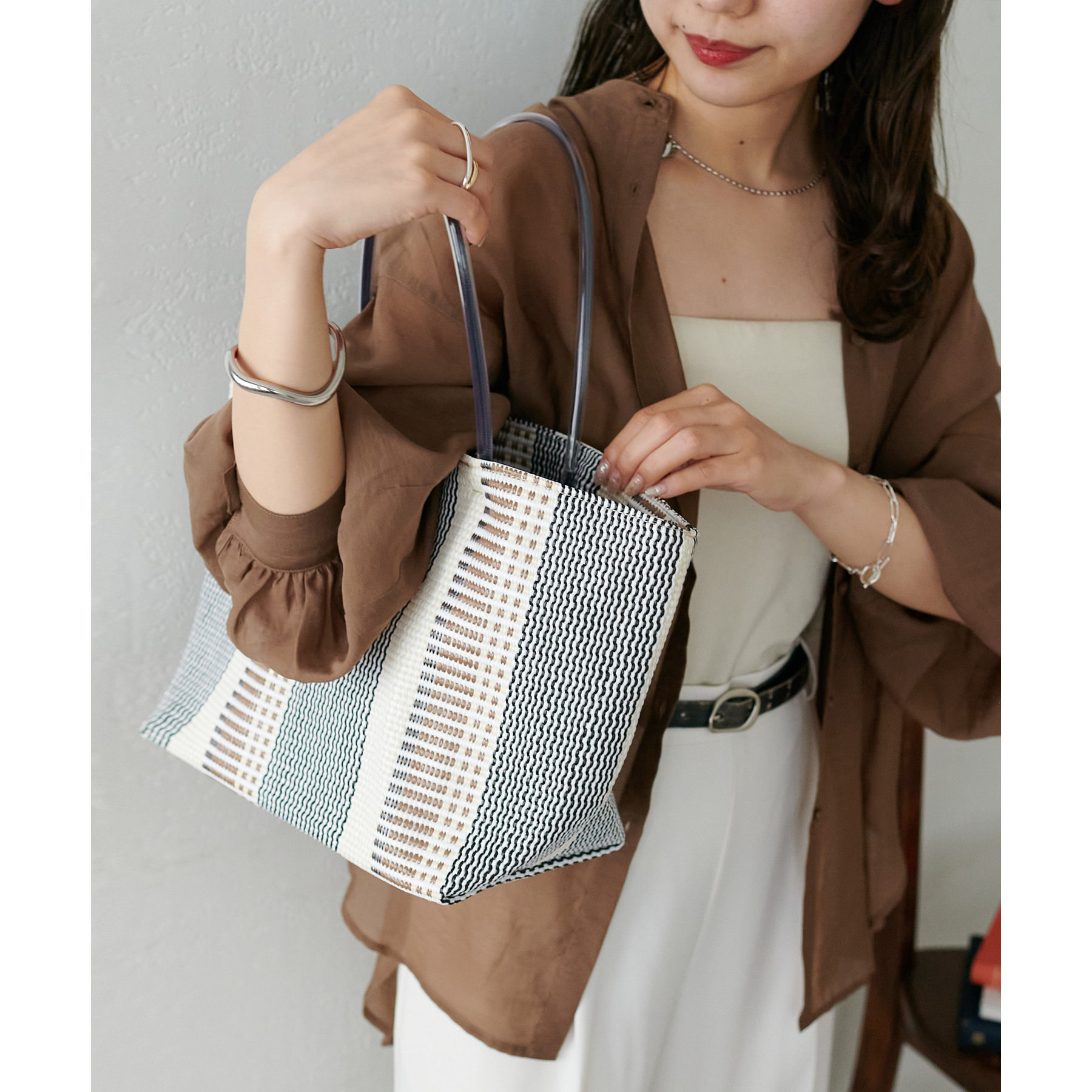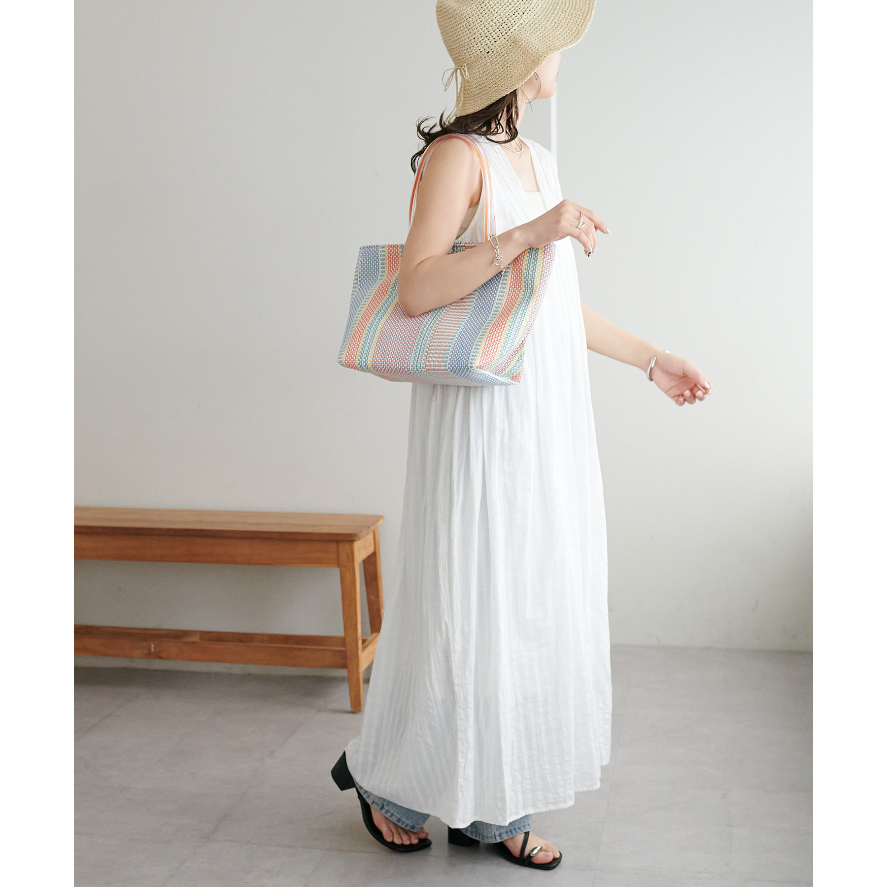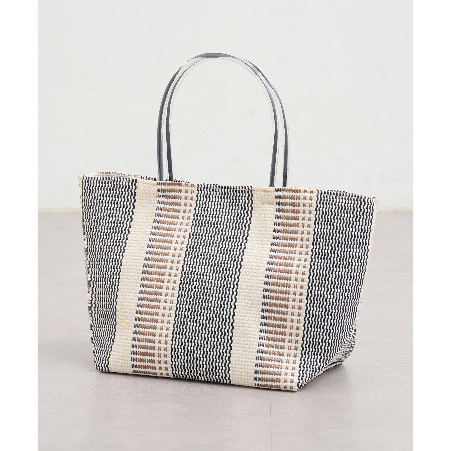 夏らしい素材のチューブハンドルストライプトートバッグ。