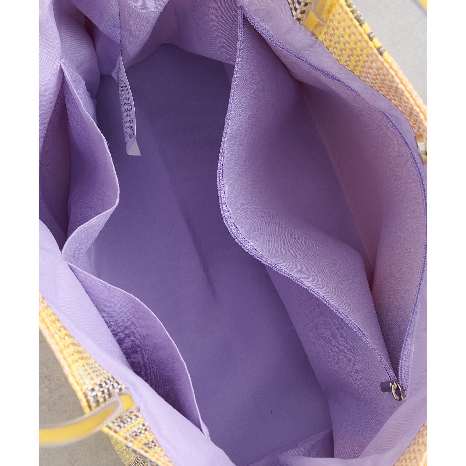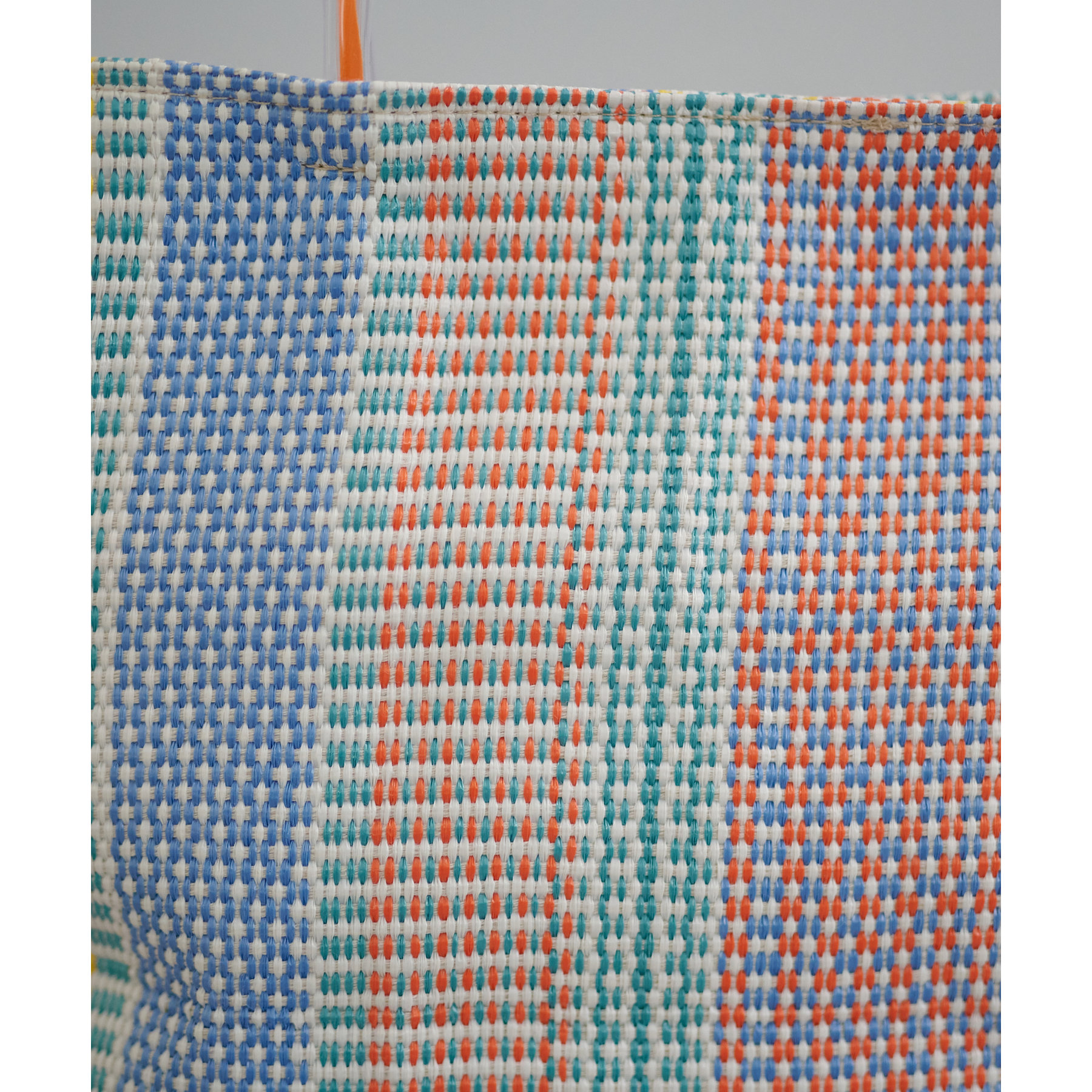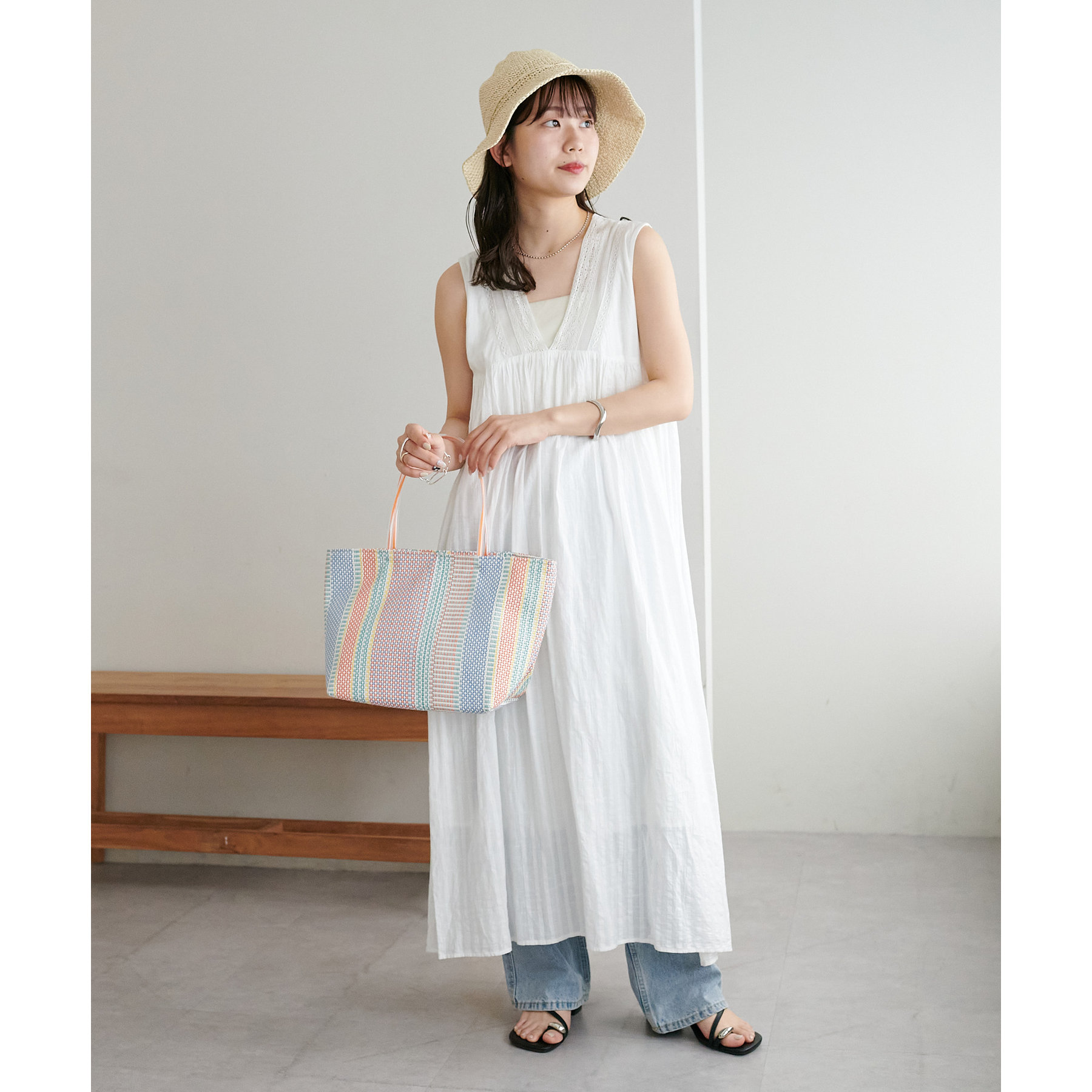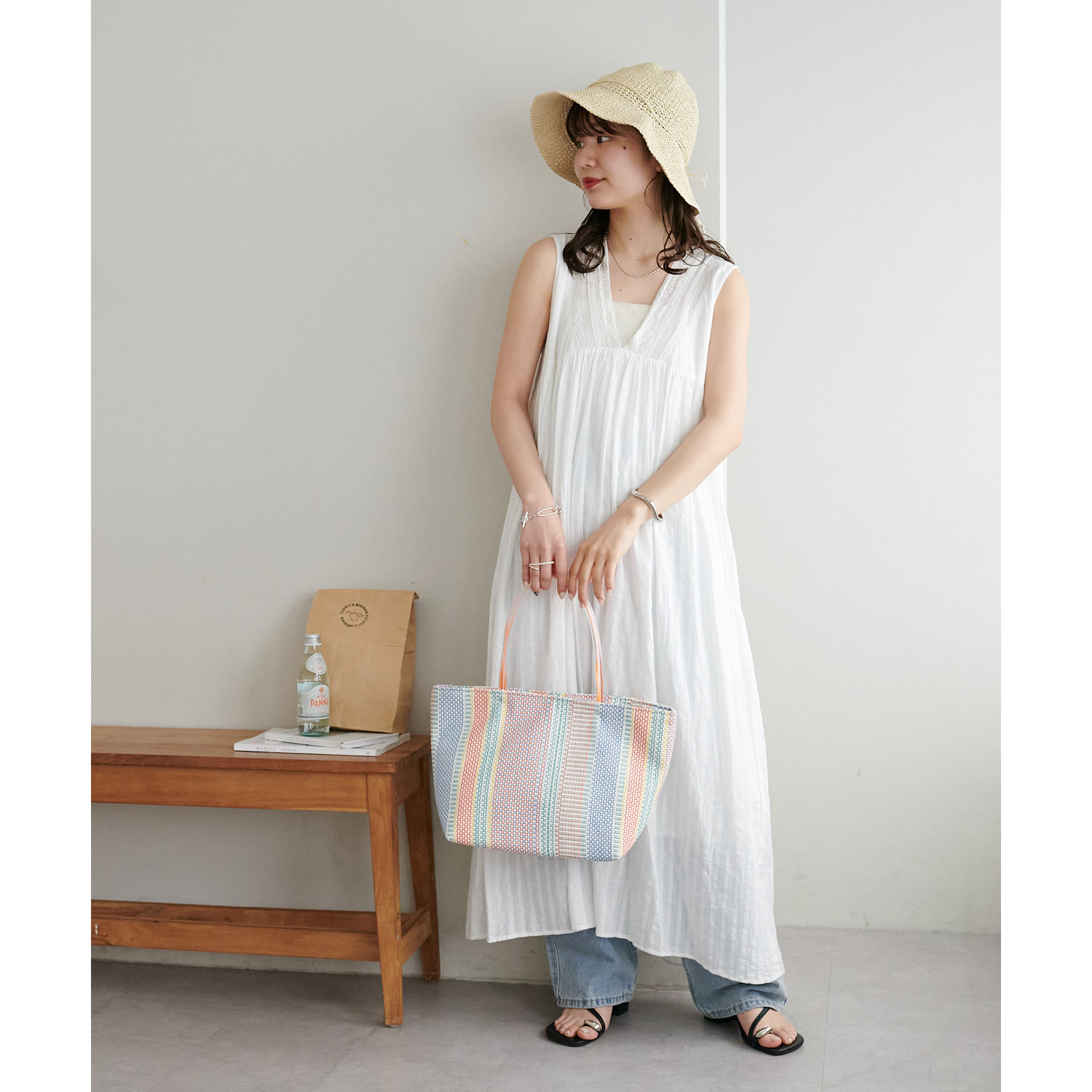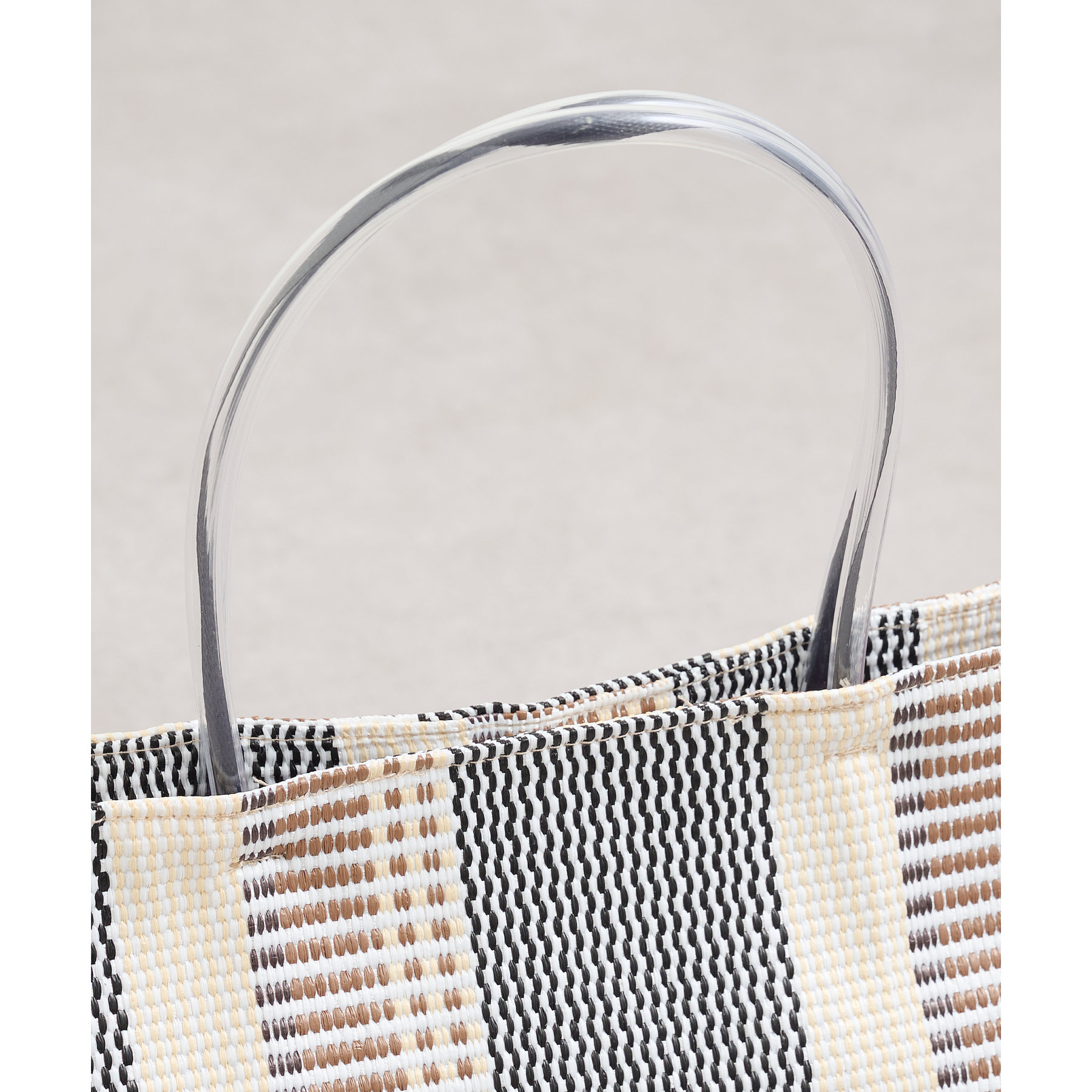 夏らしい素材のチューブハンドルストライプトートバッグ。