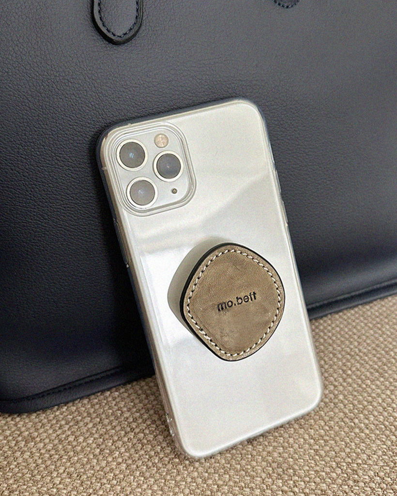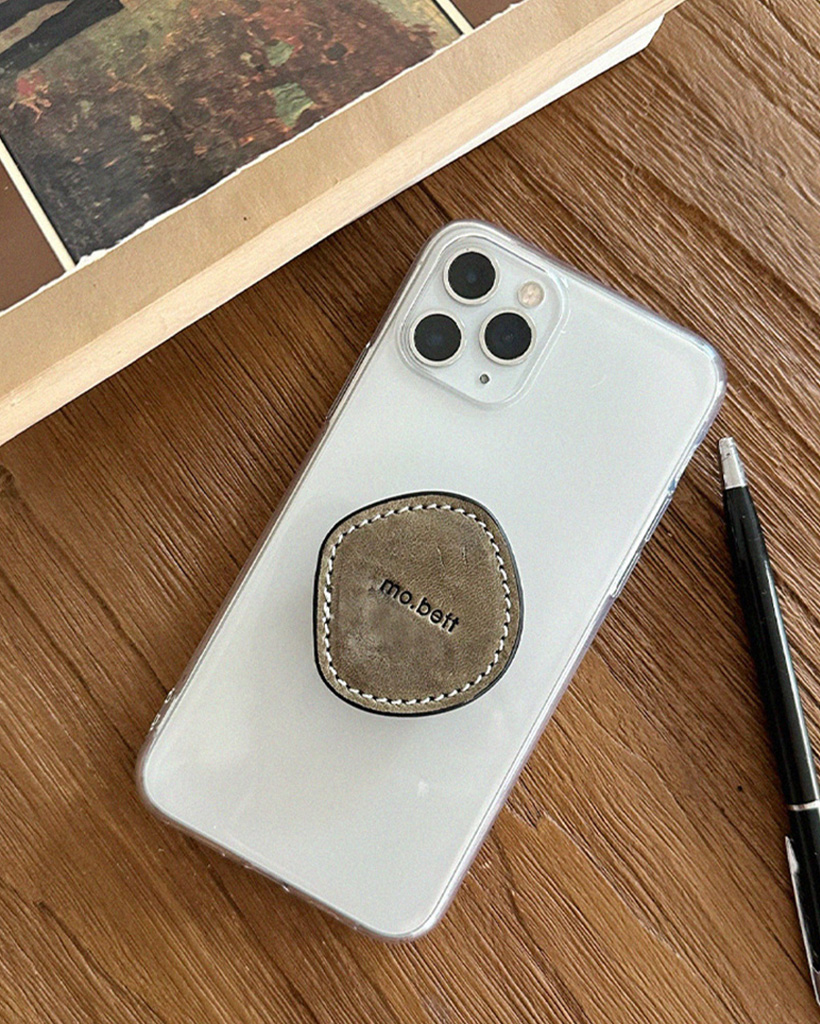 丸い小石からインスピレーションを受けたデザインのフォン・グリップ。