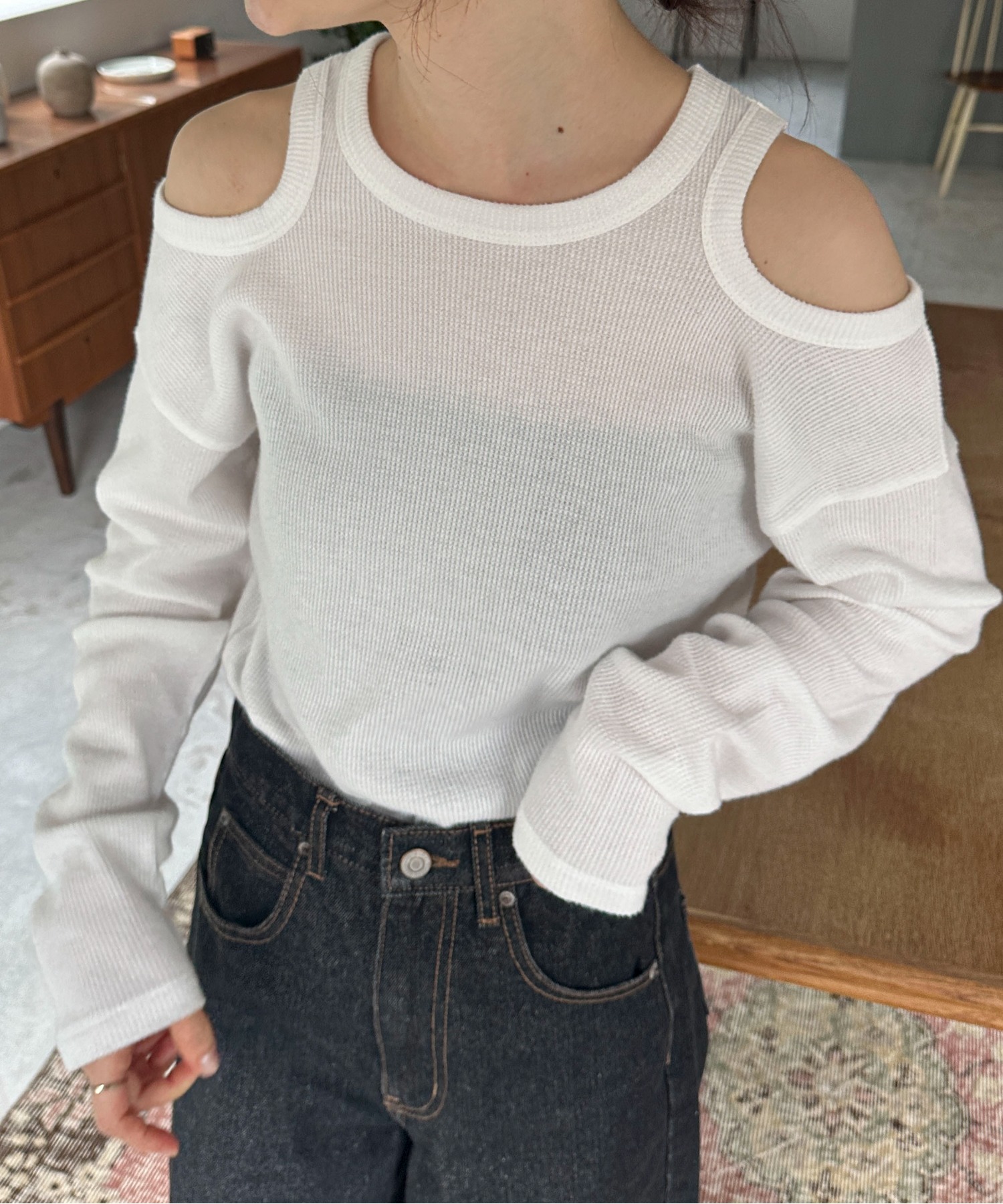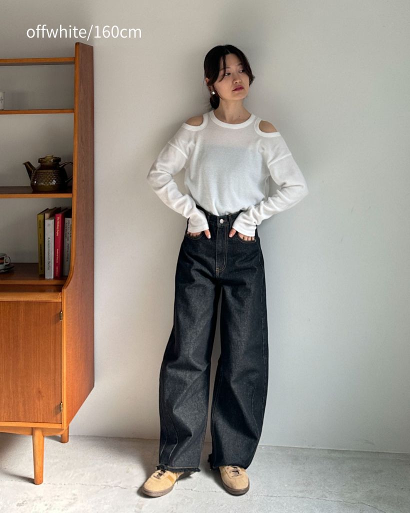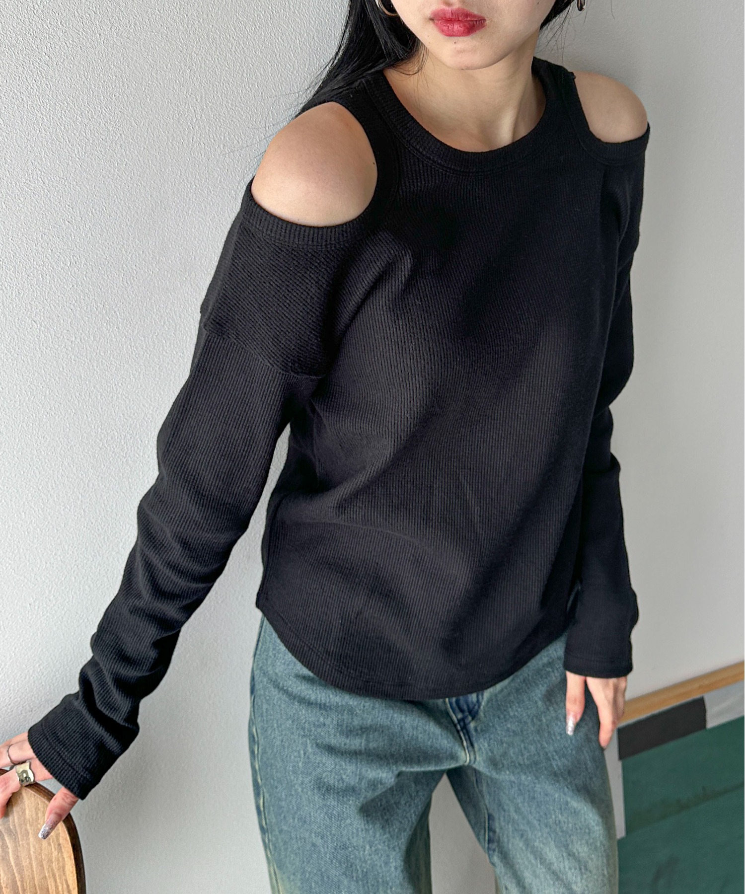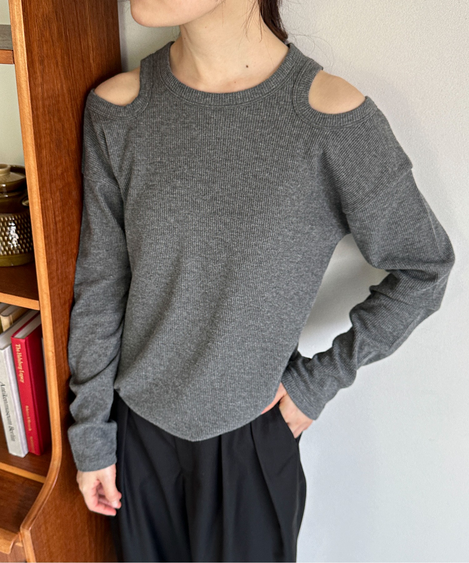 肩の開きがポイントなためベアトップやビスチェとの合わせなどもおすすめです。