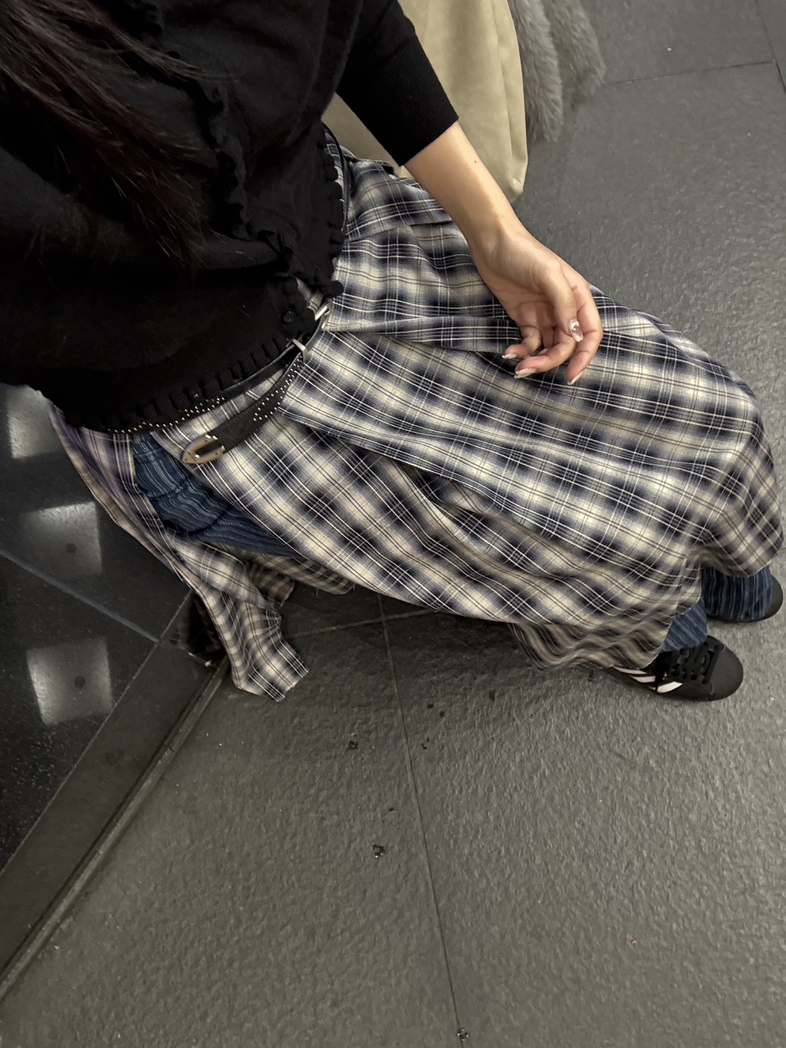 【購入特典】[KEI x overdue flair] CHECK LAYERED WRAP SKIRT_NAVY