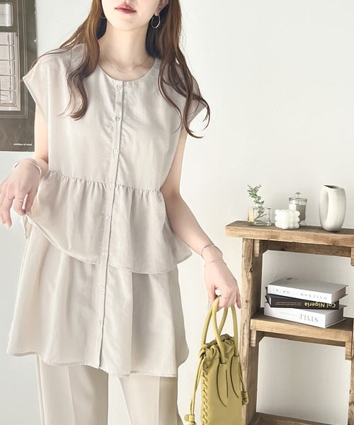 ふんわり3段ティアードのAラインチュニックブラウス。