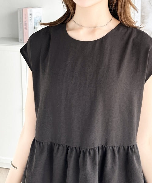 シボのある素材感やフレンチスリーブが抜け感のあるアイテム。