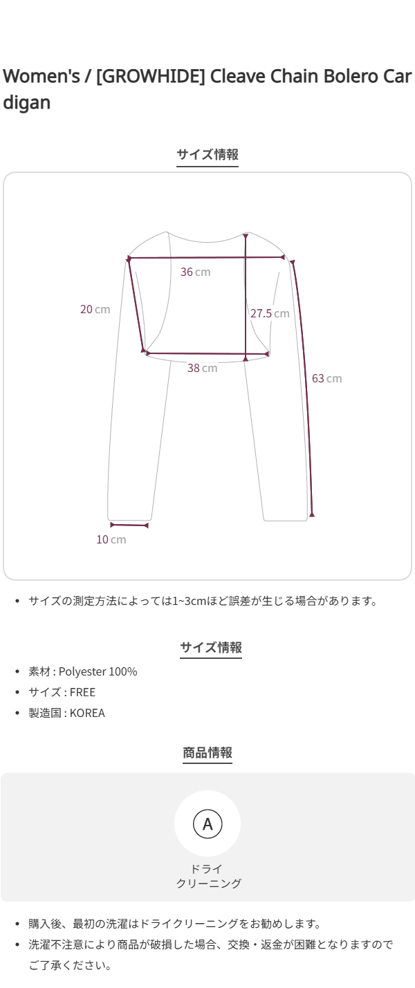 [GROWHIDE] Cleave Chain Bolero Cardigan
