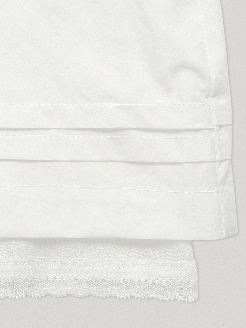 裾のさりげないレース先端はエレガントで贅沢です。リセットスカートは純粋な100%コットン製のミディスカートです。裾とレースのピンタックのディテールはさりげなく重ねられており、控えめなロマンスと贅沢を演出しています。しわのある裏地は着心地よく涼しく感じられます。全体的にシンプルなシルエットはきちんとした印象を与え、きちんとした素敵なムードを同時に表現しています。ブラウスやカジュアルなTシャツ、ノースリーブなどと女性らしいマッチです。リゼットスカートでエレガントな季節感をお楽しみください。リゼットスカートでエレガントな季節感をお楽しみください。柔らかく清潔なアイボリー色、コットン100%(裏地 - ナイロン100%) ミディロンヘムピンタック ディテールレースの重ね合わせ