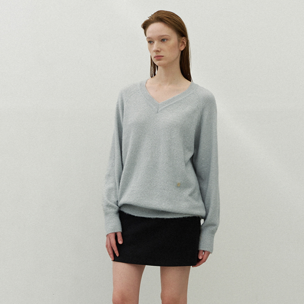 부드럽고 헤어리한 원사의 브이넥 오버핏 니트 탑입니다.
