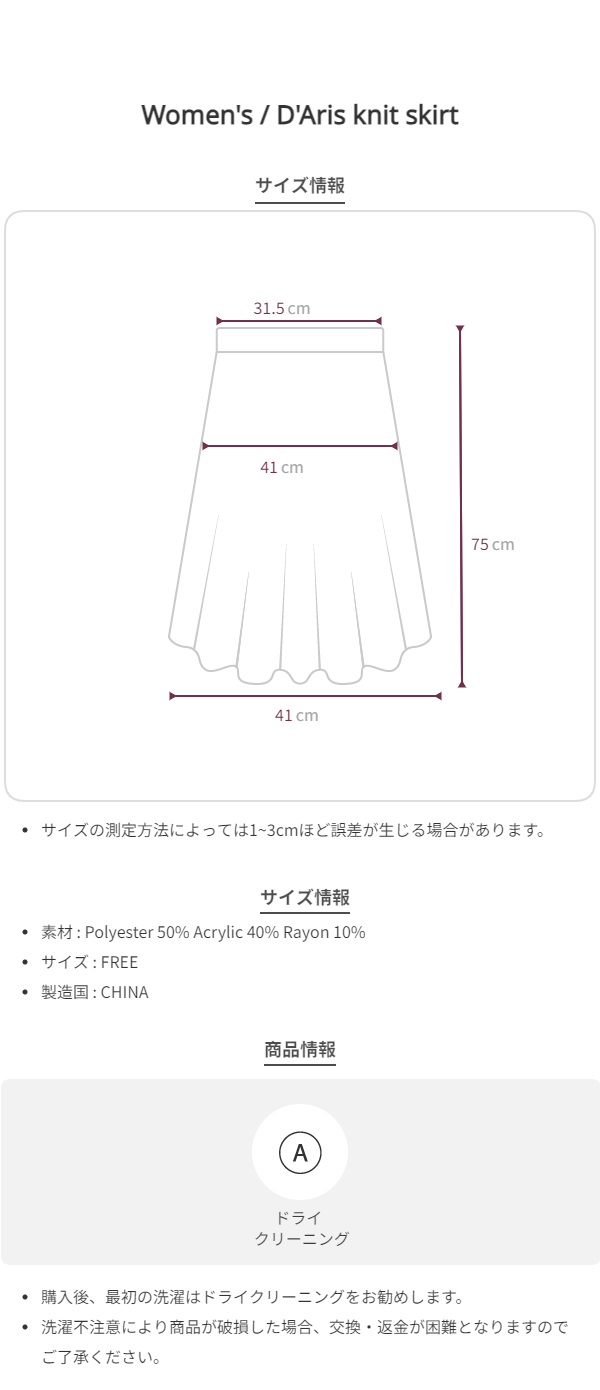 *ニットの編み立て特性上、商品ごとにサイズに多少の個体差が生じる場合があります。