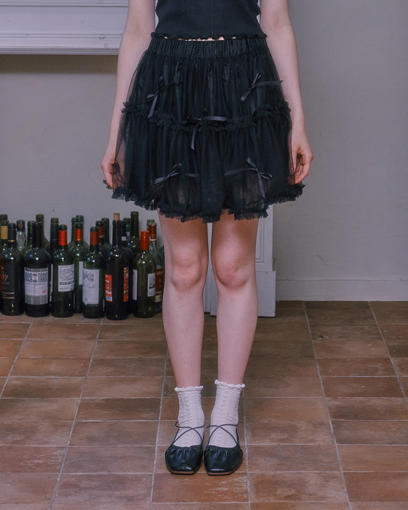 Ribbon cancan lace skirt - BLACK